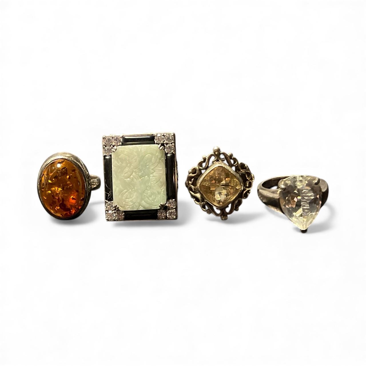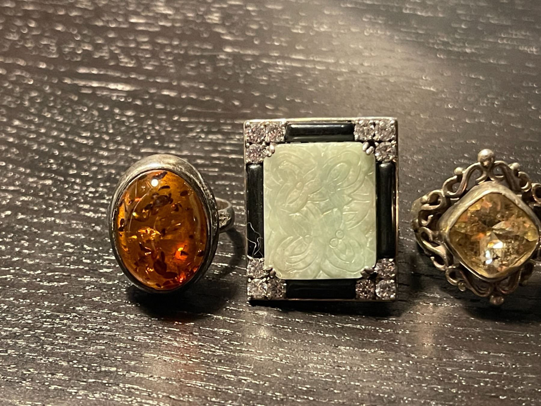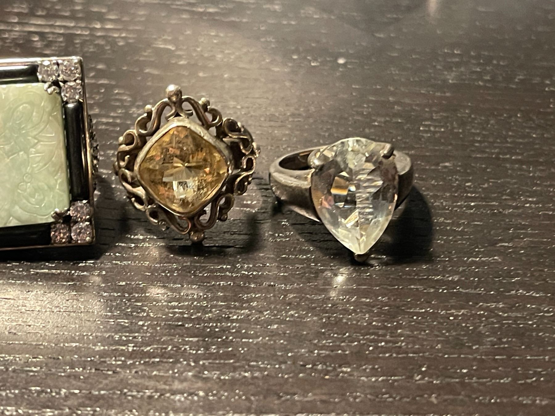 4 Sterling Silver with Large Gems - Variety of designs & Sizes - Largest ring face is 23mm x 28mm - Total weight including gems: 38 grams
