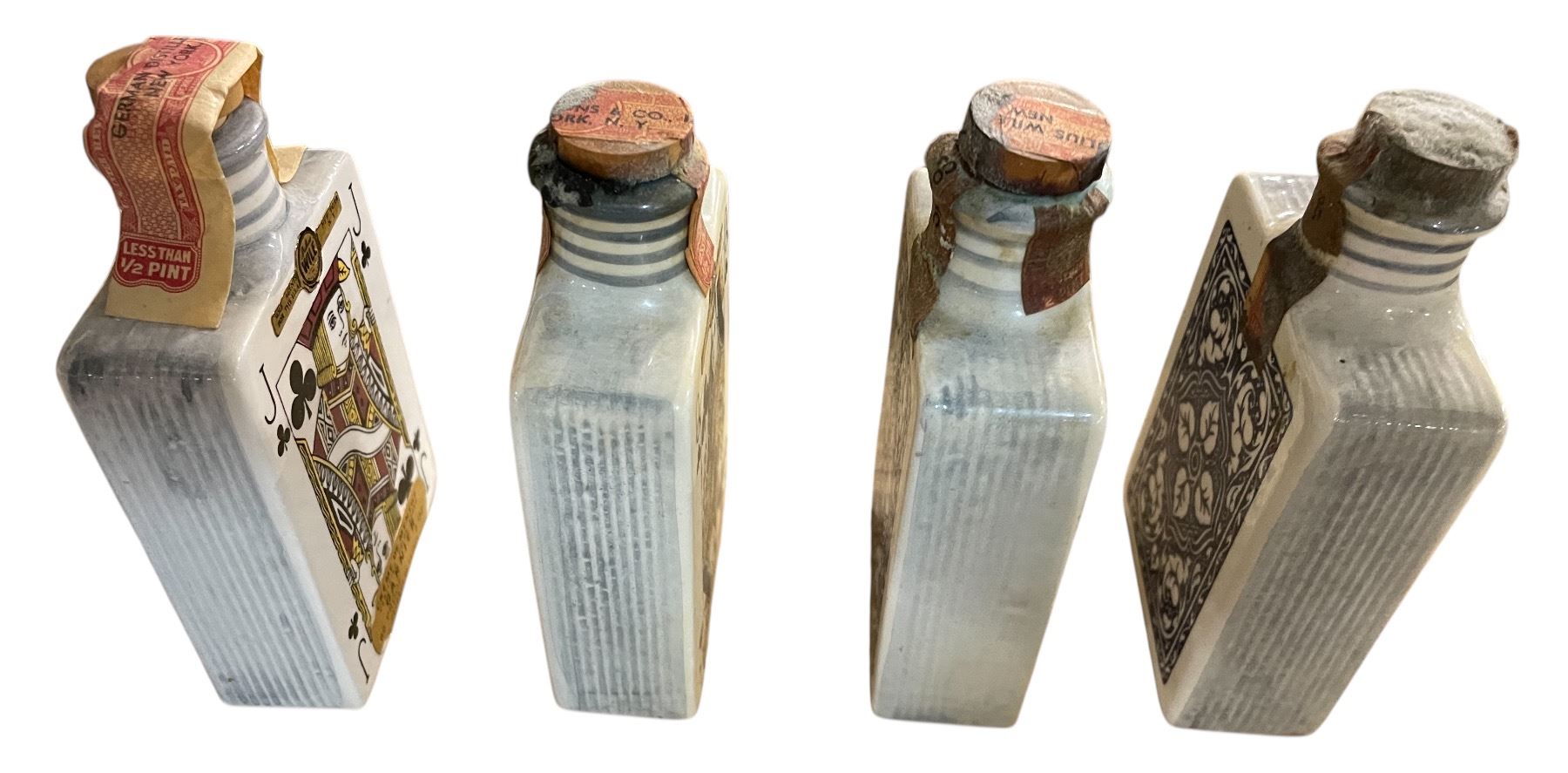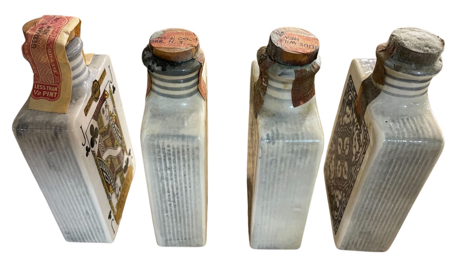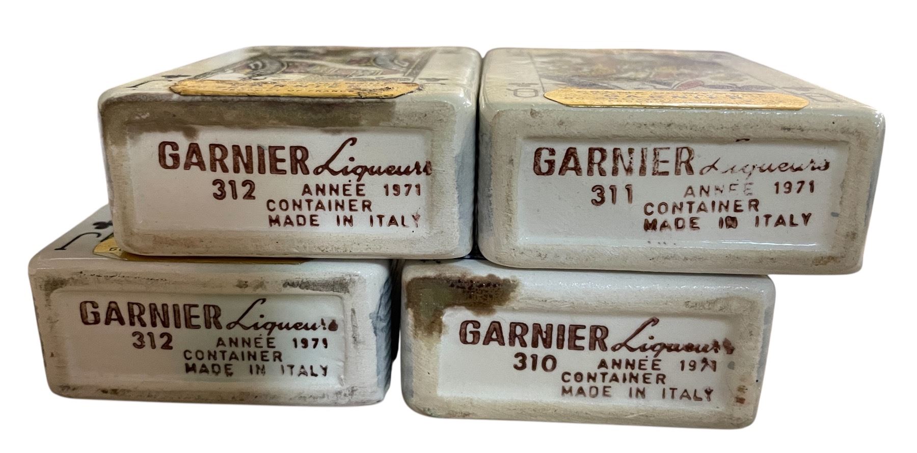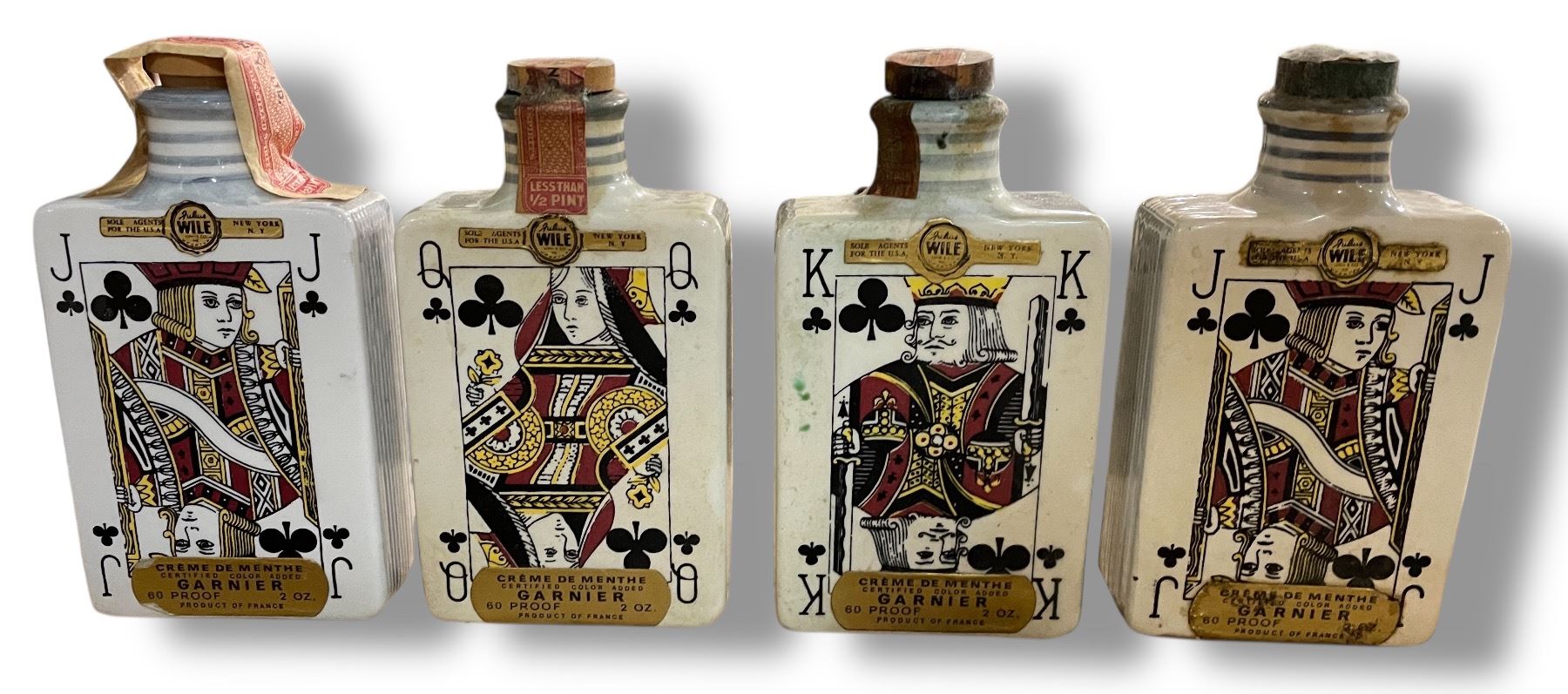 4 Vintage 1971 Garnier Playing Card Empty Mini Decanters, Includes 2 Jacks, Queen, and King of Clubs, Made in Italy