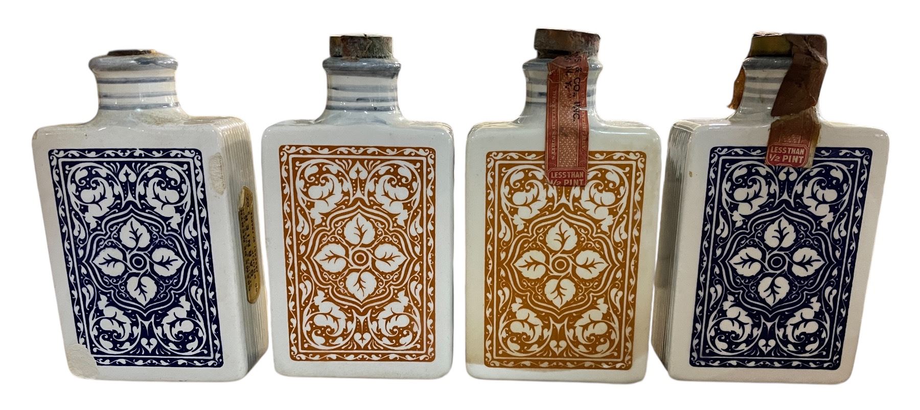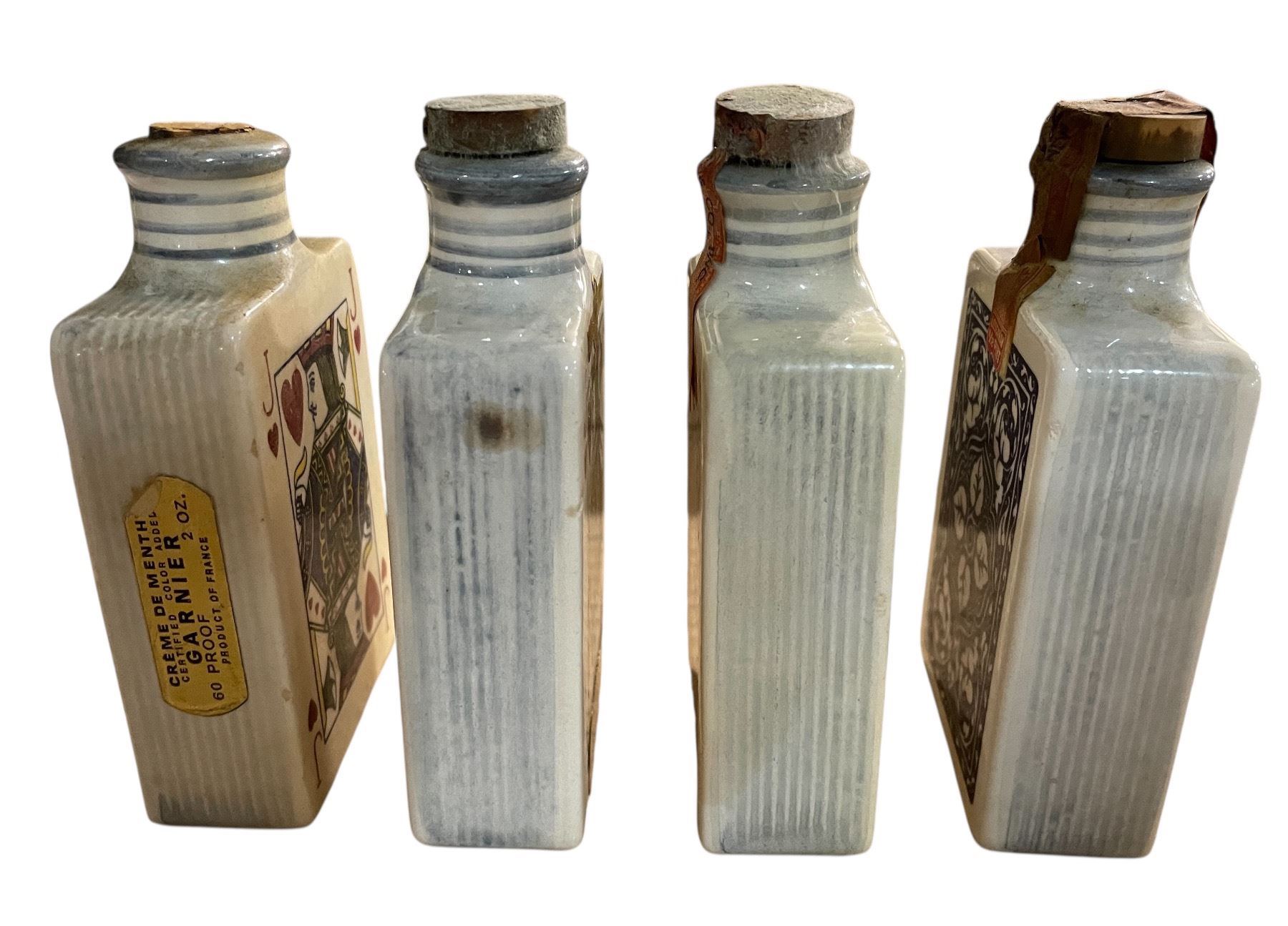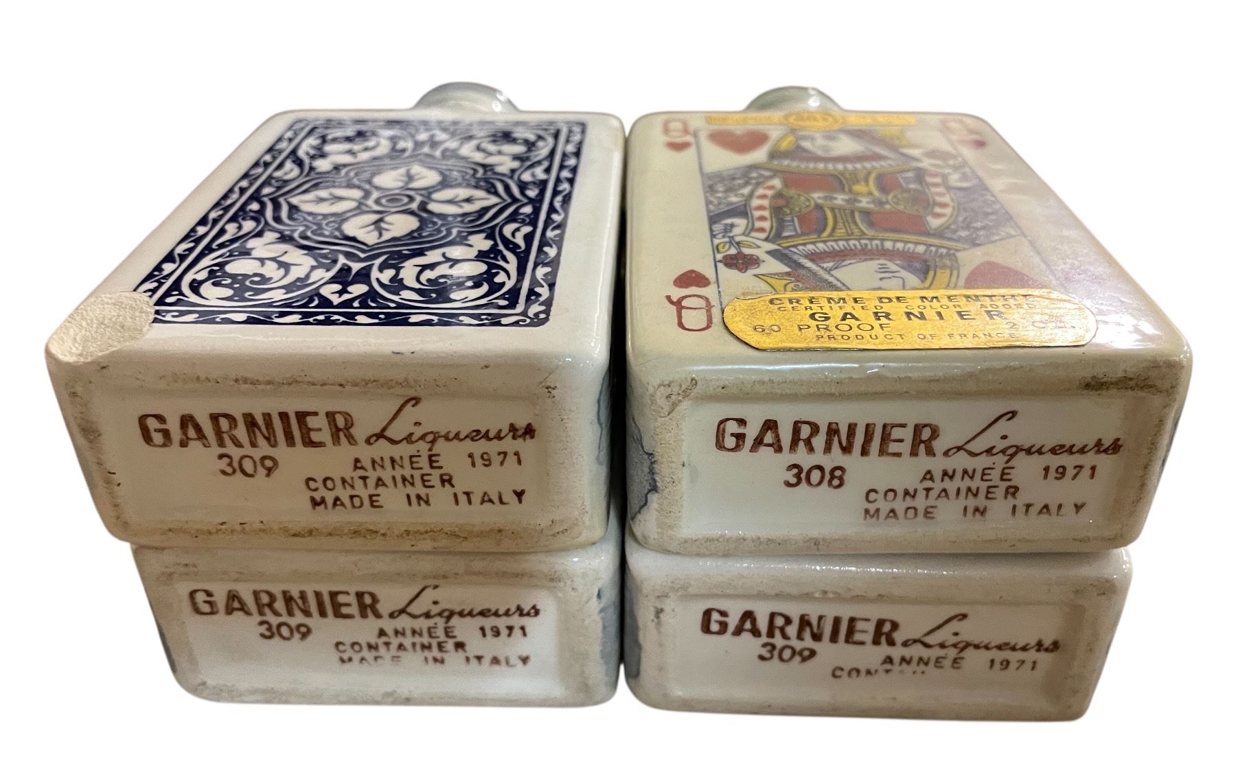 4 Vintage 1971 Garnier Playing Card Empty Mini Decanters, Includes 3 Jacks and Queen of Hearts, Made in Italy