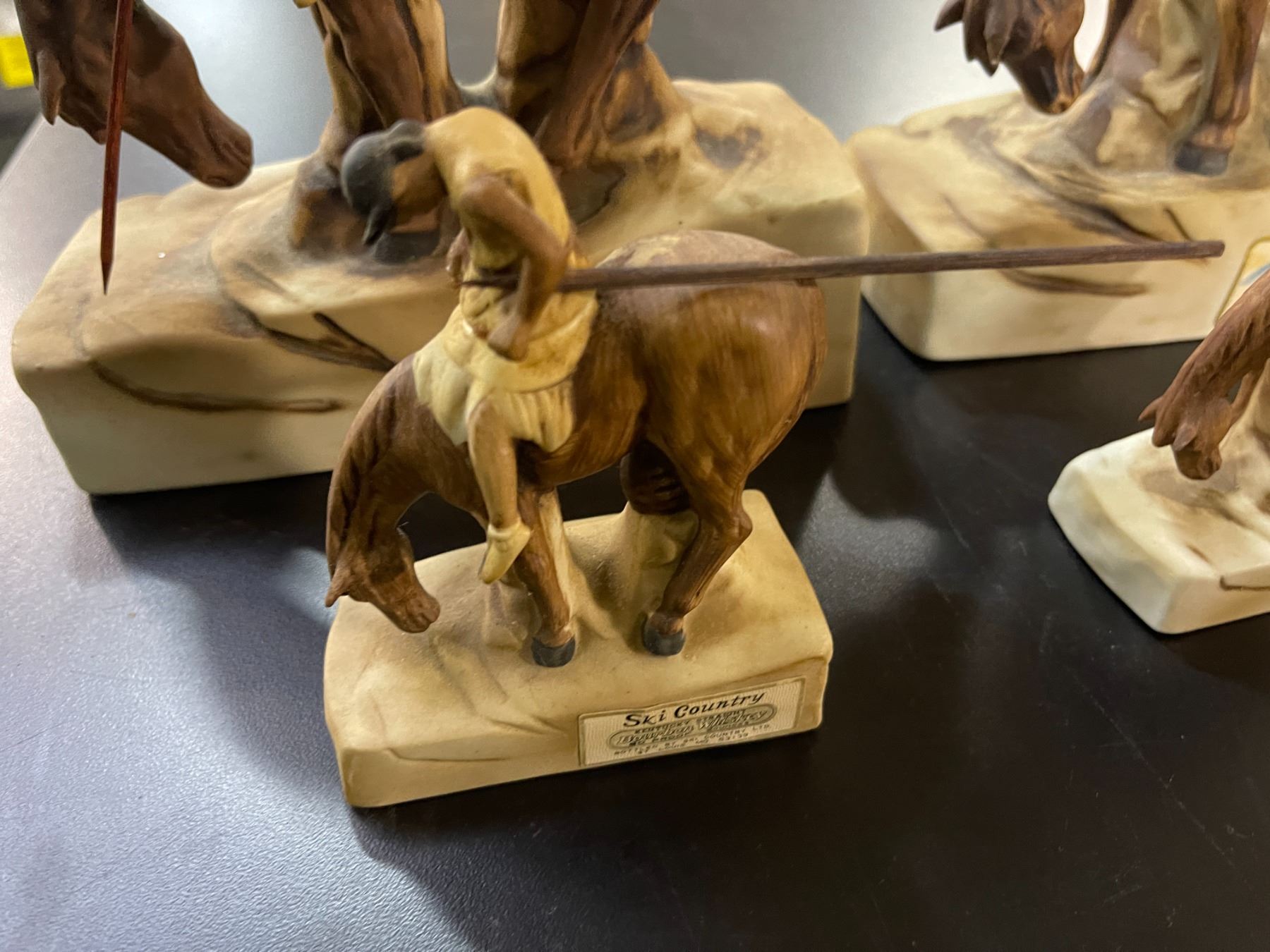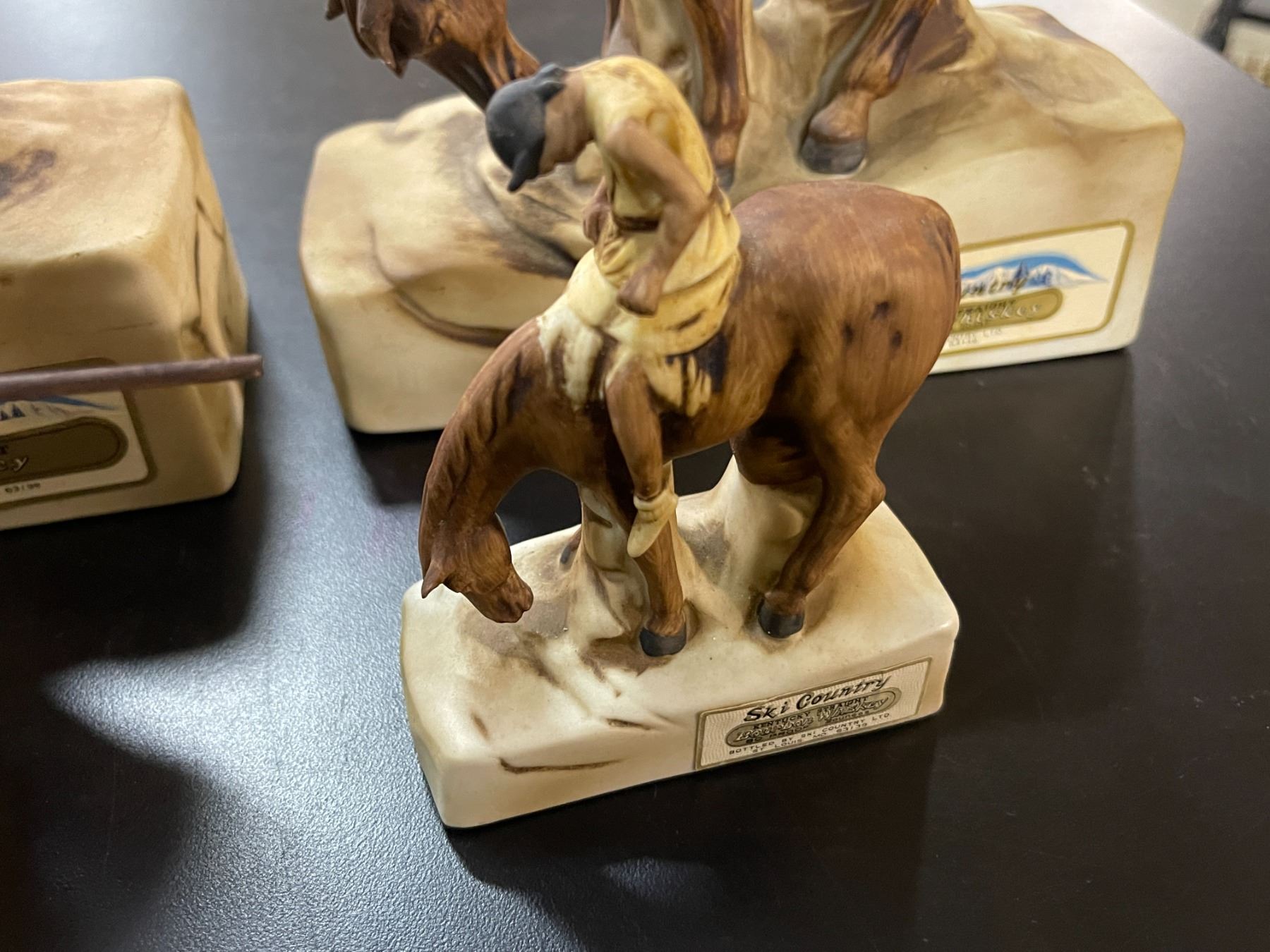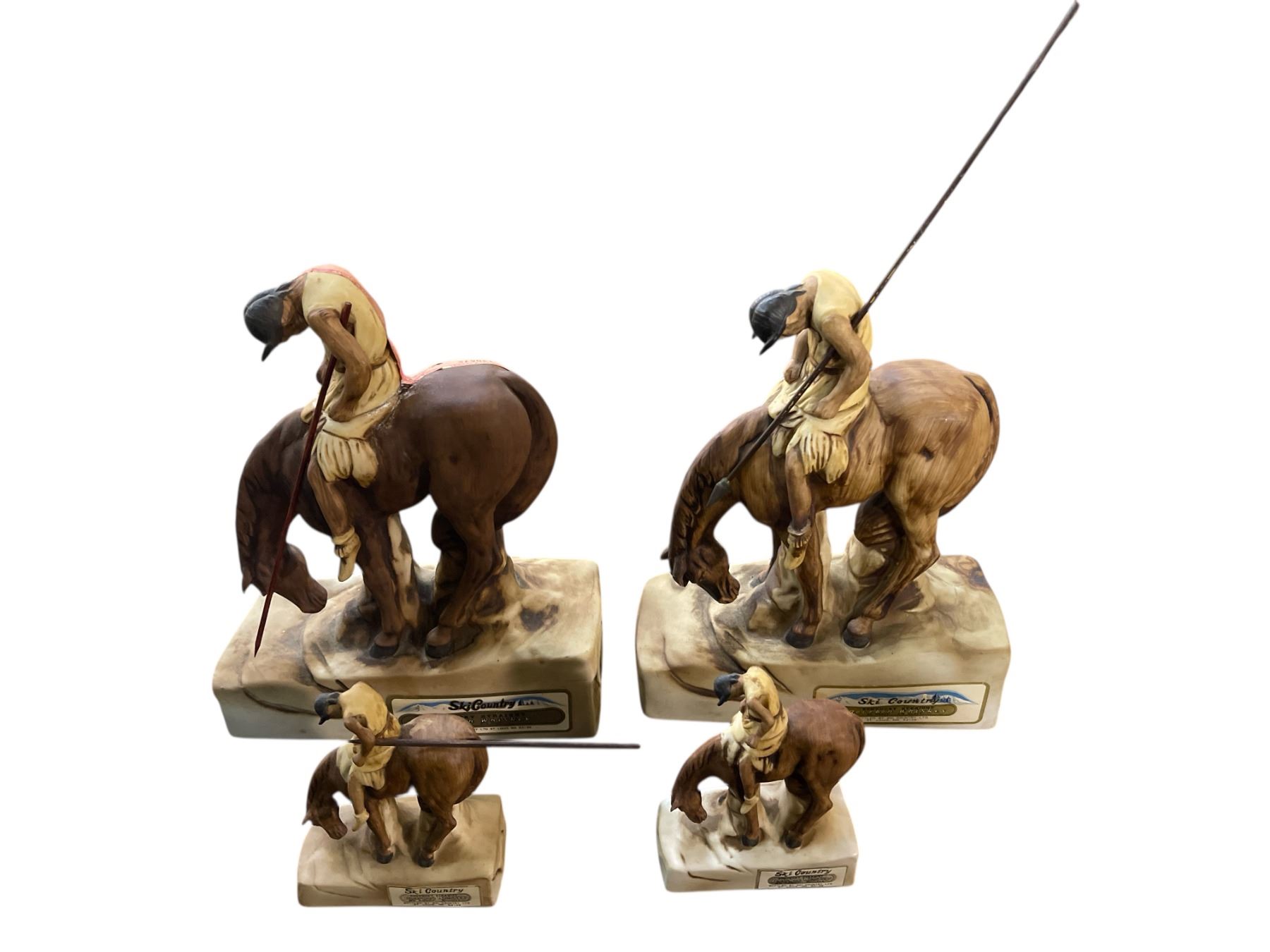 4 Vintage 1976 Ski Country "The End of Trail" Empty Ceramic Bourbon Whiskey Decanters - Includes 2 Full-Size and 2 Mini