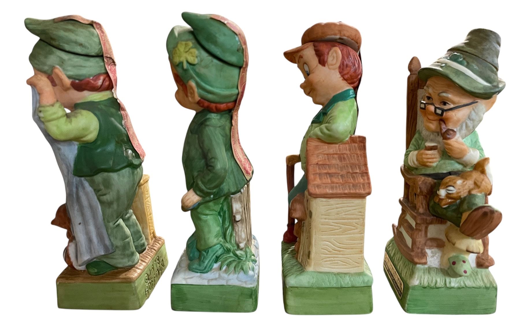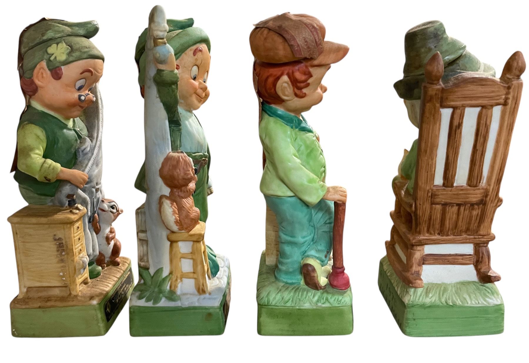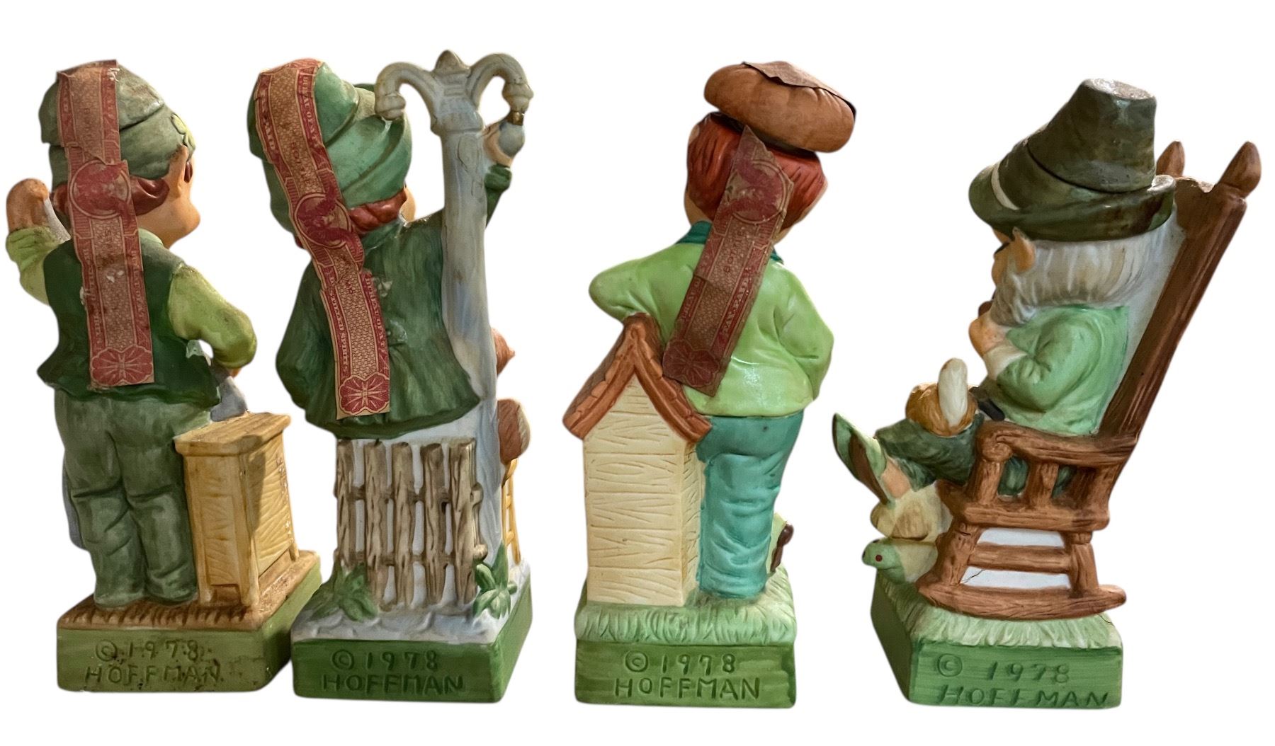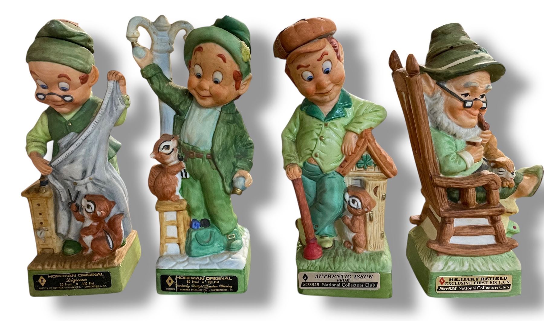4 Vintage 1978 Hoffman Ceramic Whiskey Decanters Empty, Includes "Mr. Tailor", "Mr. Electrician", "Mr. Plumber", and "Mr. Lucky Retired"