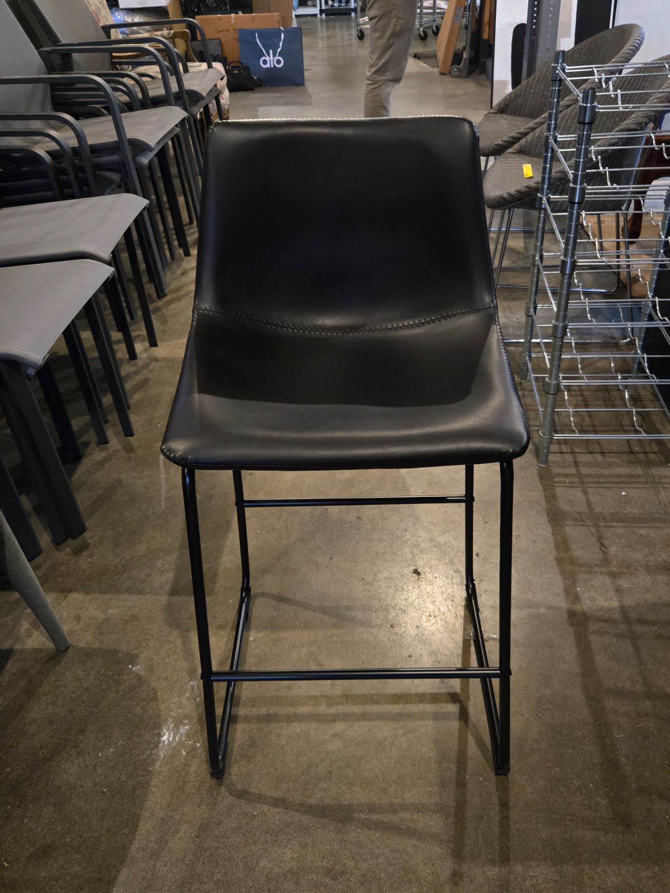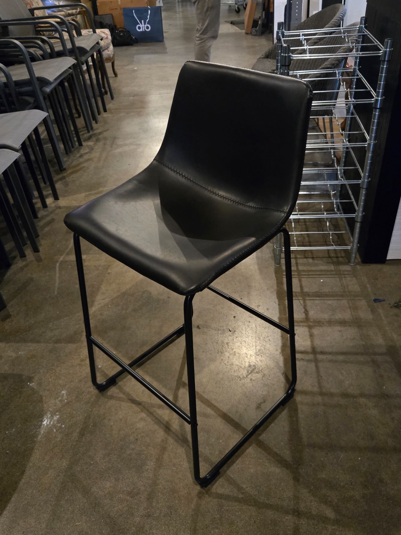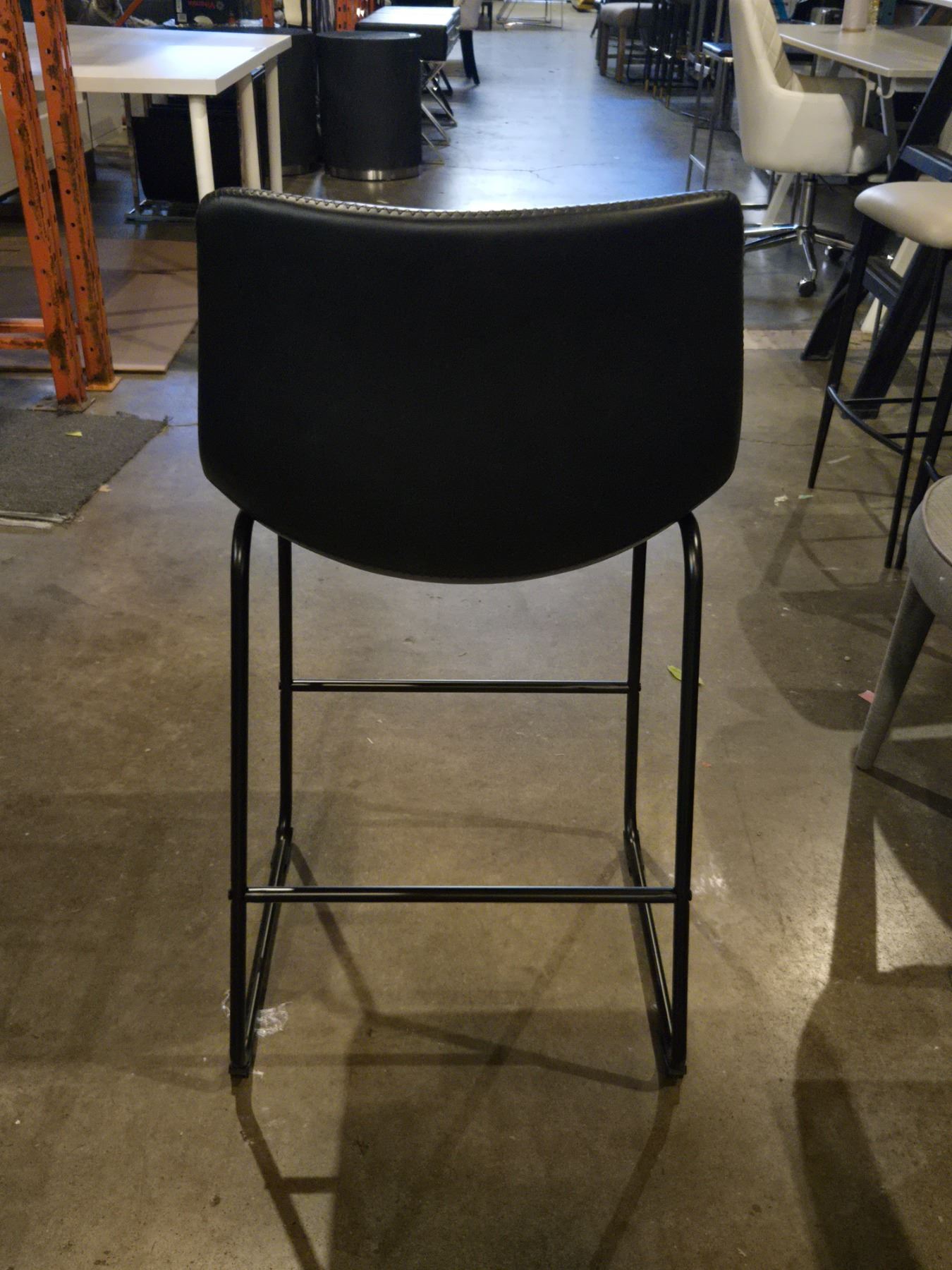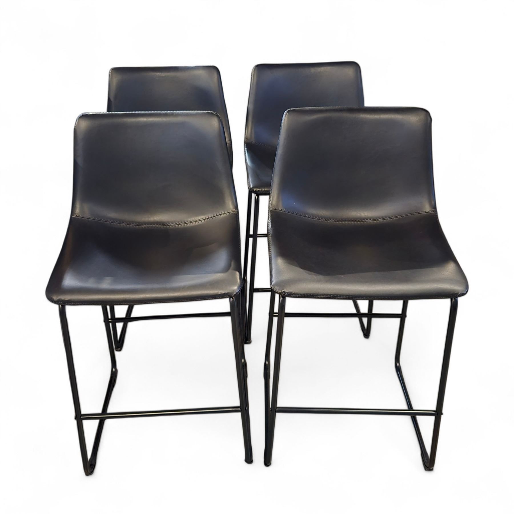 4 pc - Black Leather Counter Height Bar Stools w/ Black Metal Frames / Legs