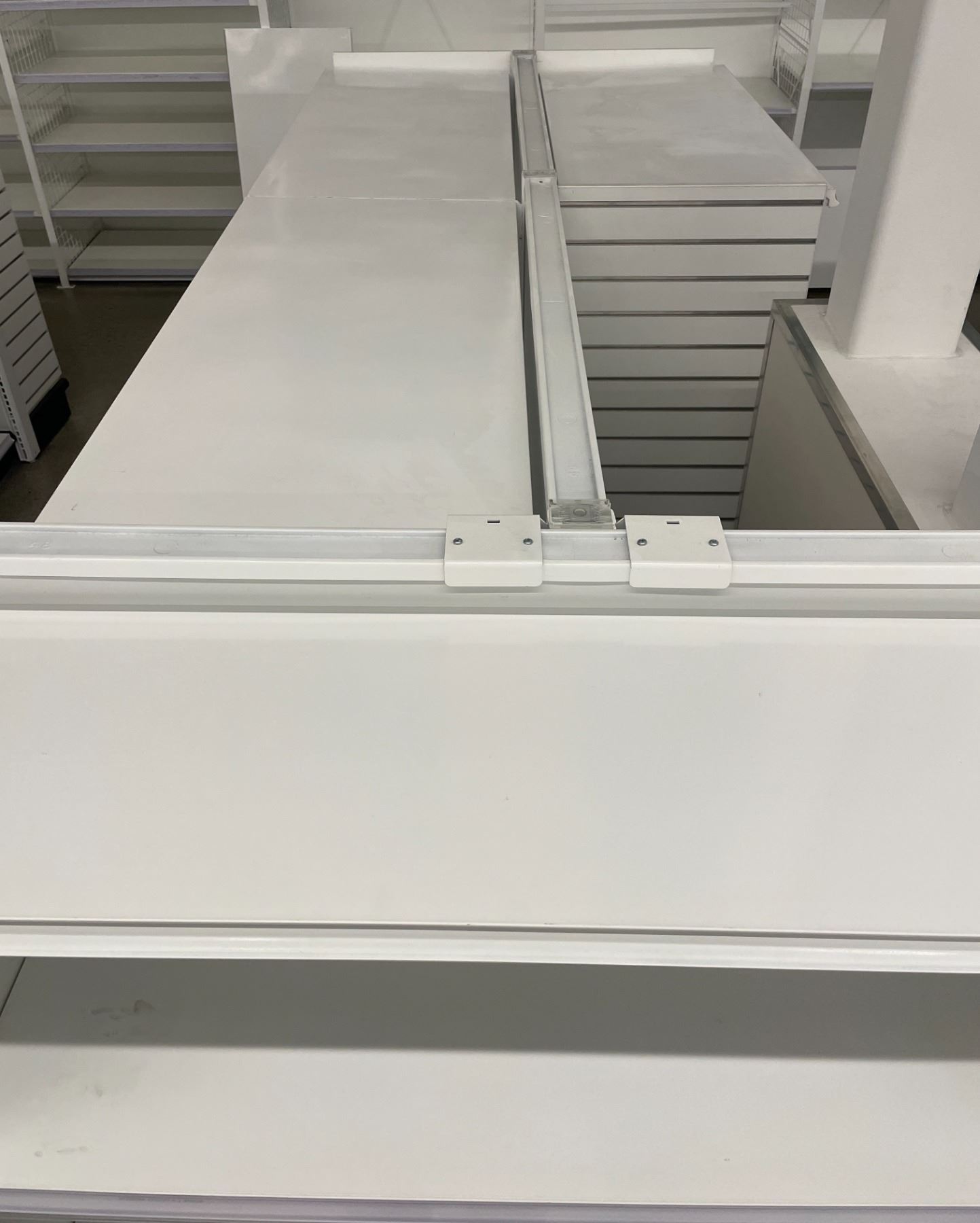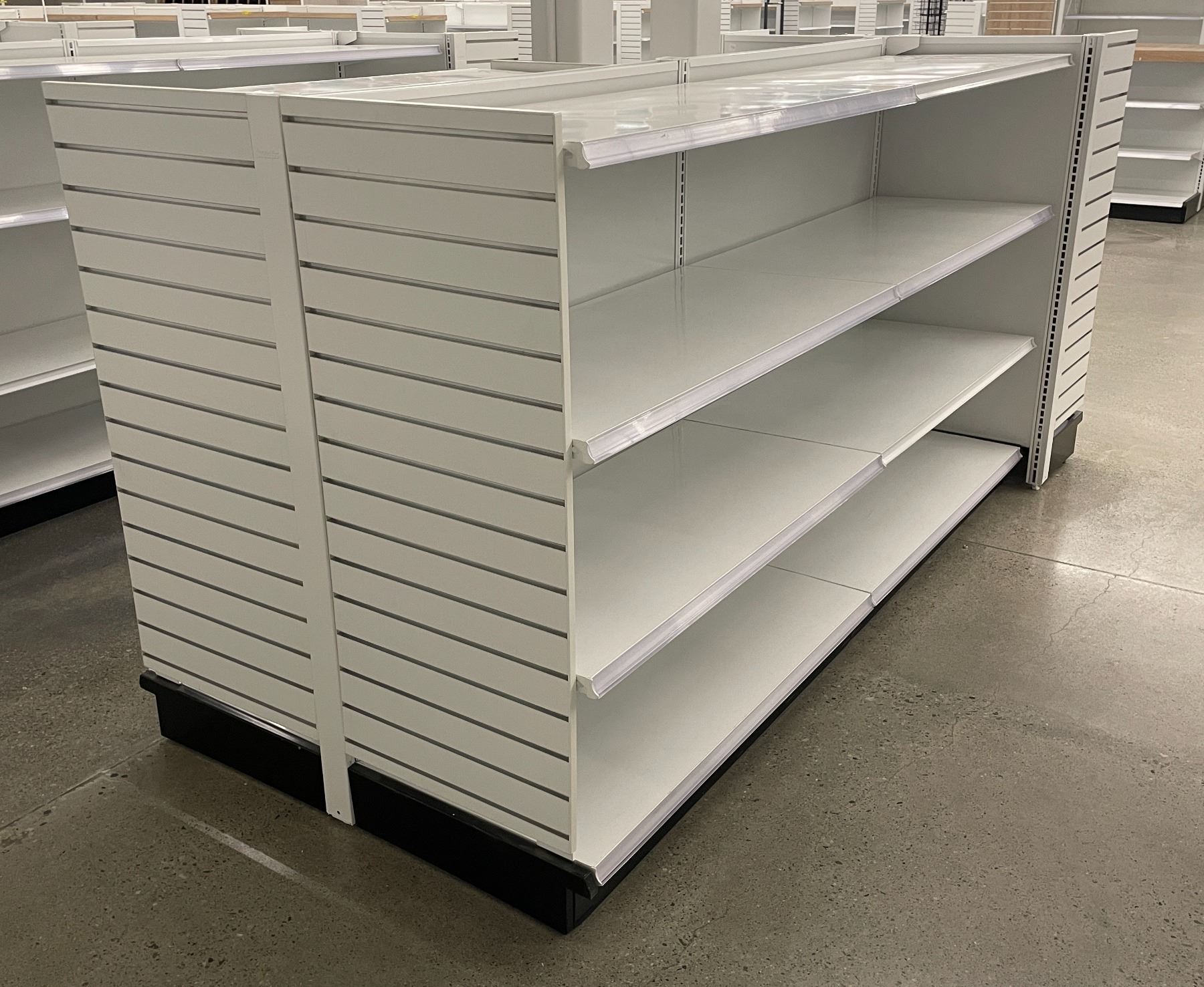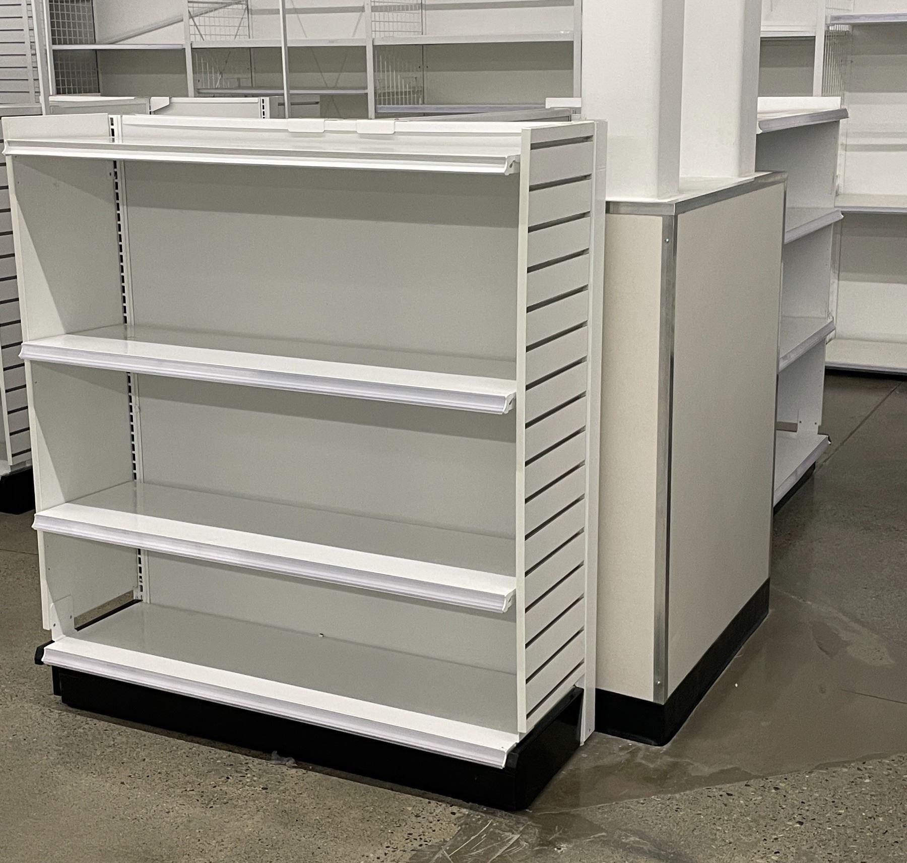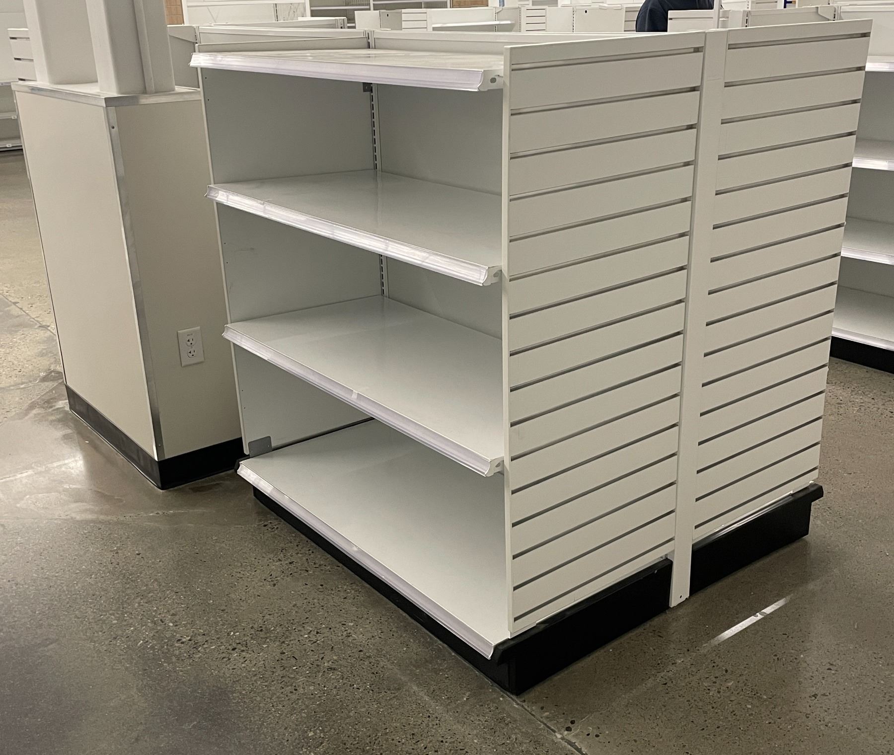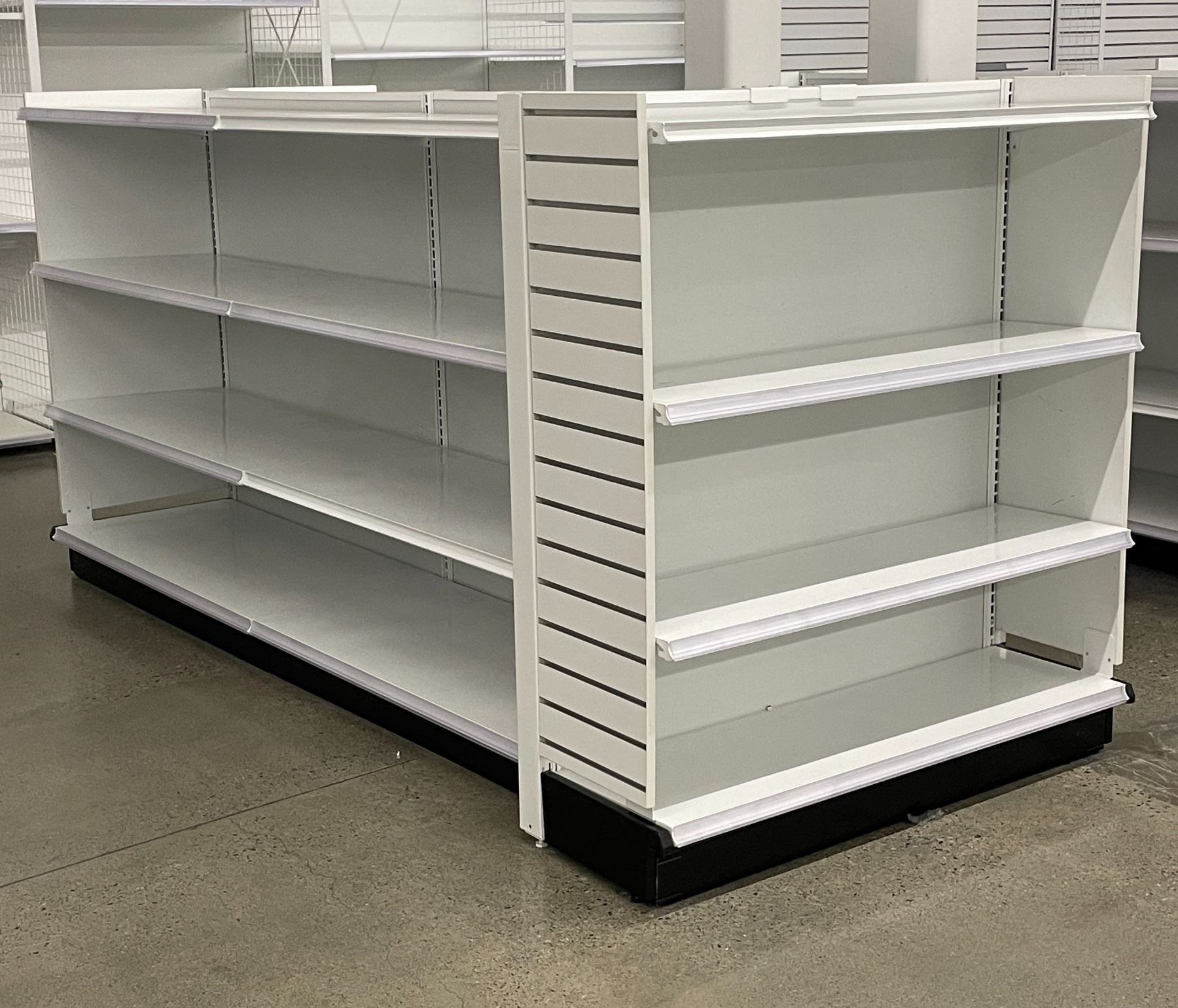 4 tier retail shelving double-sided gondola with single end cap - missing one unit of shelving due t