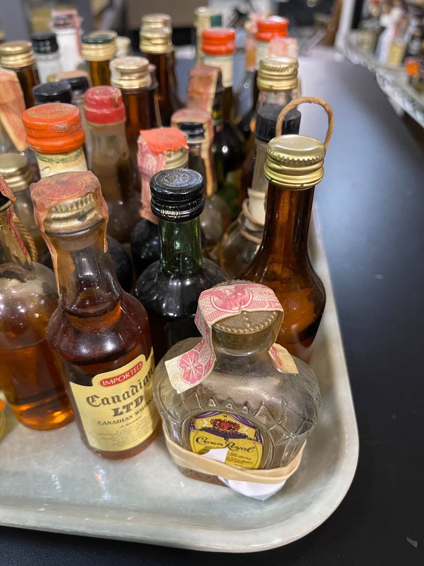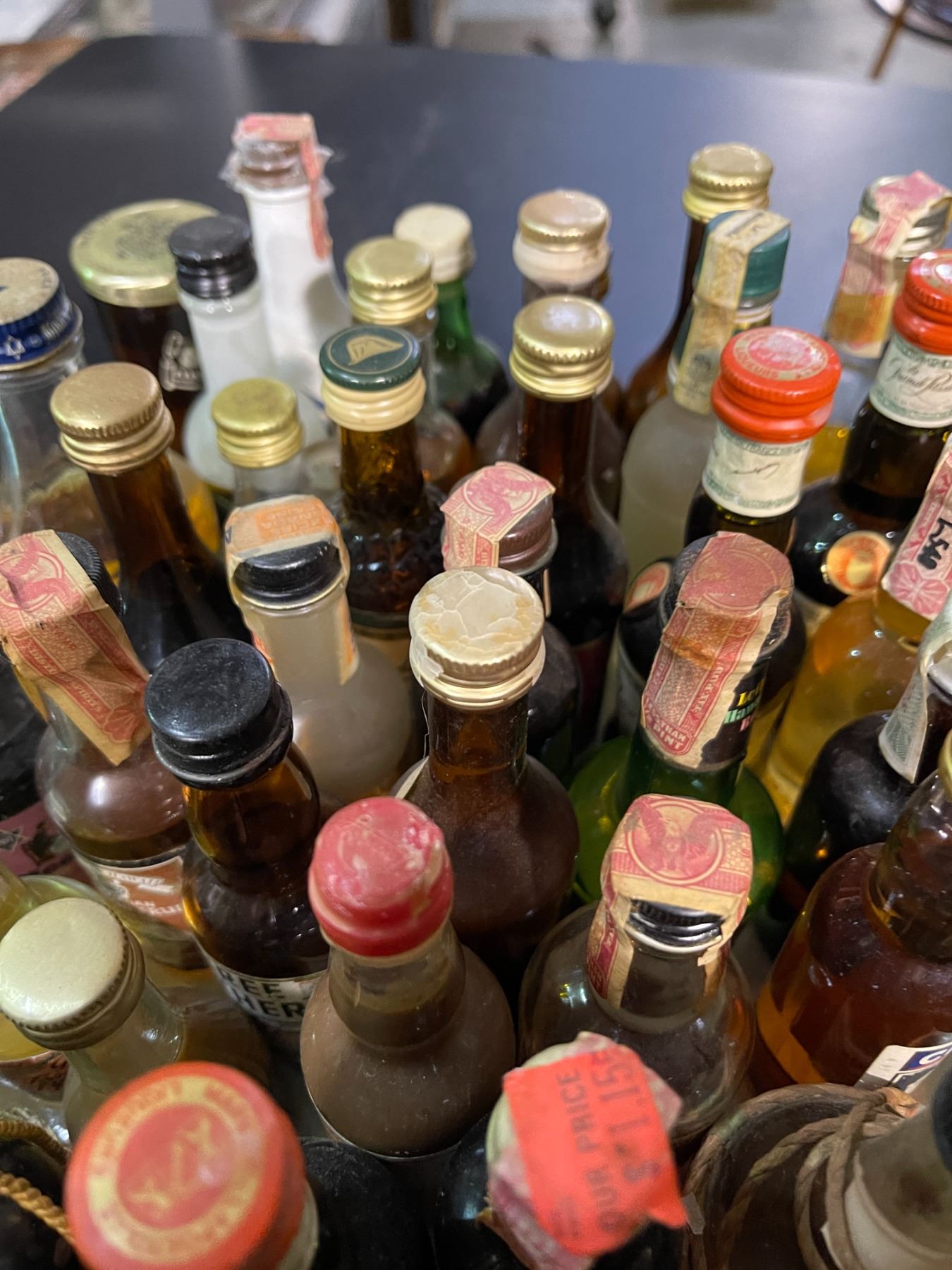 40 Vintage Glass Mini Liquor Bottles - Approx. 70% Retain Partial Contents
