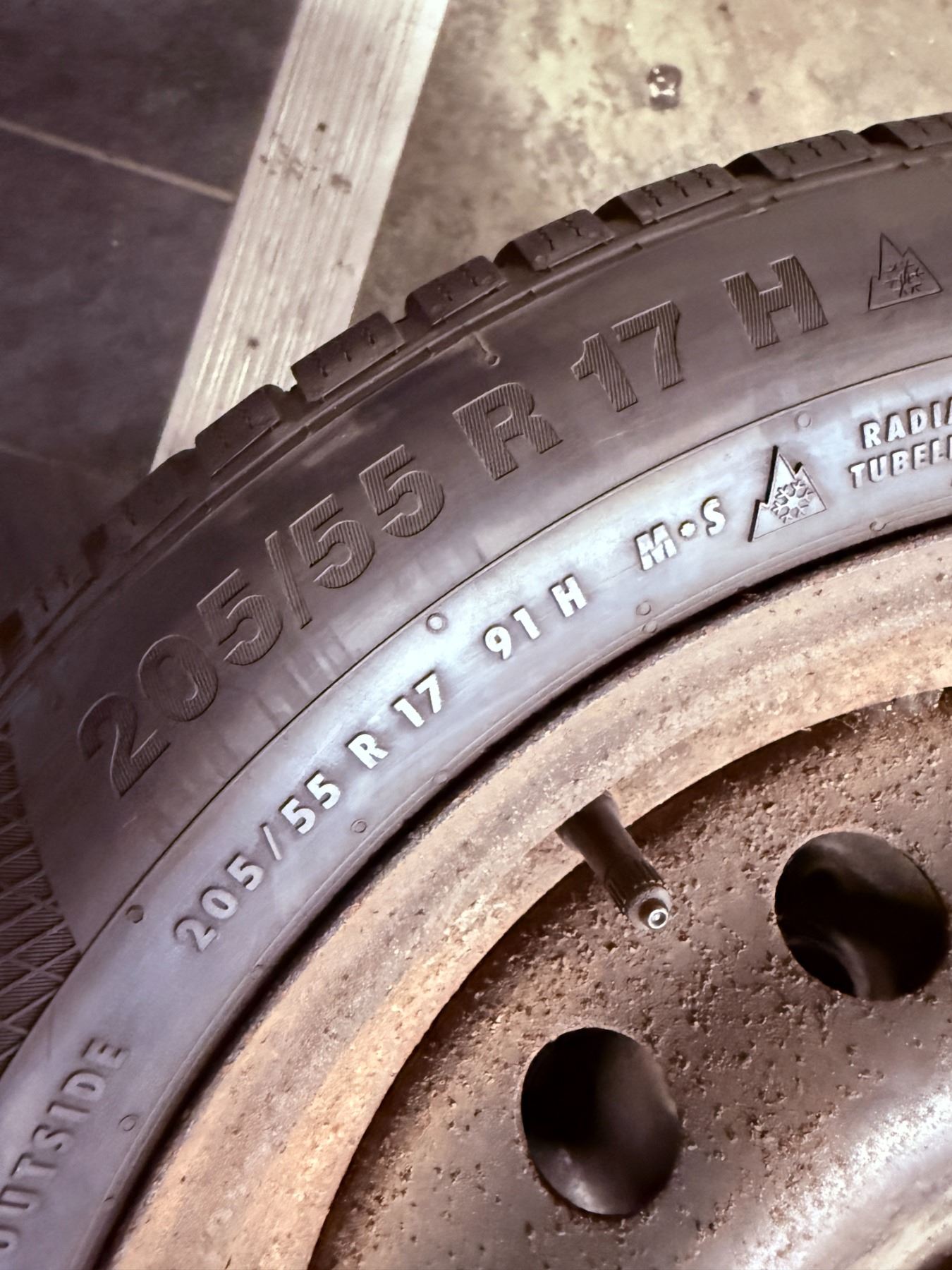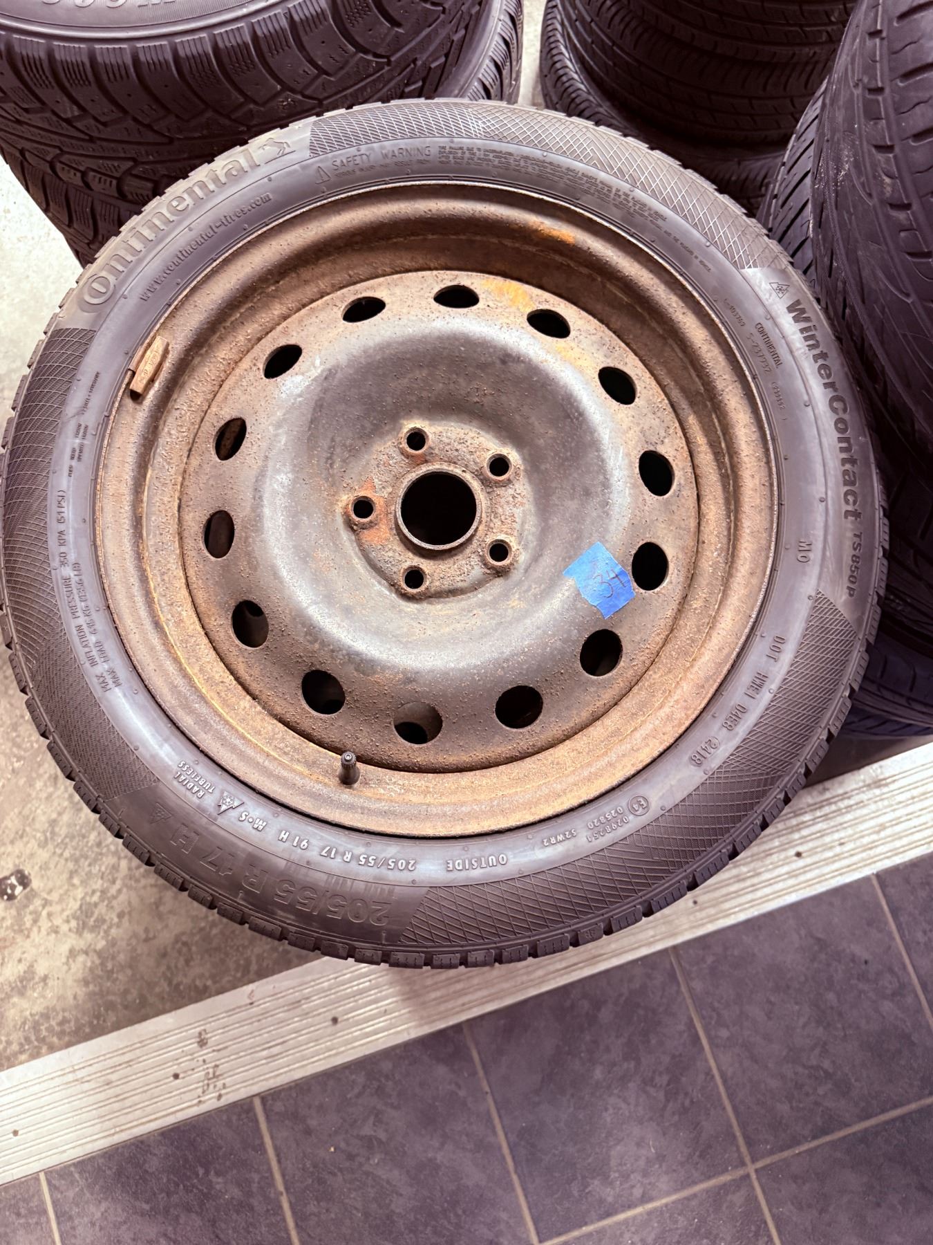 4X CONTINENTAL WINTER CONTACT 205/55R17 ON STEEL RIMS