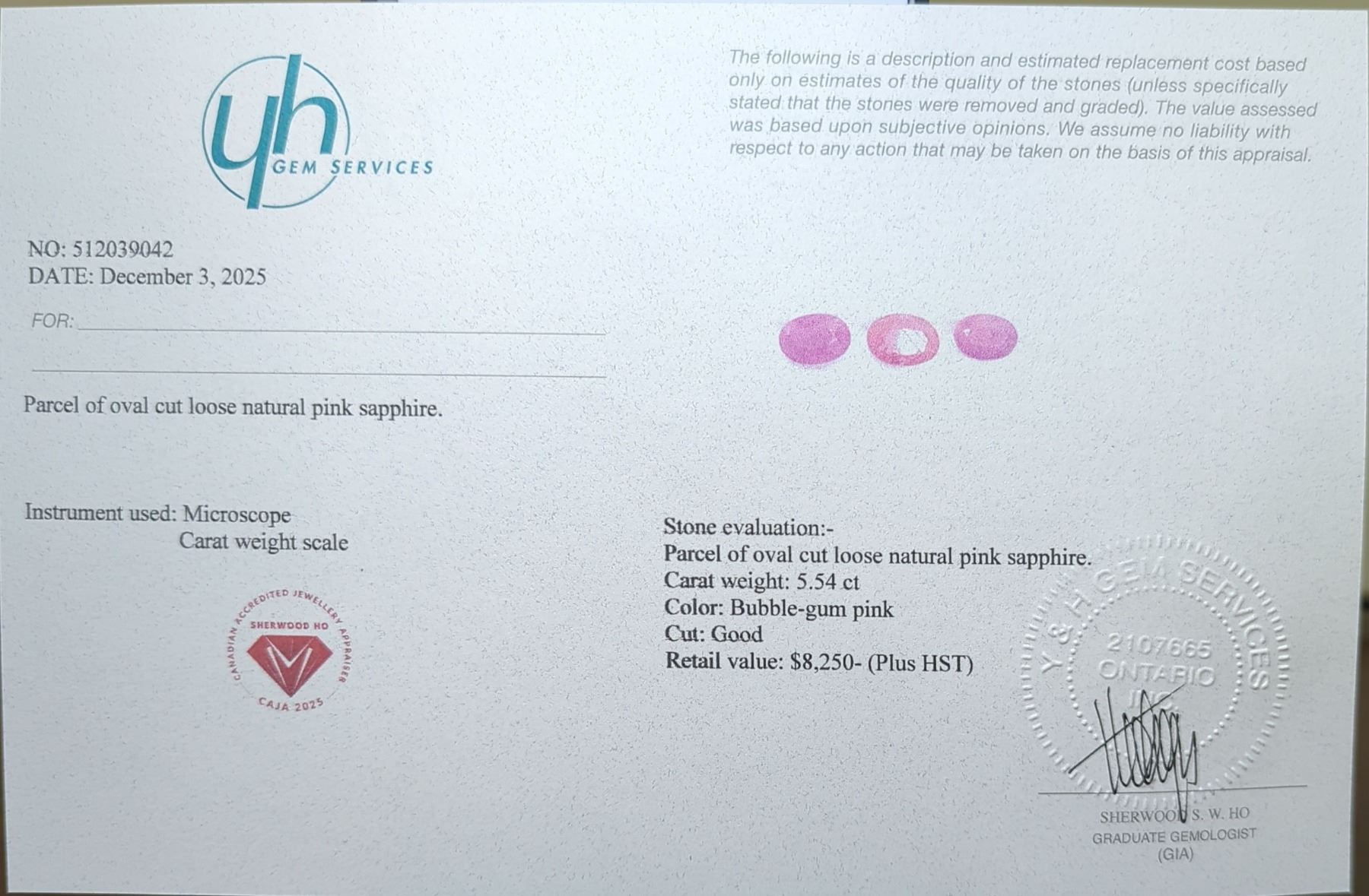 5.54 ct Certified Pink Sapphire gemstone Parcel ($8,250 Appraisal)