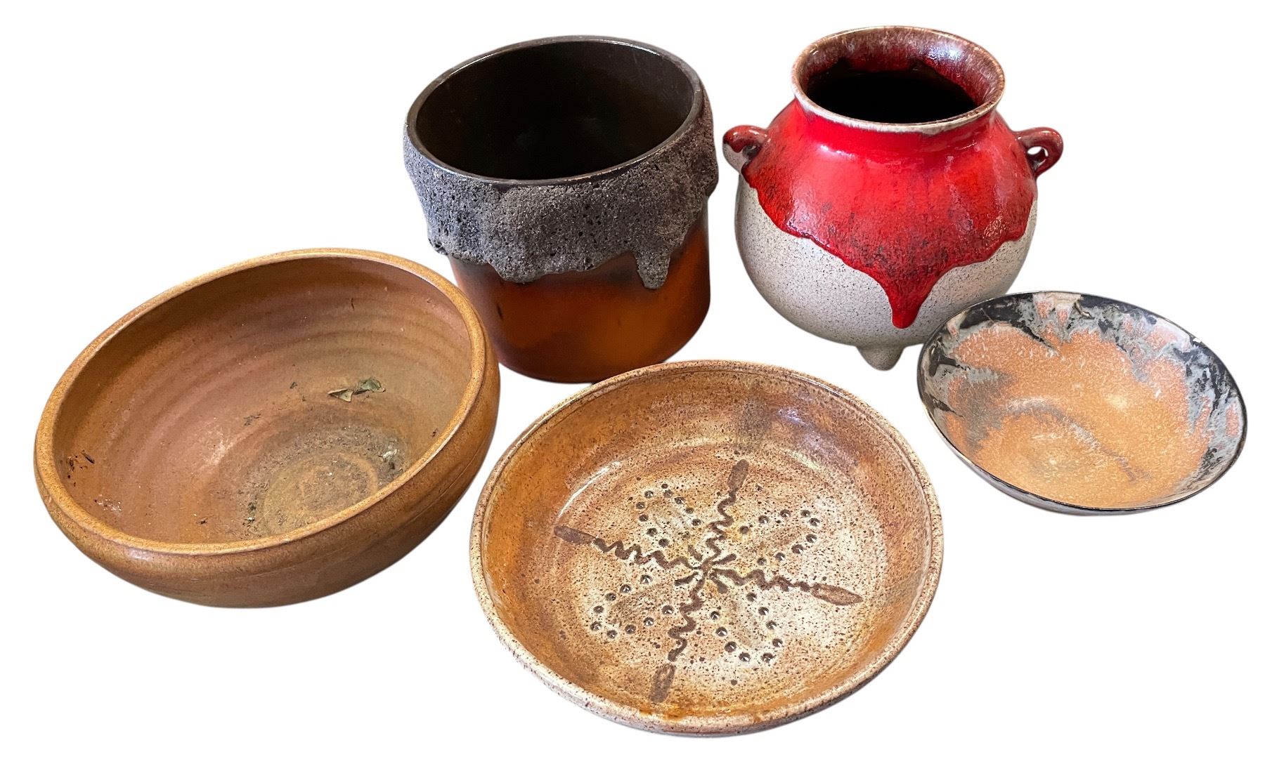5 Assorted Handmade Pottery Bowls & Glazed Vessels