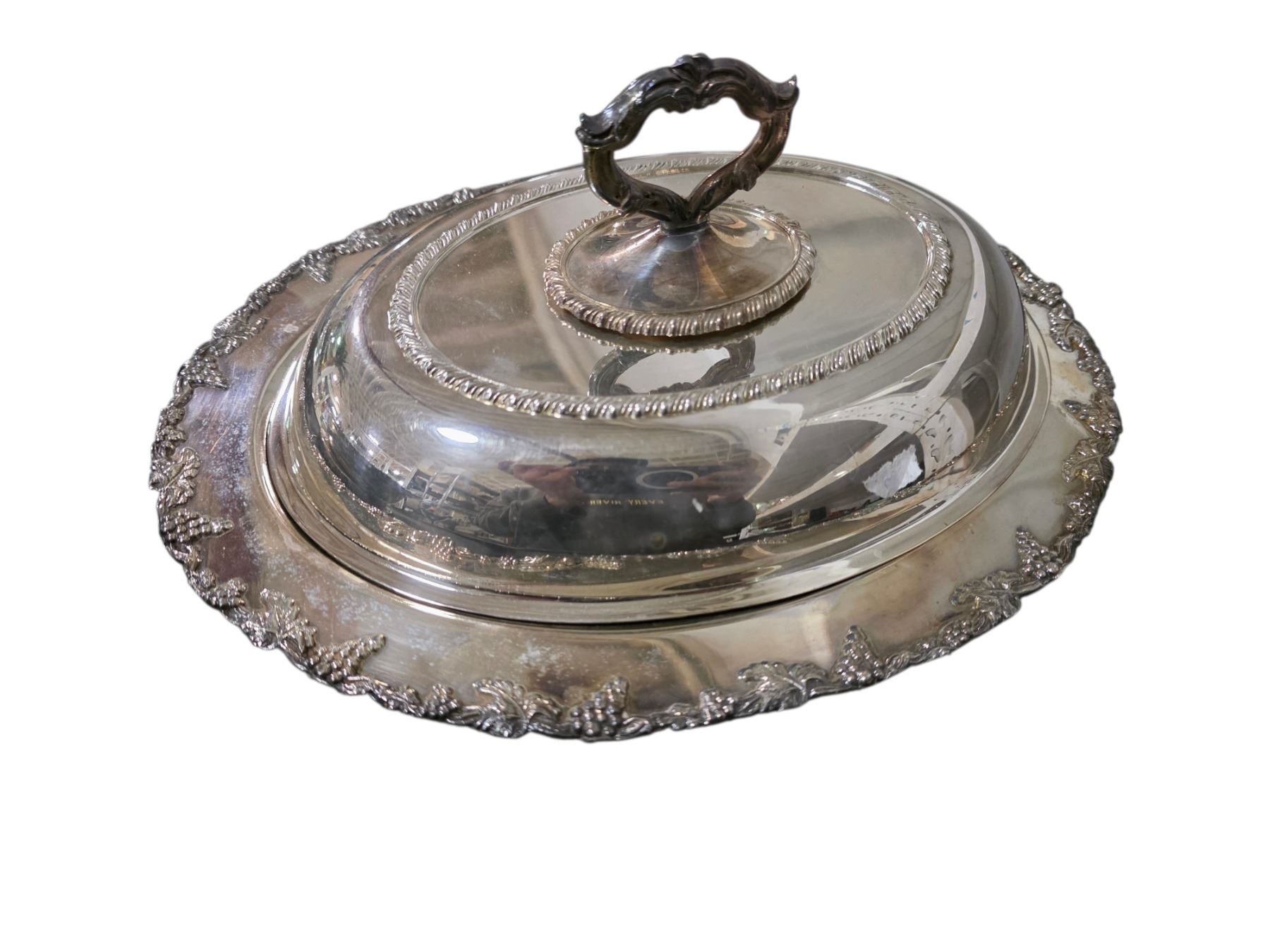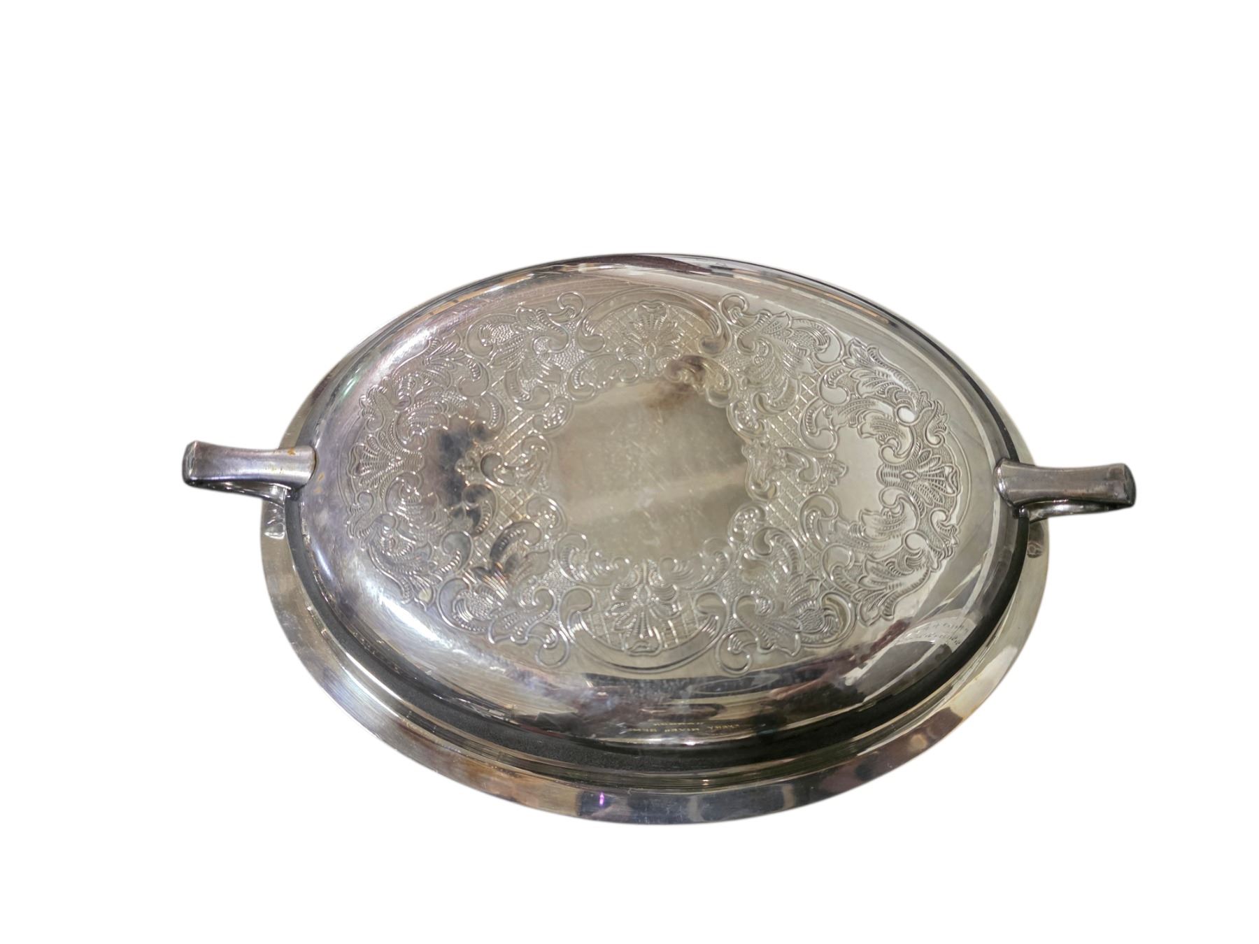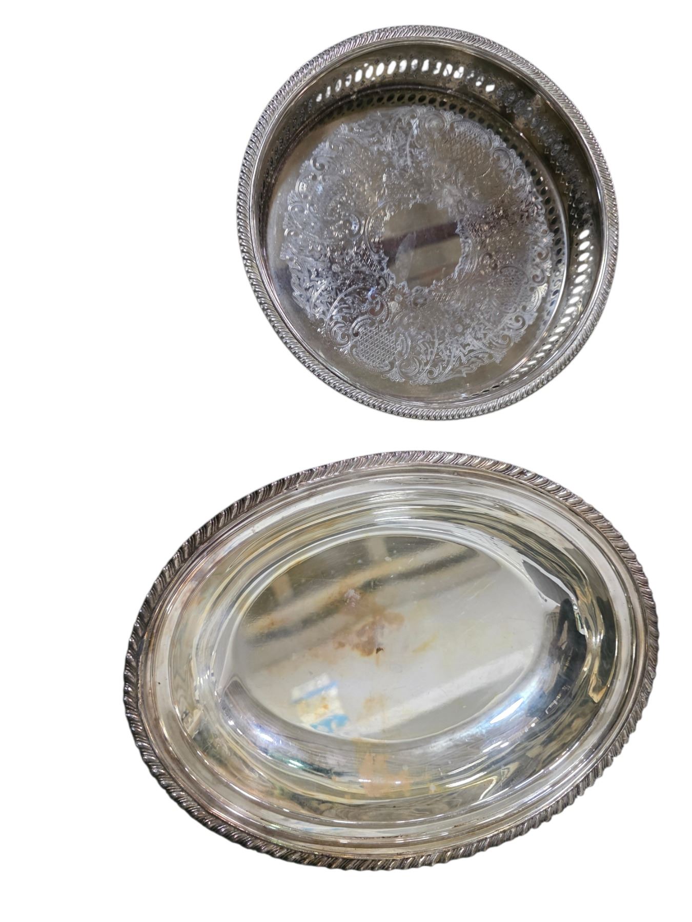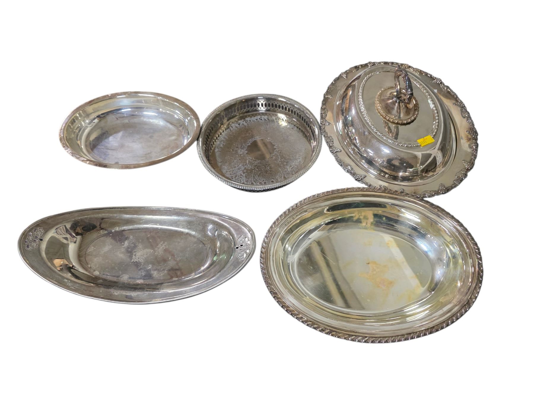 5 Assorted Silverplate Serving Pieces - Trays, Covered Dish & Pierced Bowl