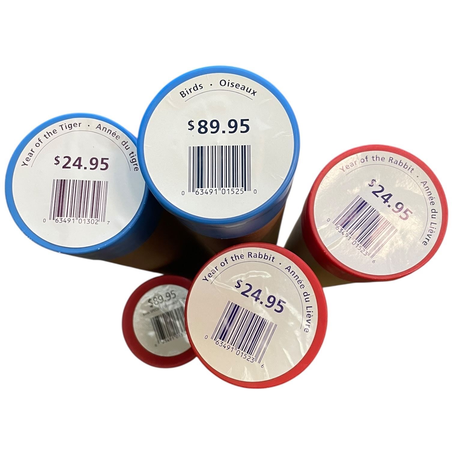 5 Mint Condition Canadian Poster Size Canadian Stamp Sheets (2 x Yr. of the Rabbit, 2 x Birds, 1 Yr. of the Tiger)