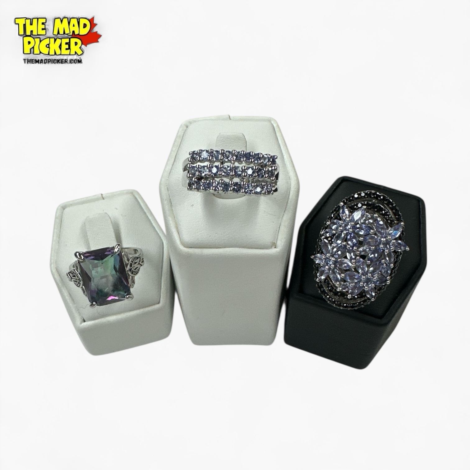 5 New Blue & 1 Mystic Topaz Rings in Silver Settings (all stamped .925) Total weight: 60.8 grams
