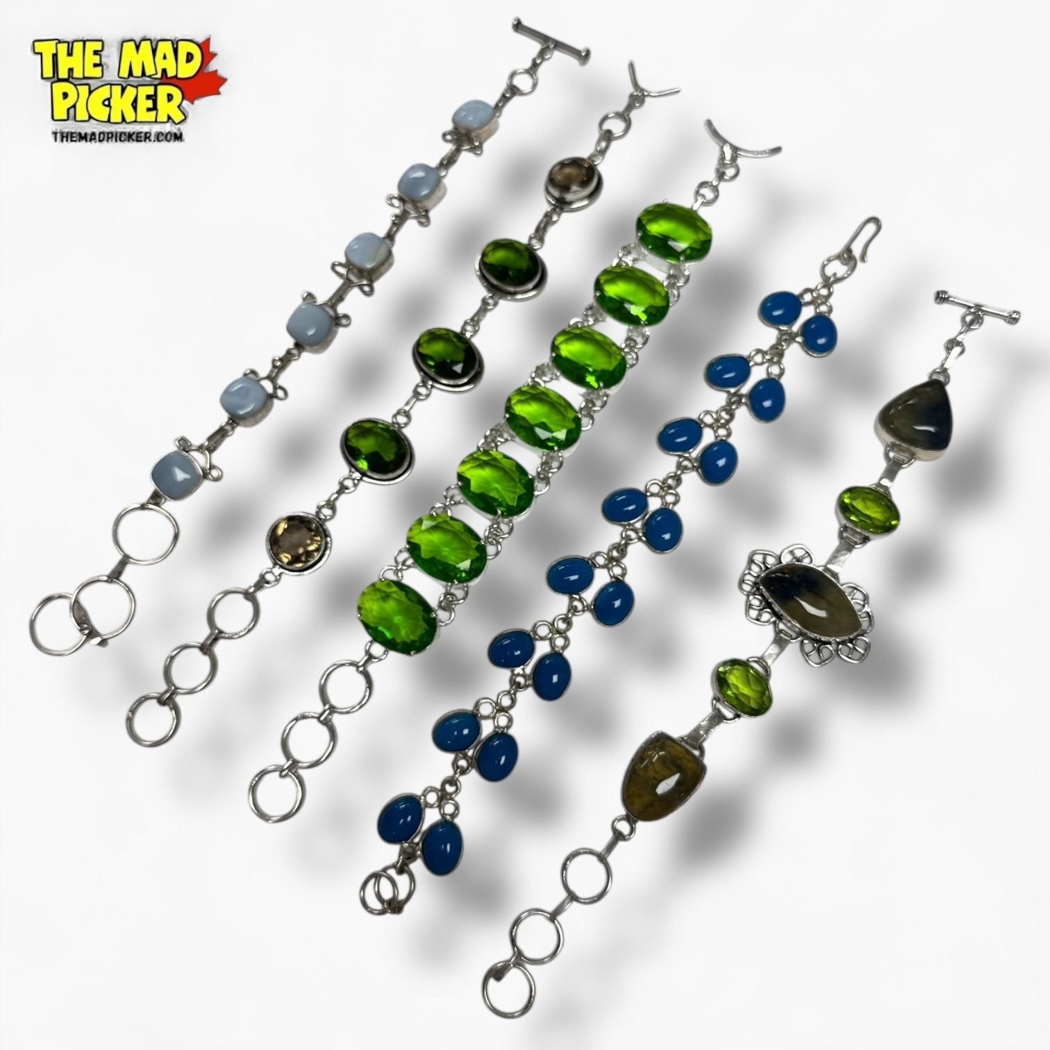 5 New Gemstone Toggle Bracelets in Silver Settings - Peridot Crystal, Citrine, Mabe Pearl, , Moonstone, and more