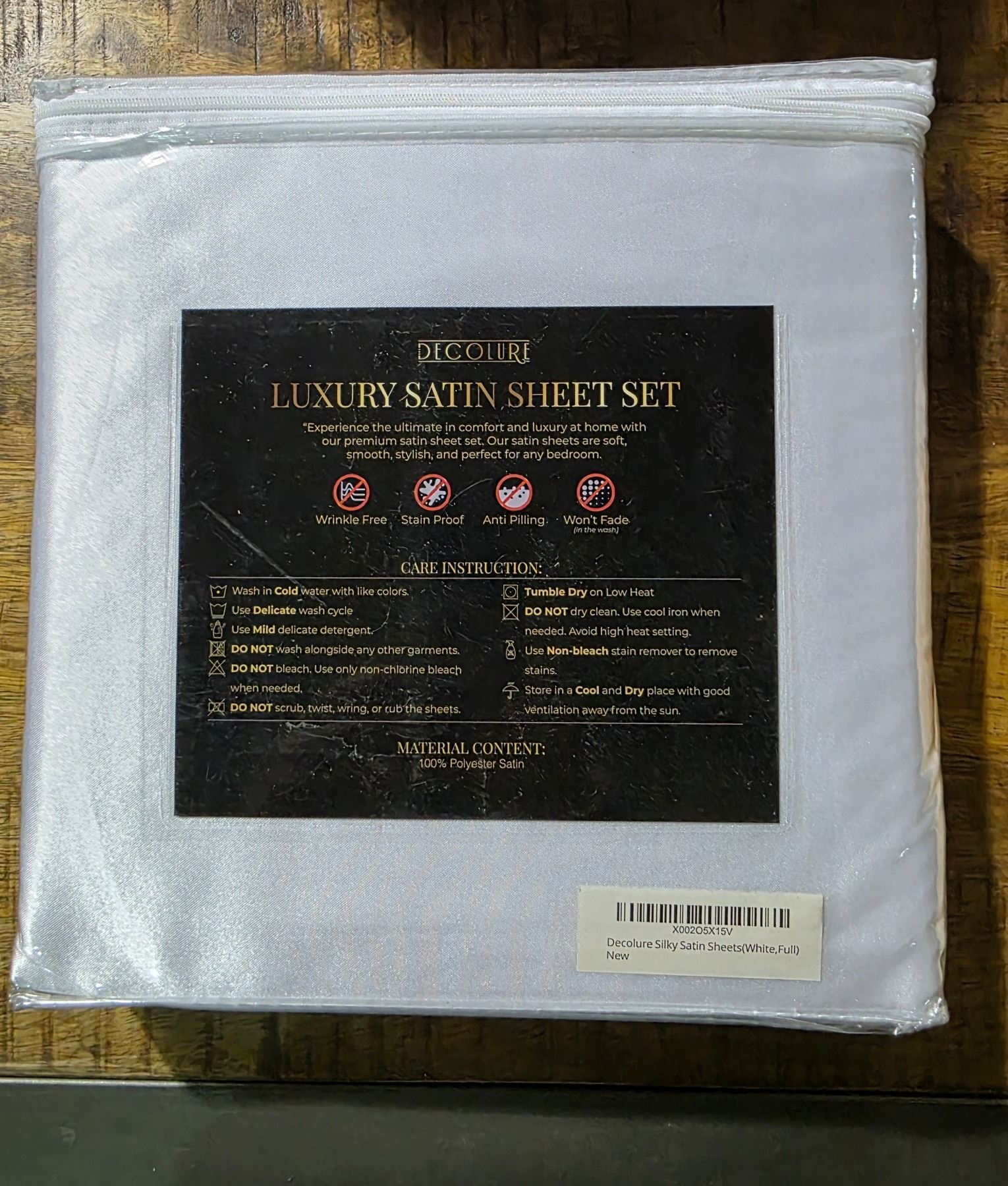 5 Pcs Luxury Satin Sheet Sets - 3 King Size Champagne & 2 White Full Size