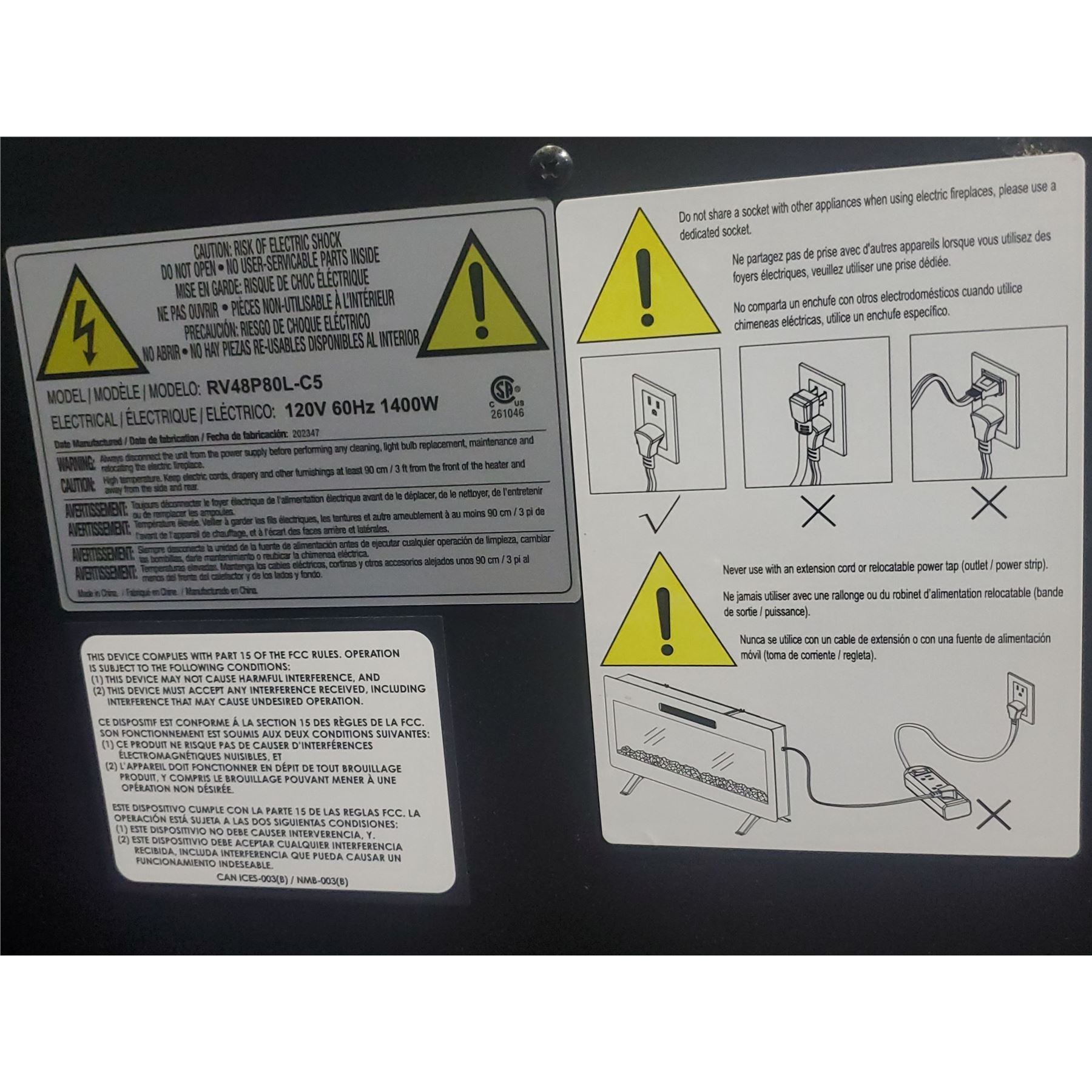 50" Wall Mount Electric Fireplace, Model: RV48P80L-C5 (Tested to power on - sold as is) - Approx. H18.5" x 50"