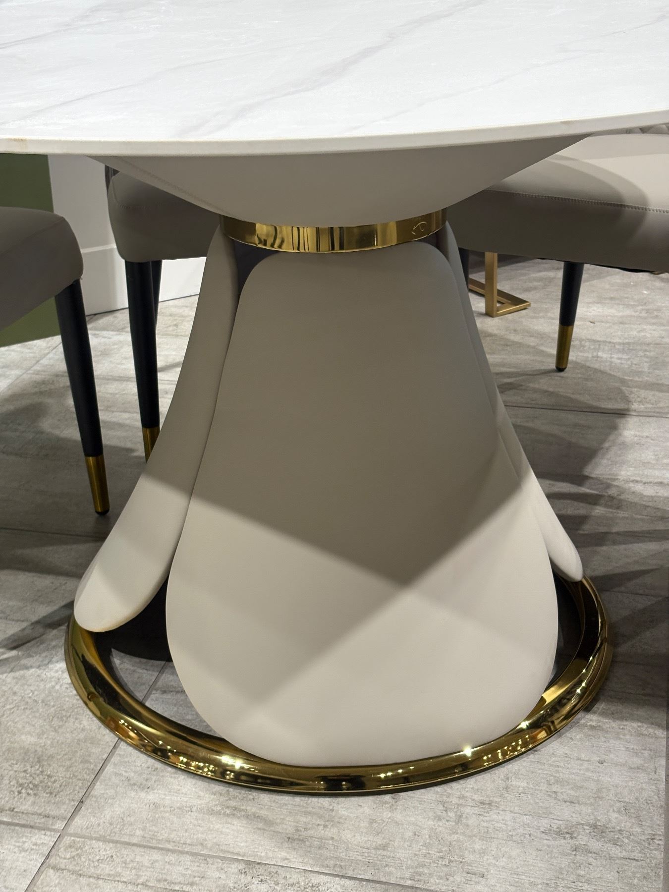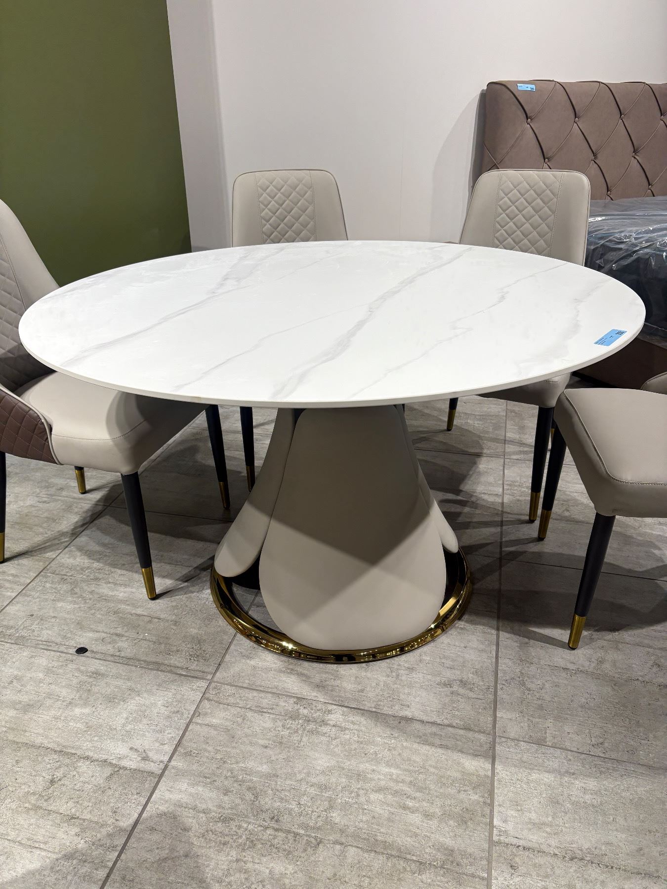 51in Modern Round Dining Table Sintered Stone Top with Polished Gold Base - 30in tall (Matching with lot 907)