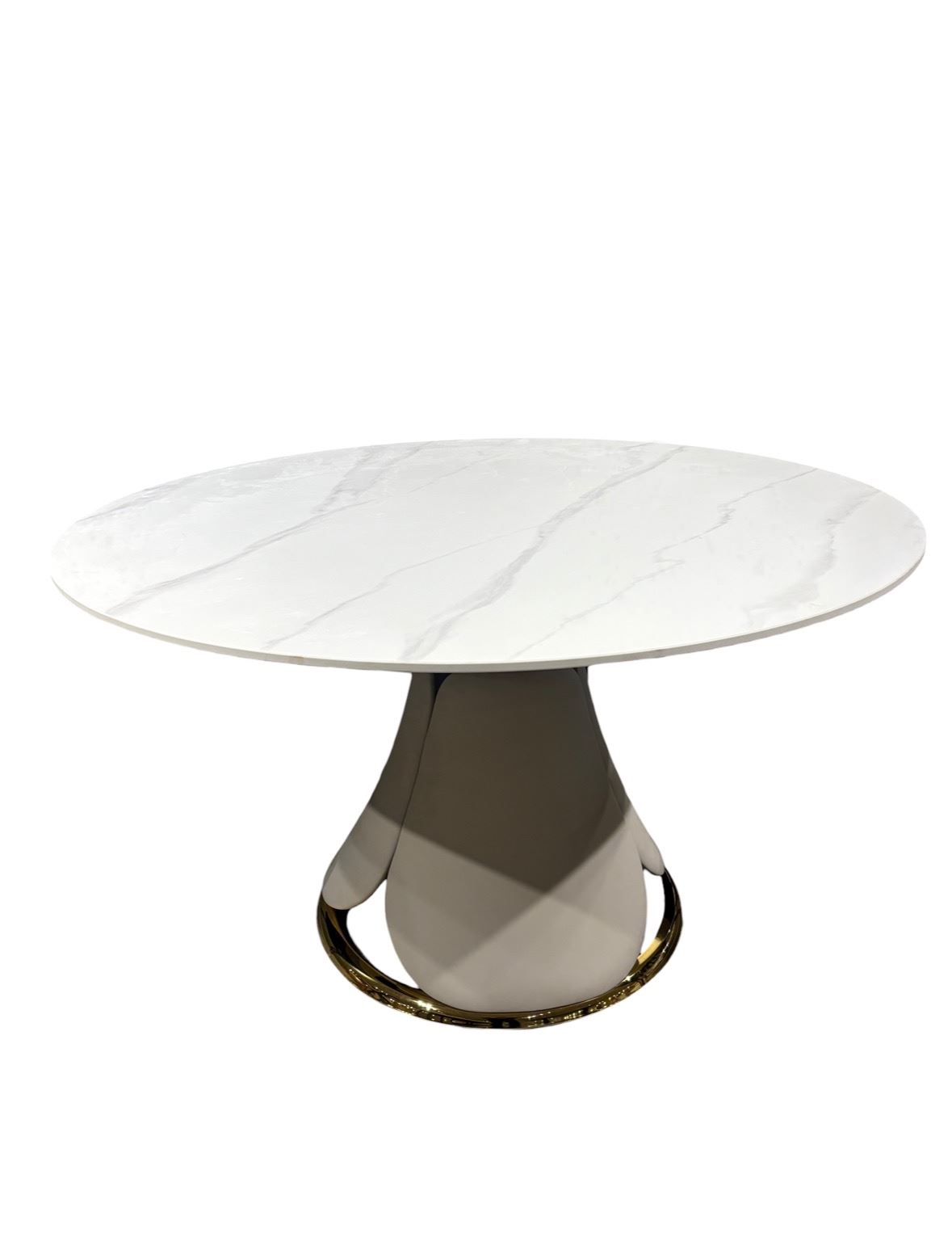 51in Modern Round Dining Table Sintered Stone Top with Polished Gold Base - 30in tall