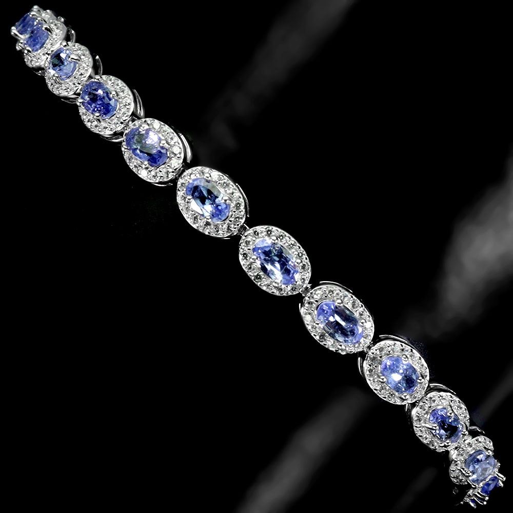 5X3 mm OVAL TANZANITE BRACELET IN 14K WHITE PLATED GOLD OVER 925 STERLING SILVER -APPRAISED REPLACEMENT VALUE CAD 2.065