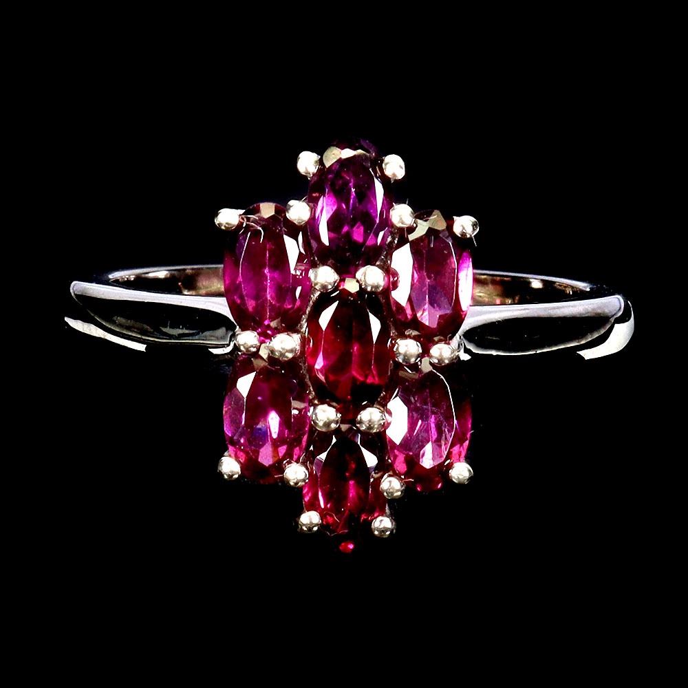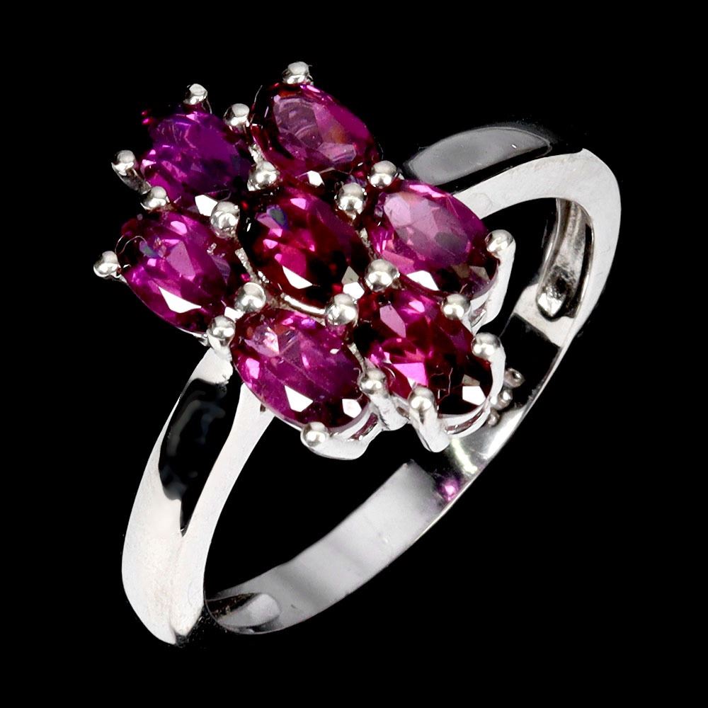 5X3 mm RHODOLITE GARNET RING IN 14K WHITE GOLD PLATED OVER 925 STERLING SILVER - SIZE 7.5 - APPRAISED REPLACEMENT VALUE CAD 335