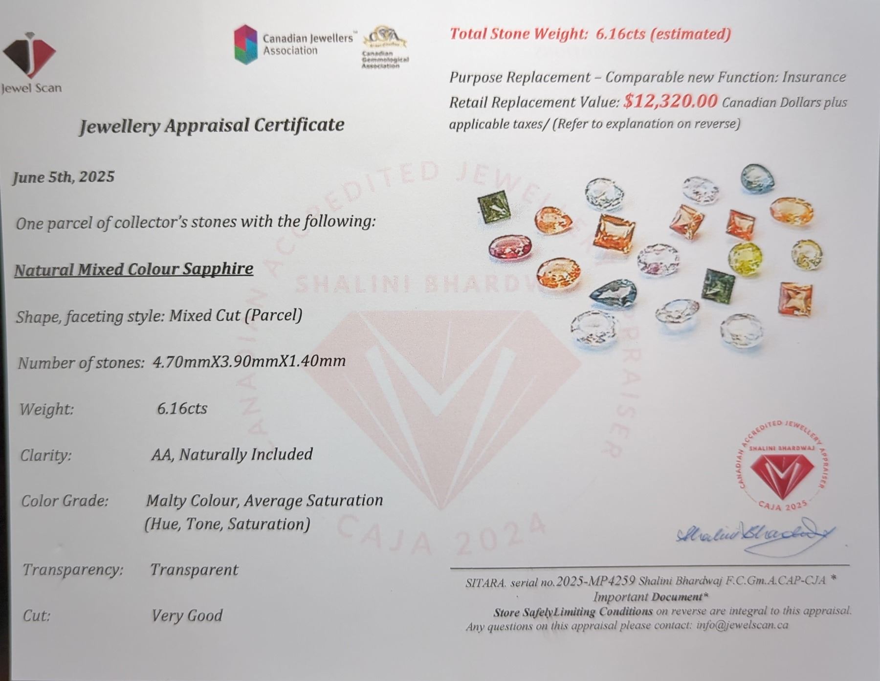 6.16 ct Authenticated Mixed Sapphire gemstone Parcel ($12,320 Appraisal)
