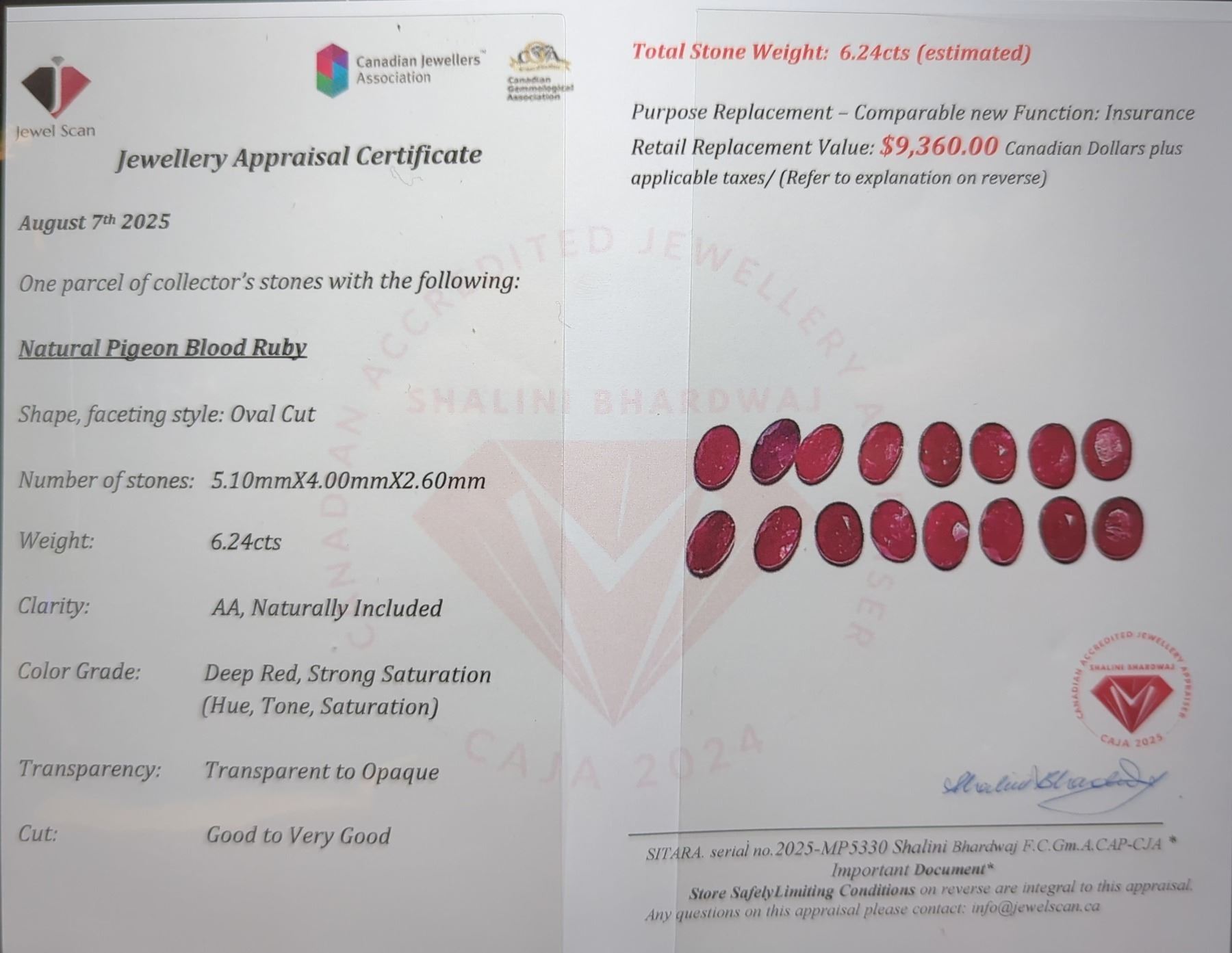 6.24 ct Certified Pigeon Blood Ruby gemstone PARCEL ($9,360 Appraisal)