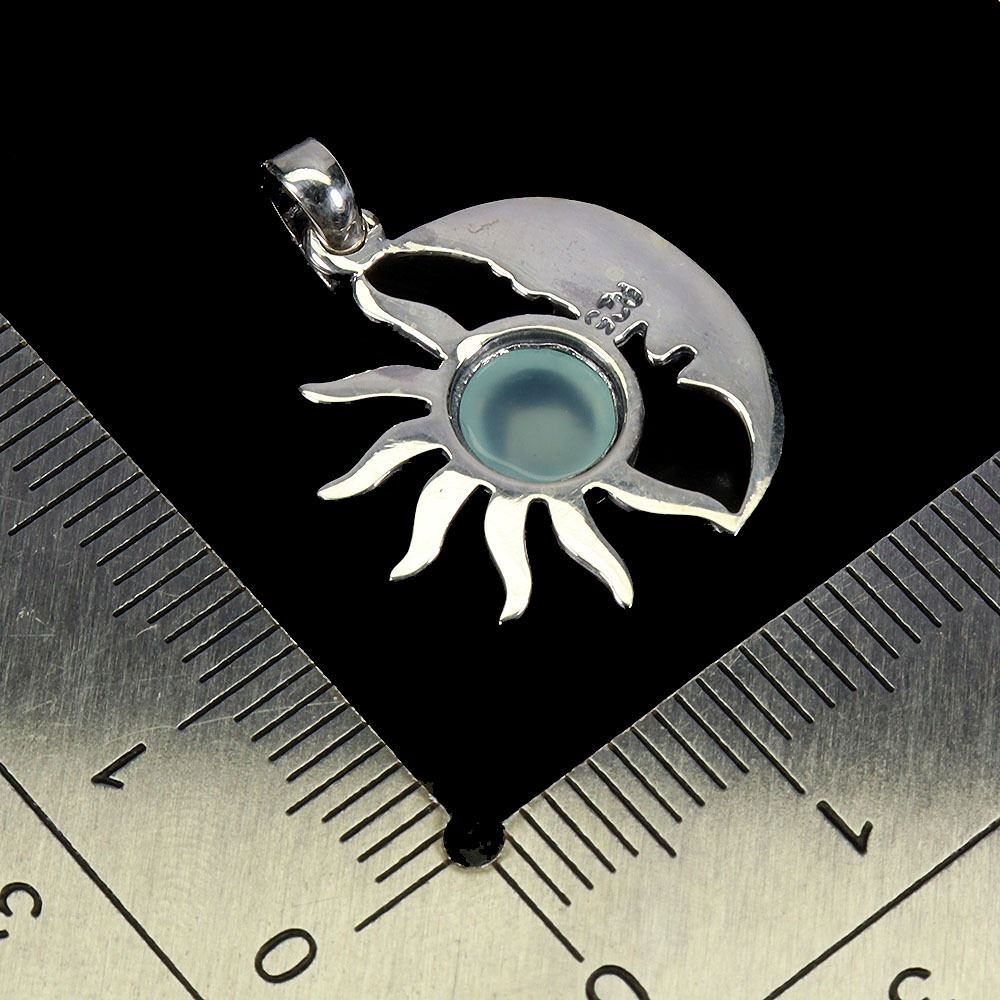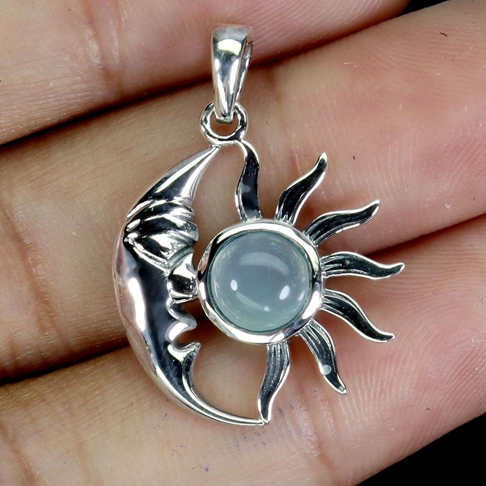6 MM ROUND NATURAL CHALCEDONY PENDANT IN 14K WHITE PLATED GOLD OVER 925 STERLING SILVER
