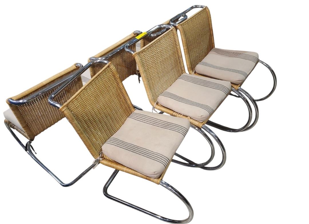 6 Matching Wicker Chairs on Chrome Frames - Seat Cushions Included