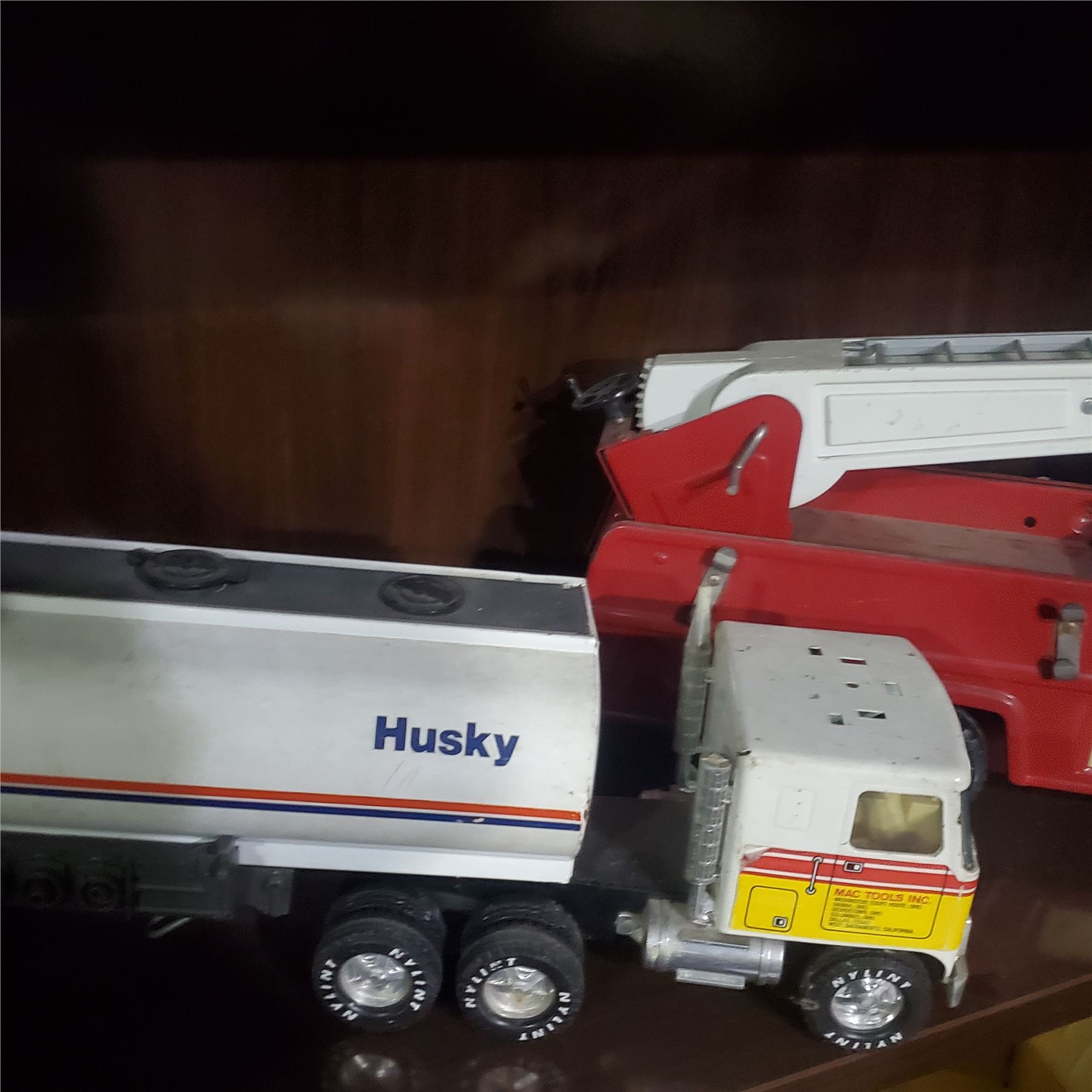 6 Mixed Vintage Vehicle - Tractor‑Trailers, Ladder Truck, and Dump Truck