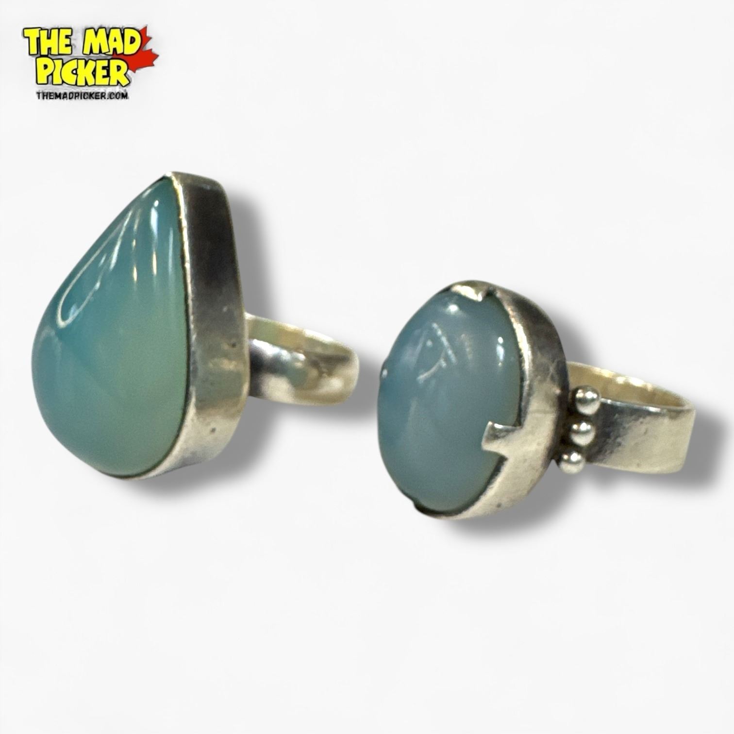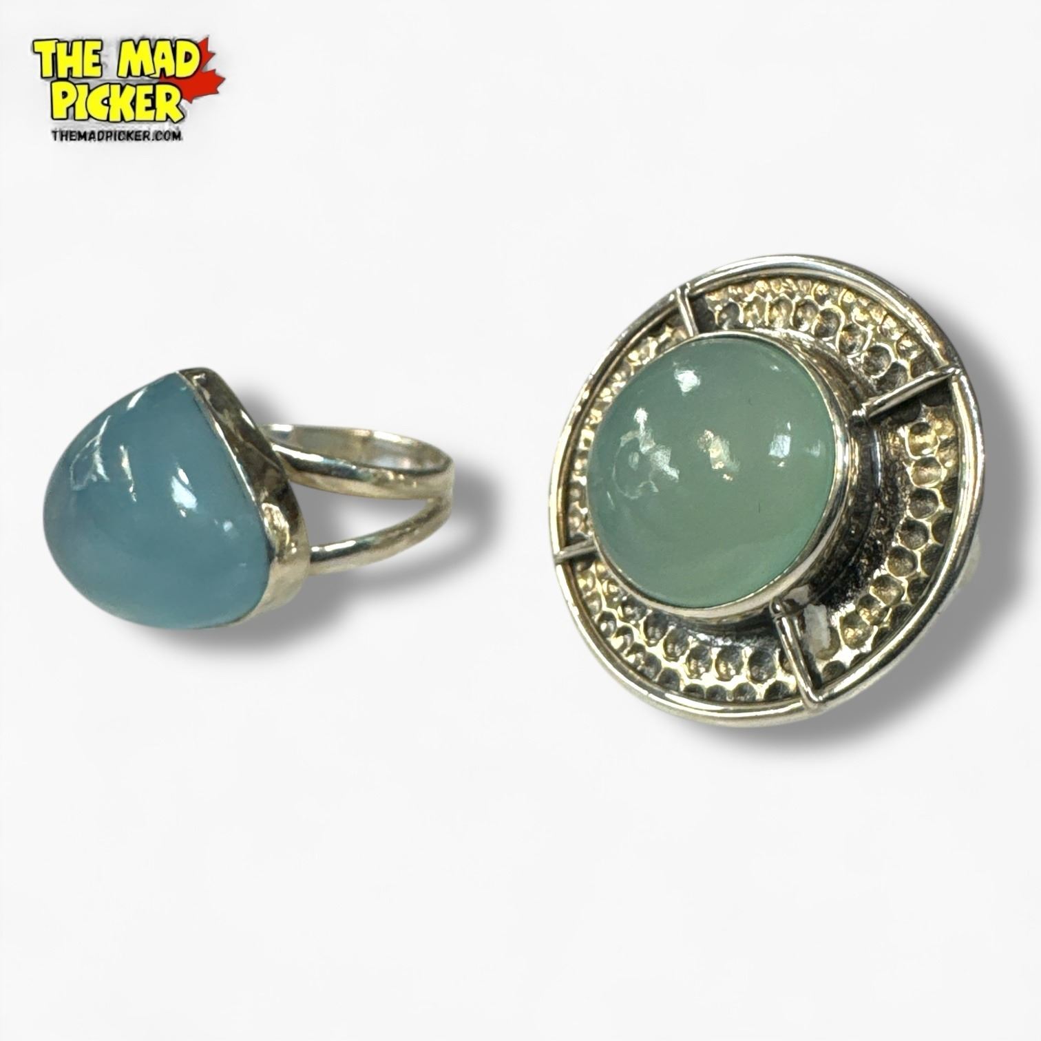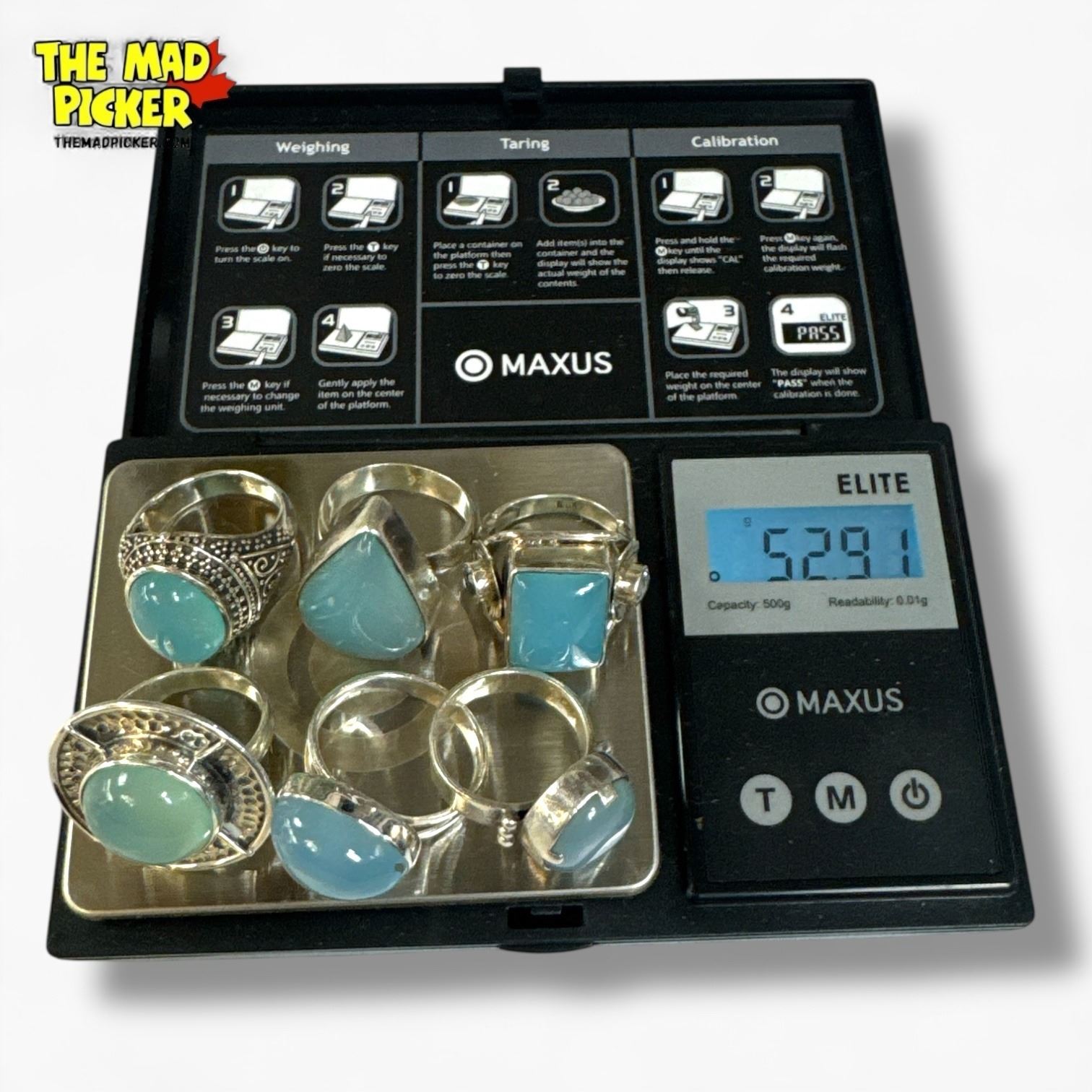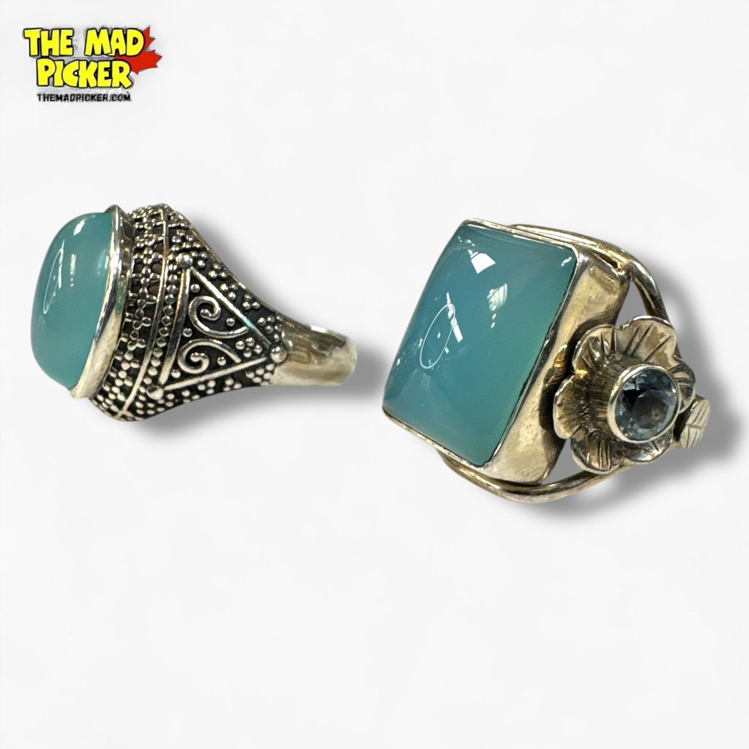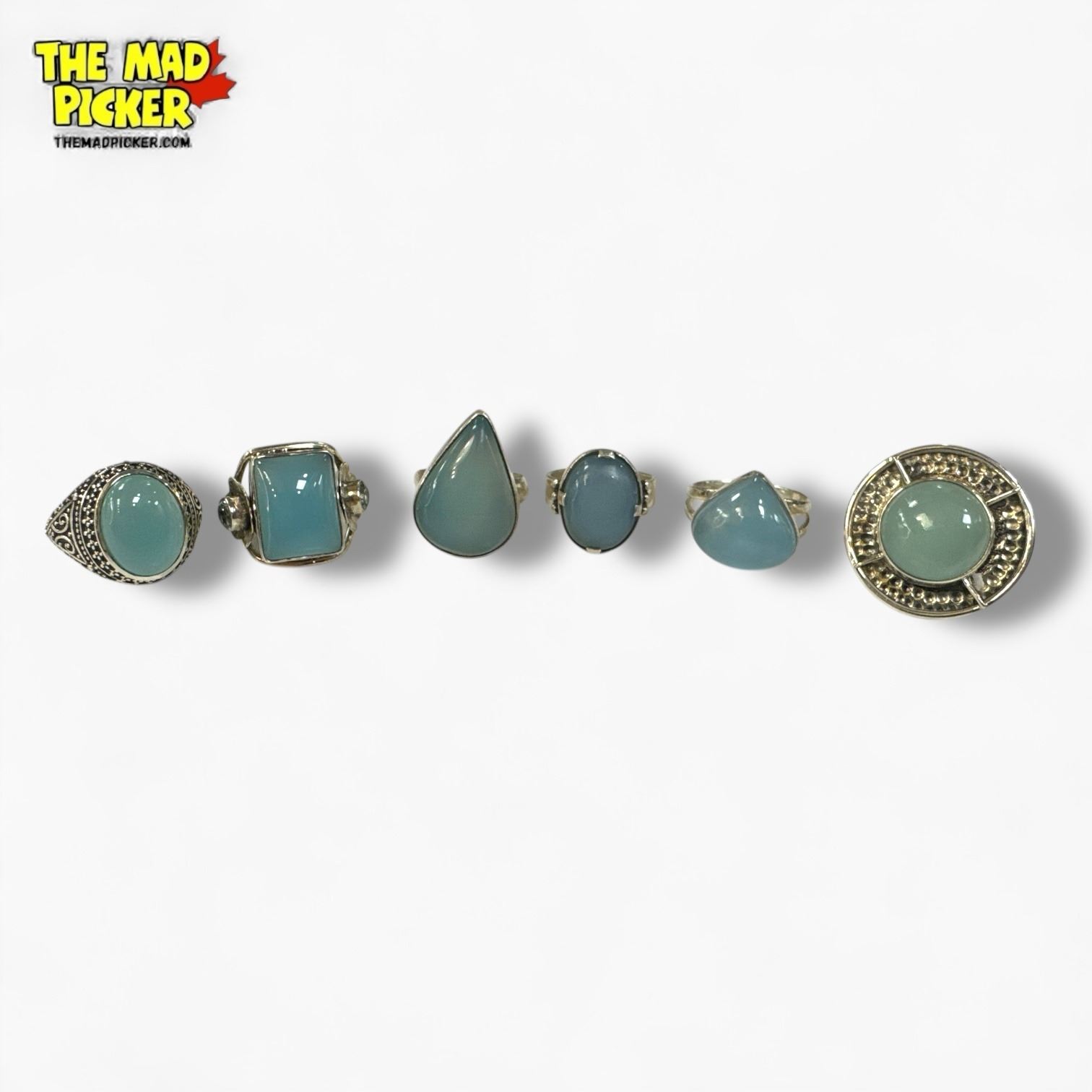 6 New .925 Sterling Silver Blue Chalcedony Rings - Longest ring is 25 mm - Total Weight: 53 grams