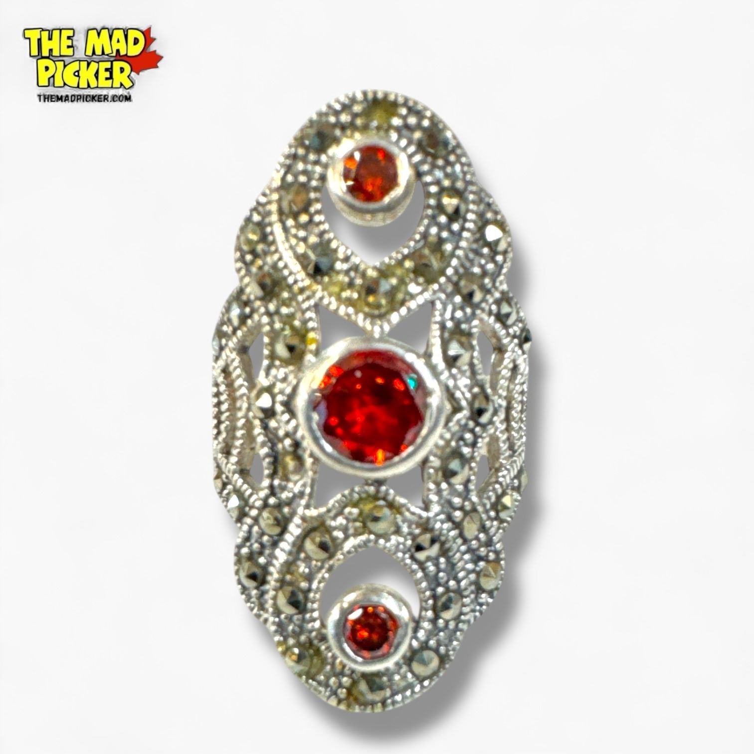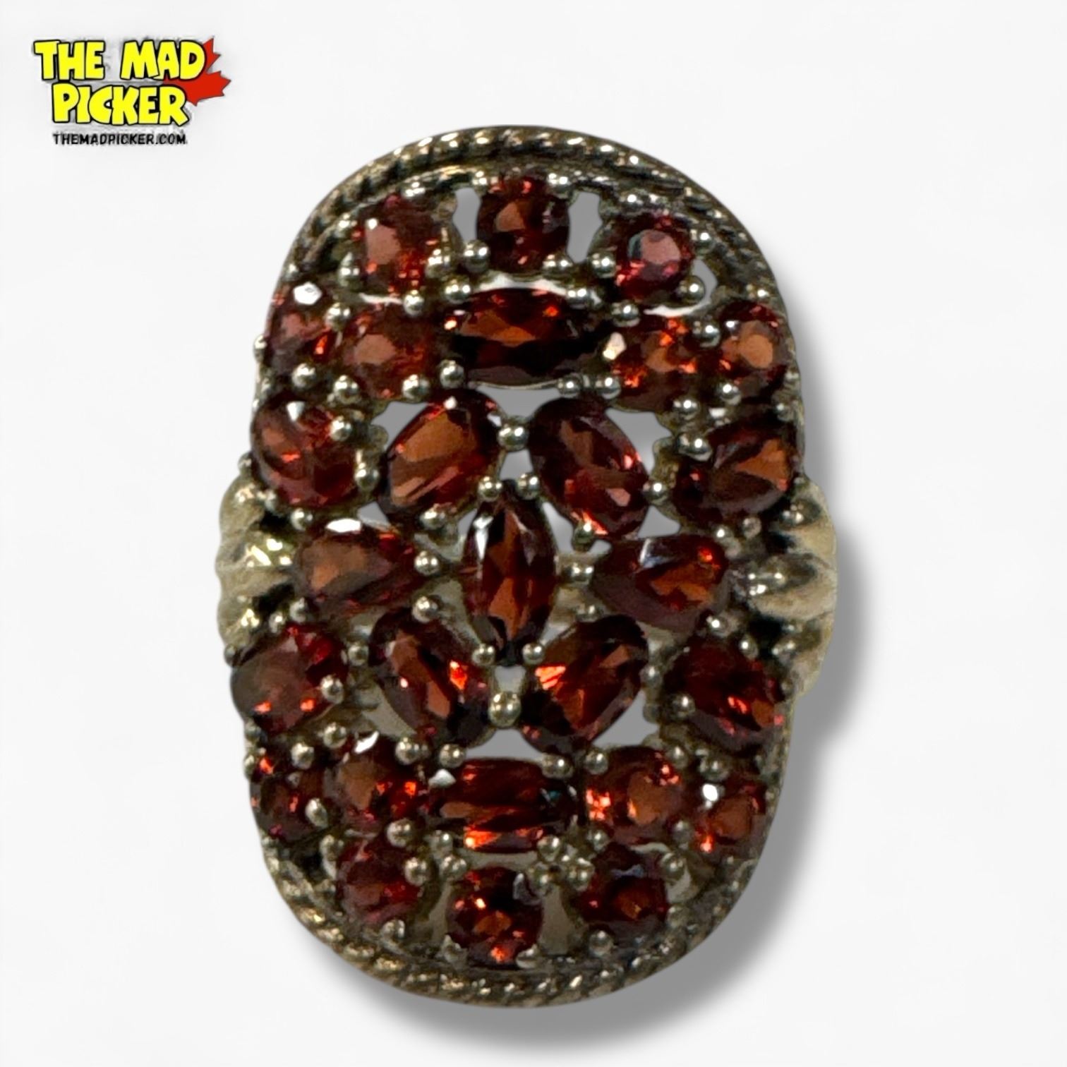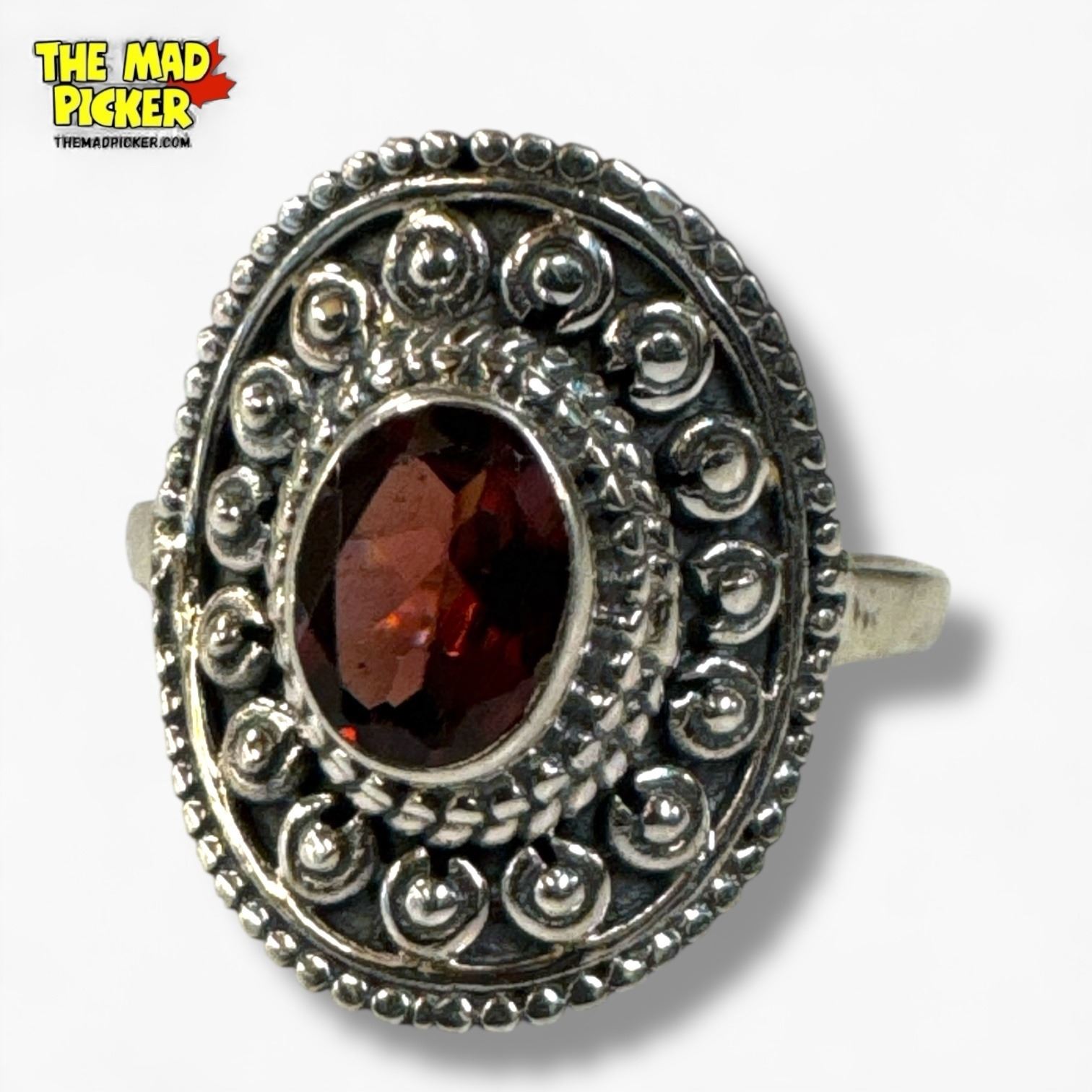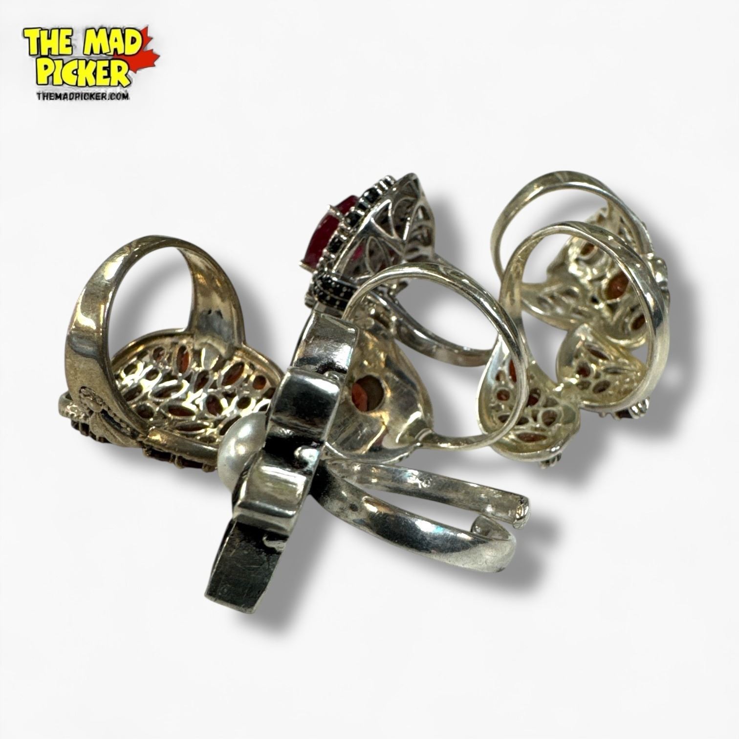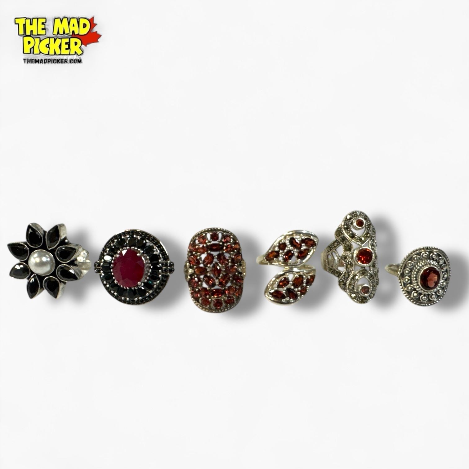 6 New .925 Sterling Silver Garnet Rings - Longest ring is 32 mm - Total Weight: 48.3 grams