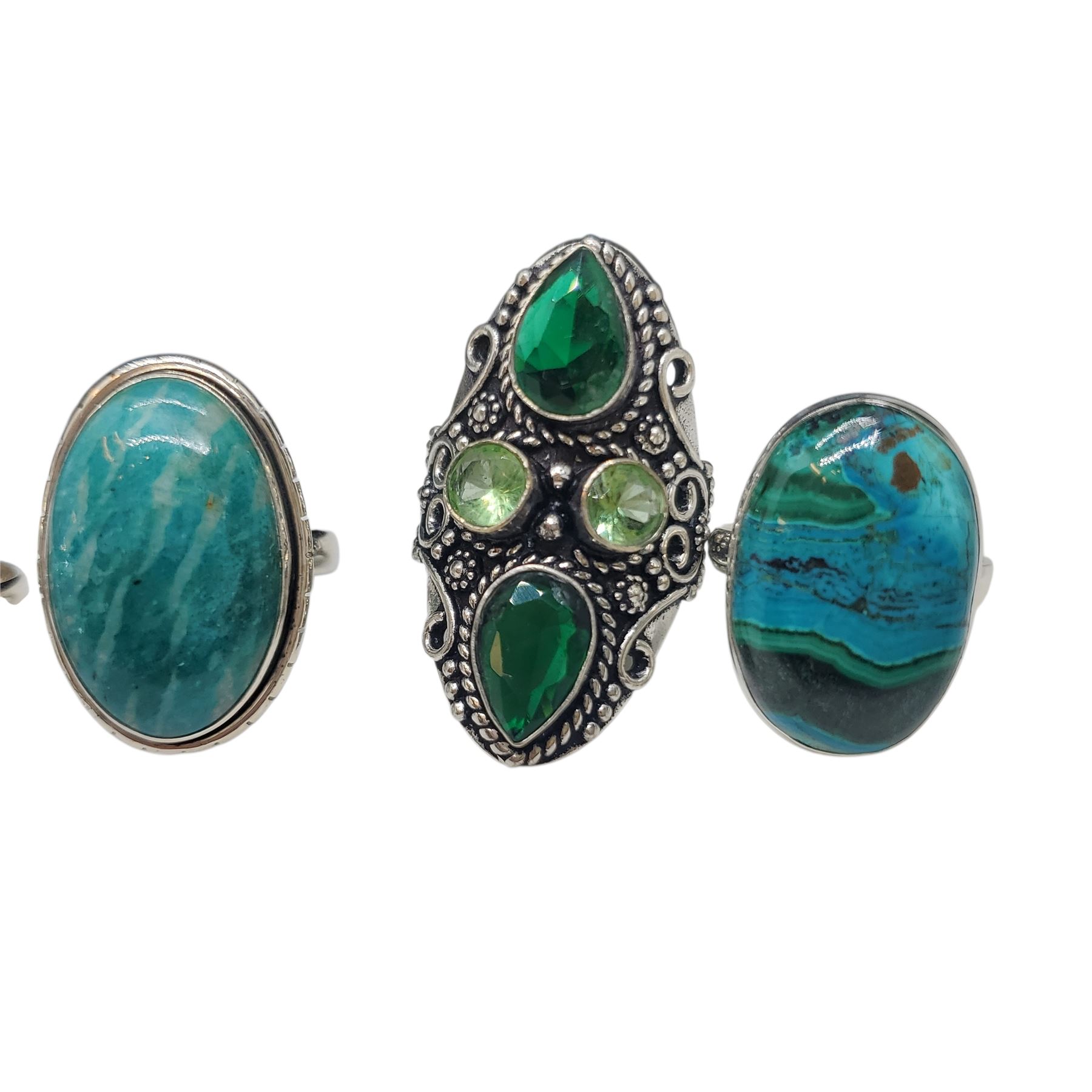 6 New .925 Sterling Silver Gemstone Rings - Turquoise, Golden Hills Turquoise, Chrysocolla Malachite. Longest ring is 28 mm - Total Weight: 53 grams