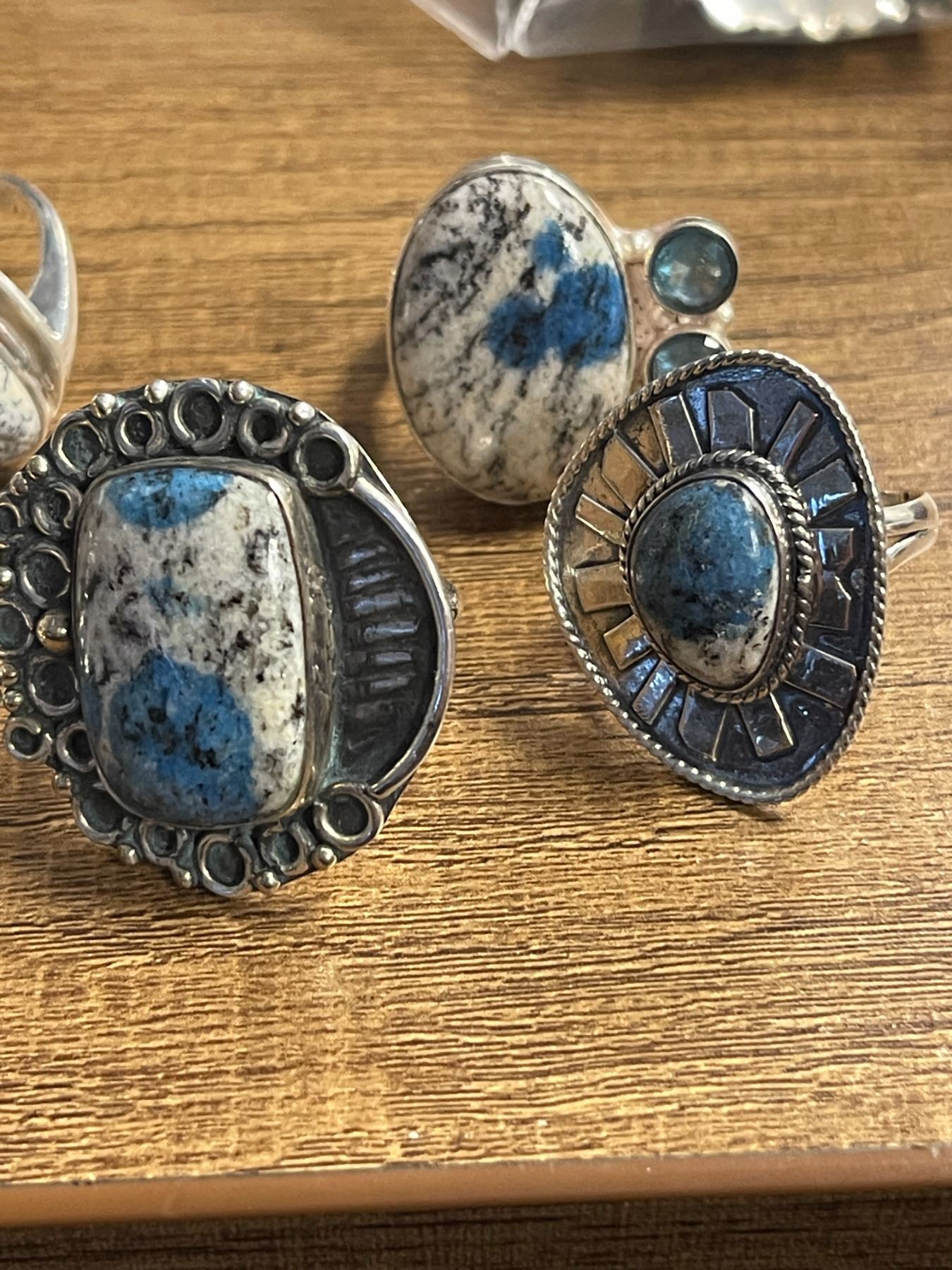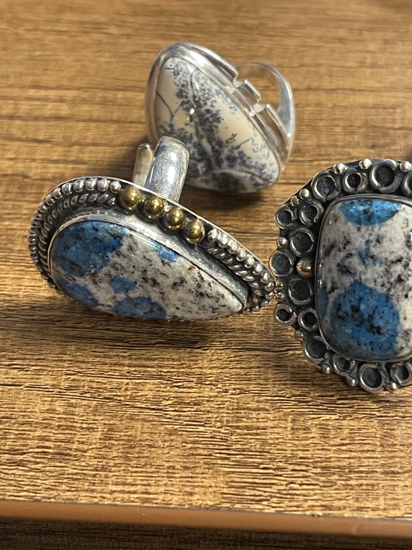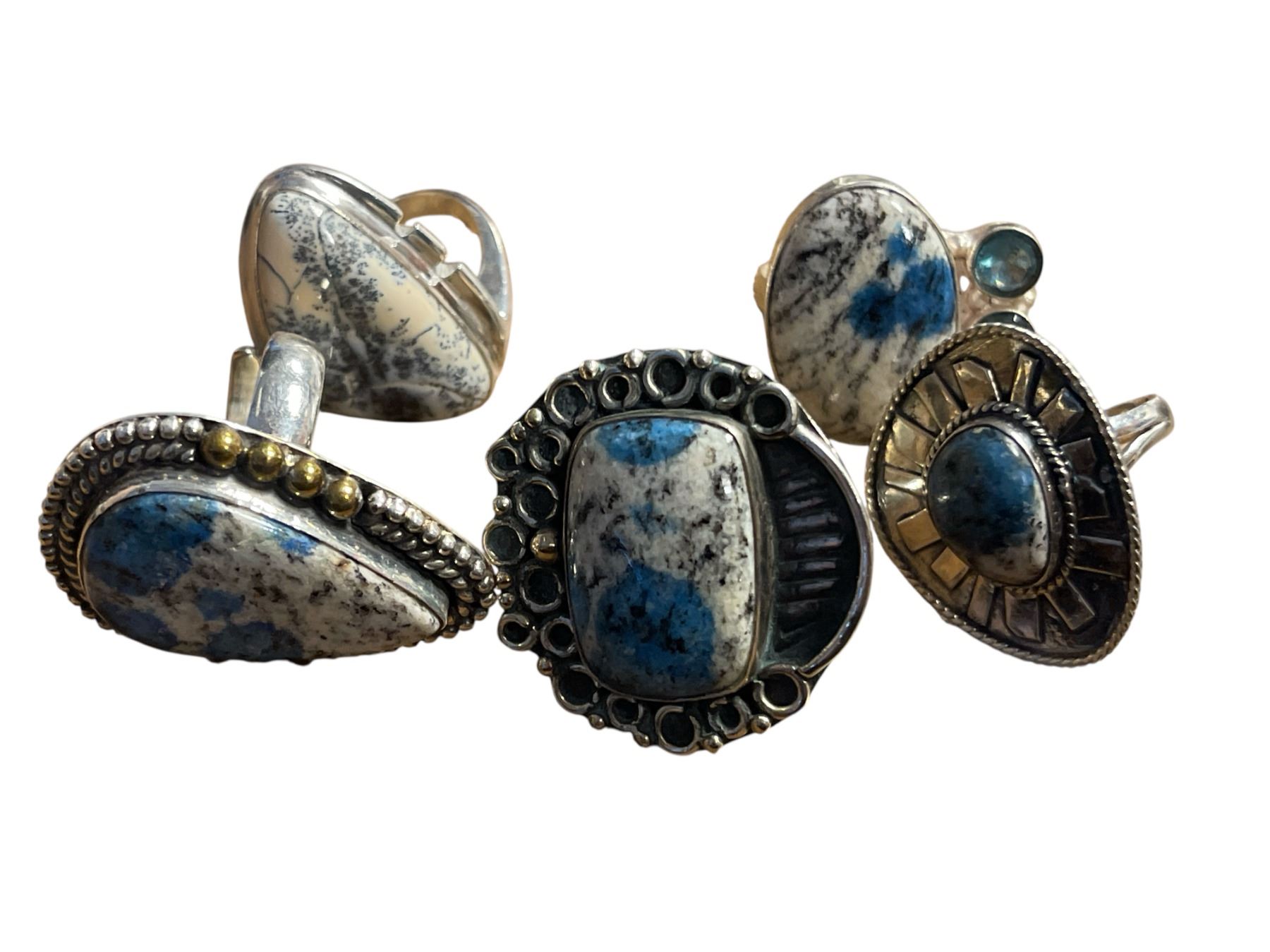 6 New K2 Jasper & Agate Rings in Silver Settings - all stamped .925 (longest stone is 28 mm) Total weight: 55.1 grams