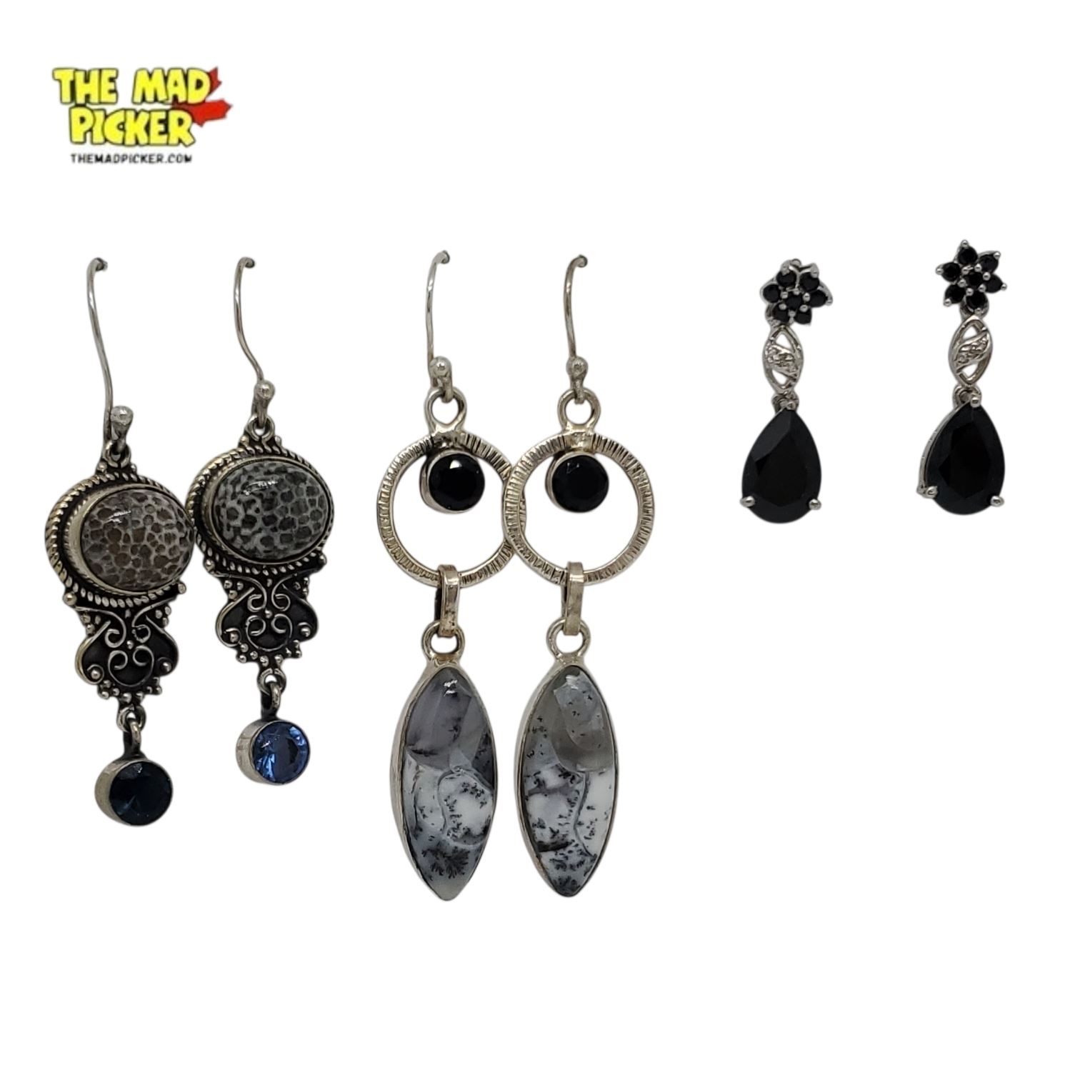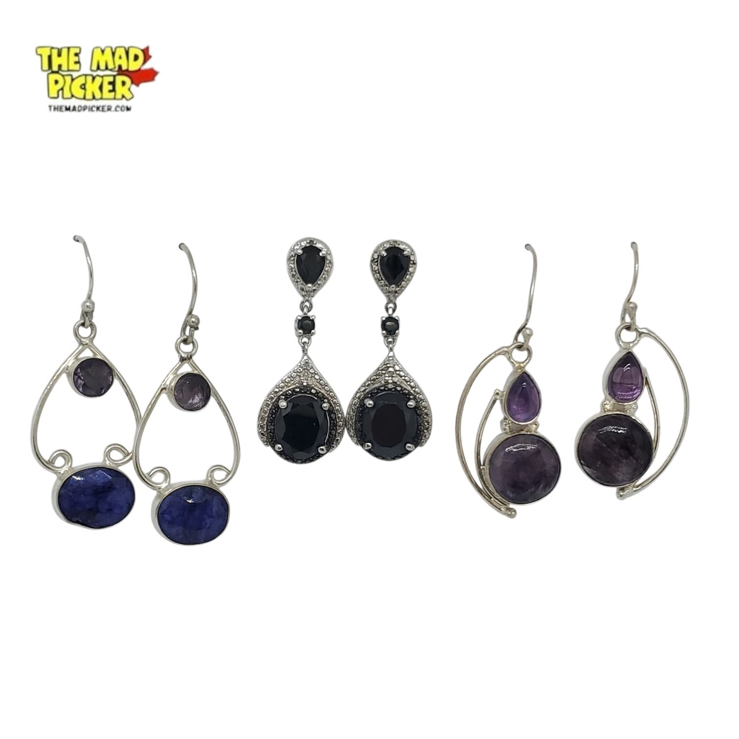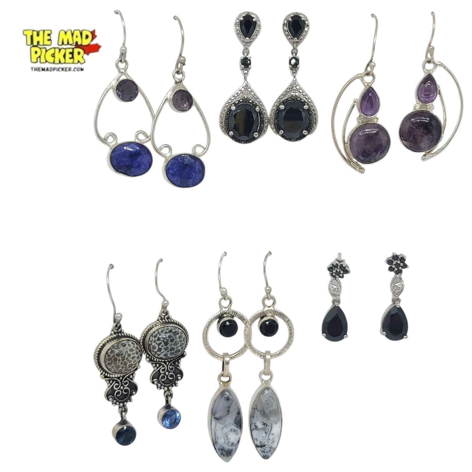 6 New Pairs of Sterling Silver Gemstone Earrings for Pierced Ears (all stamped .925) Total weight:43.3 grams