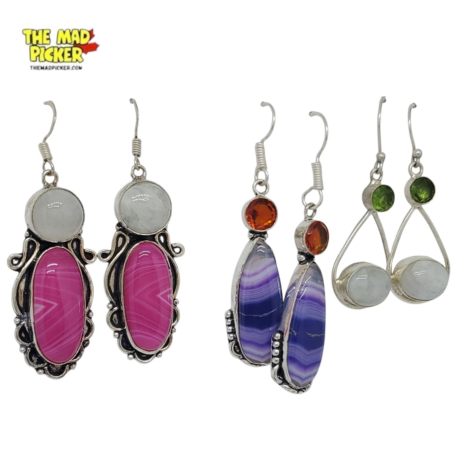6 New Pairs of Sterling Silver Gemstone Earrings for Pierced Ears (all stamped .925) Total weight: 66.7 grams