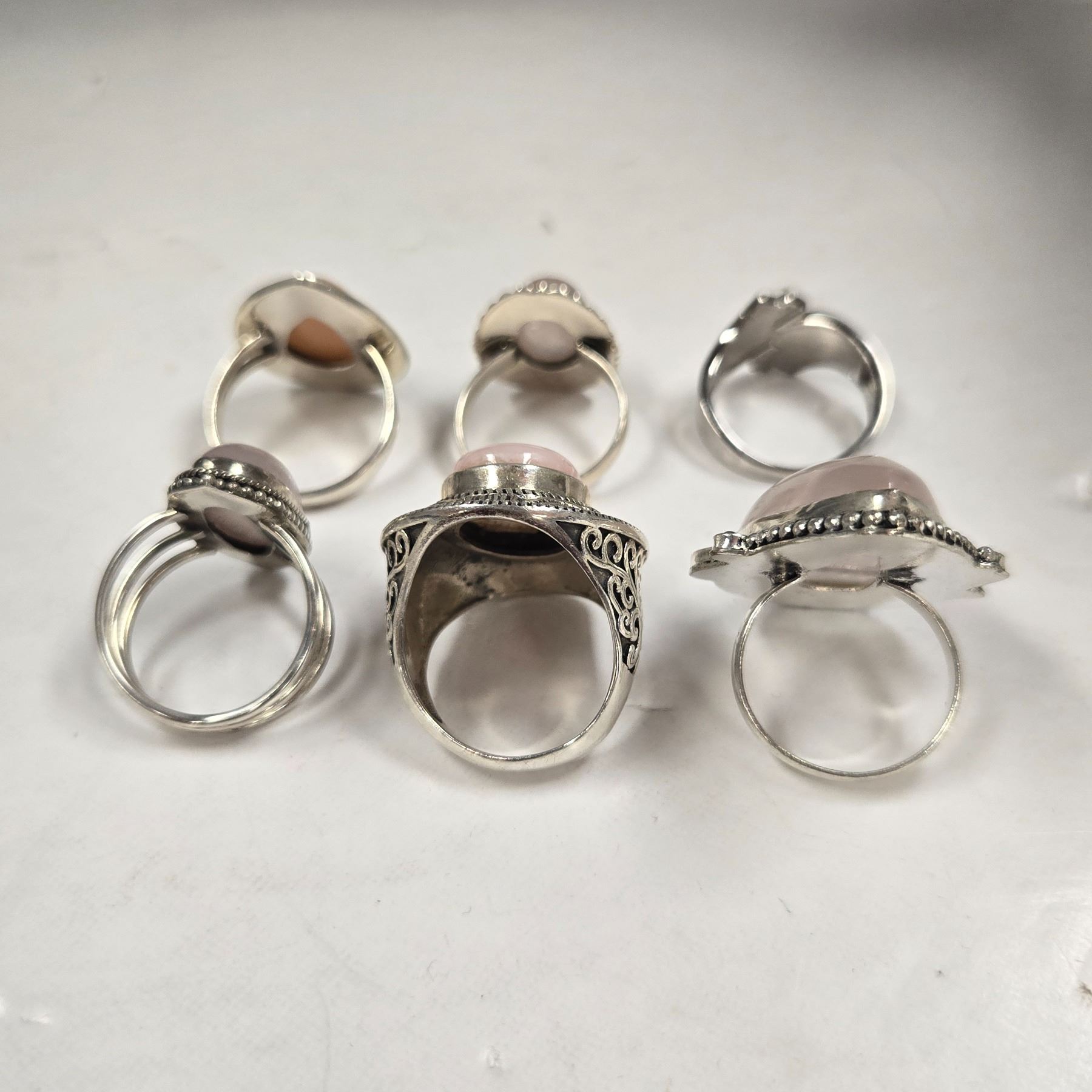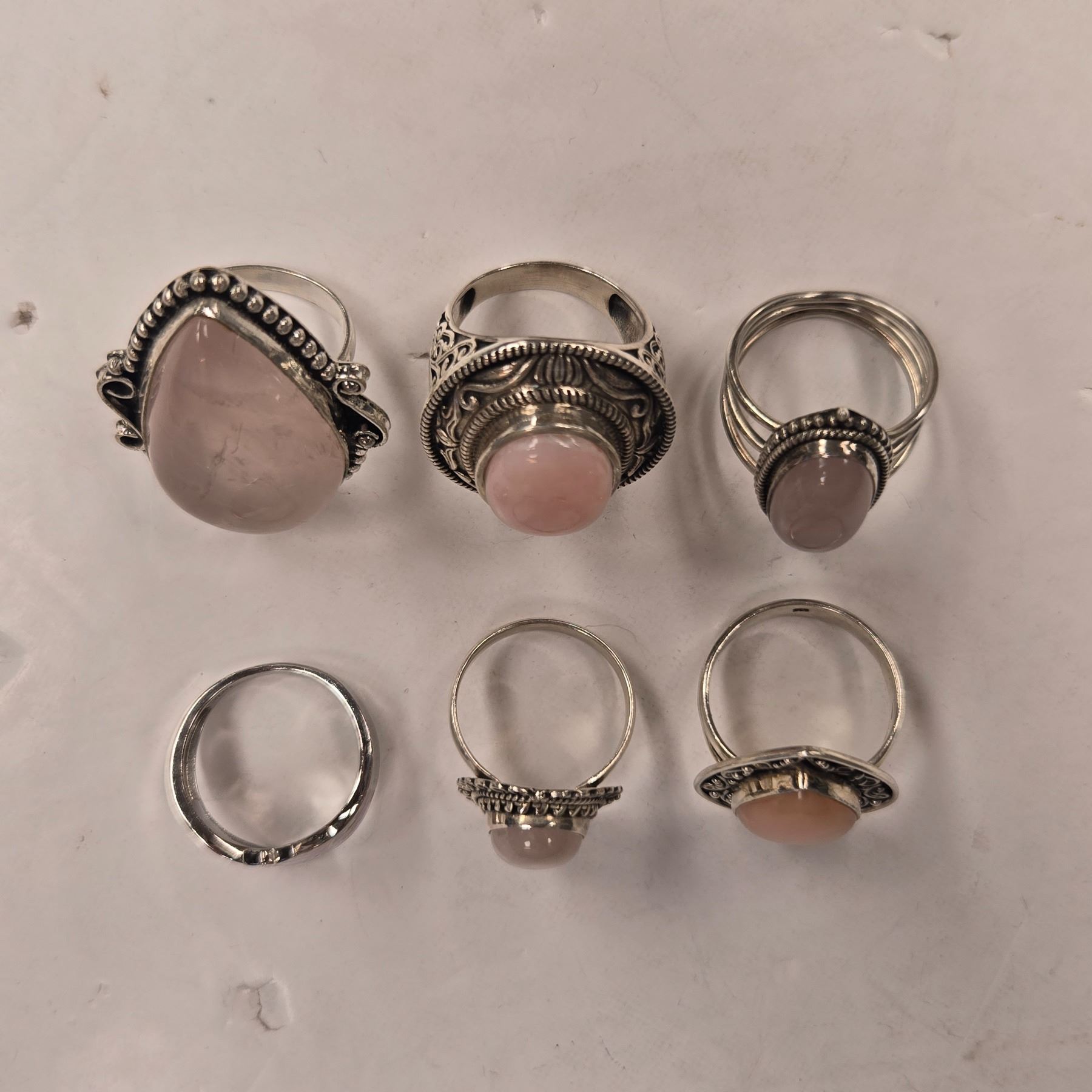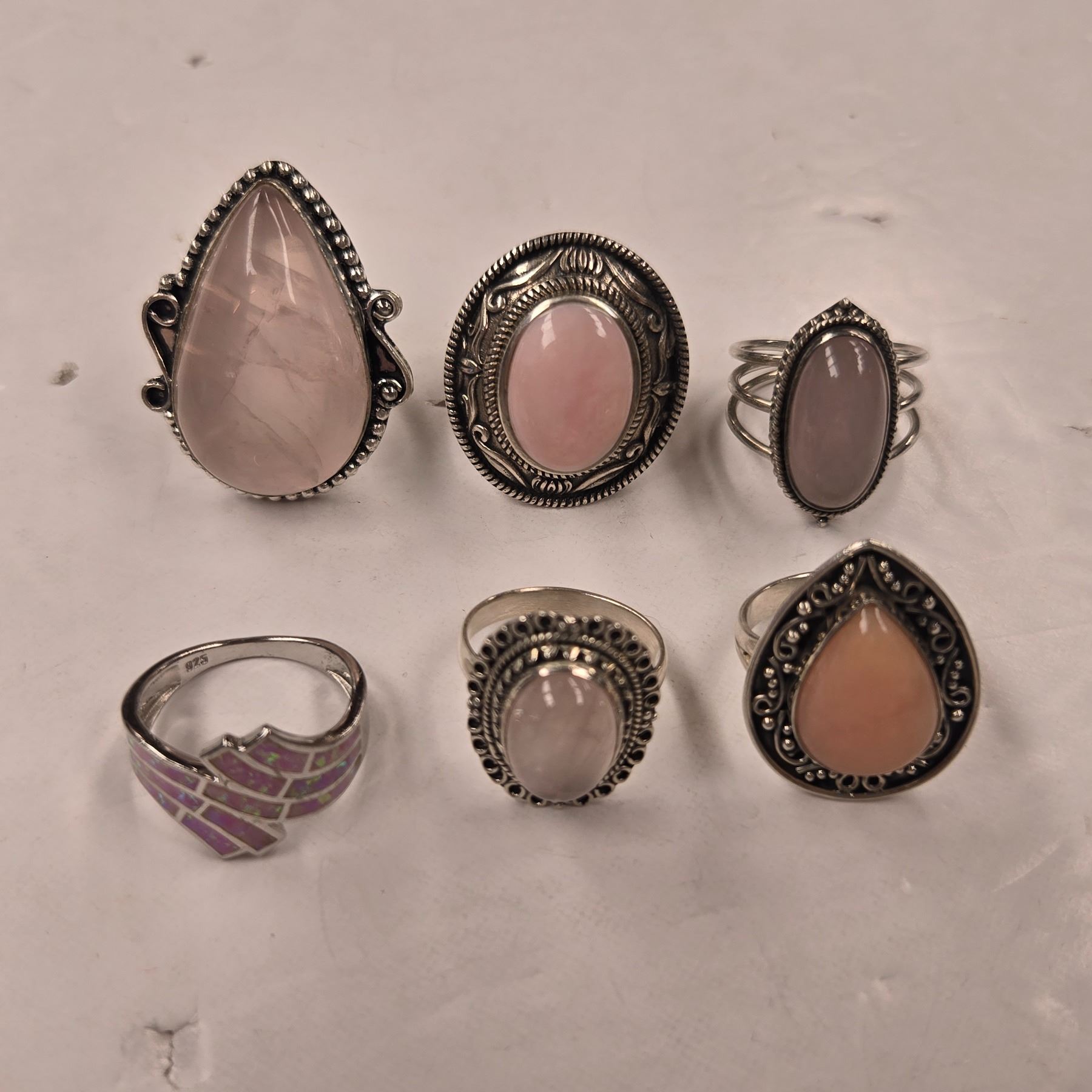 6 New Pink Andean Opal, Triplet Opal, & Rose Quartz Rings in Silver Settings (all stamped .925) Total weight: 59.2 grams