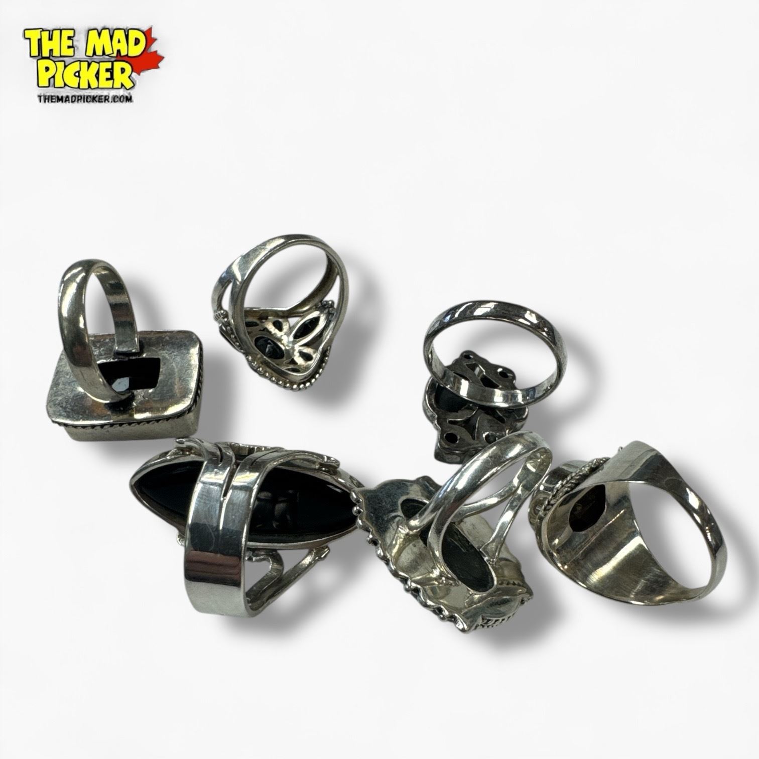 6 New Polished & Faceted Black Onyx & Quartz Rings in Silver Settings - all marked .925 - Total weight: 57.0 grams