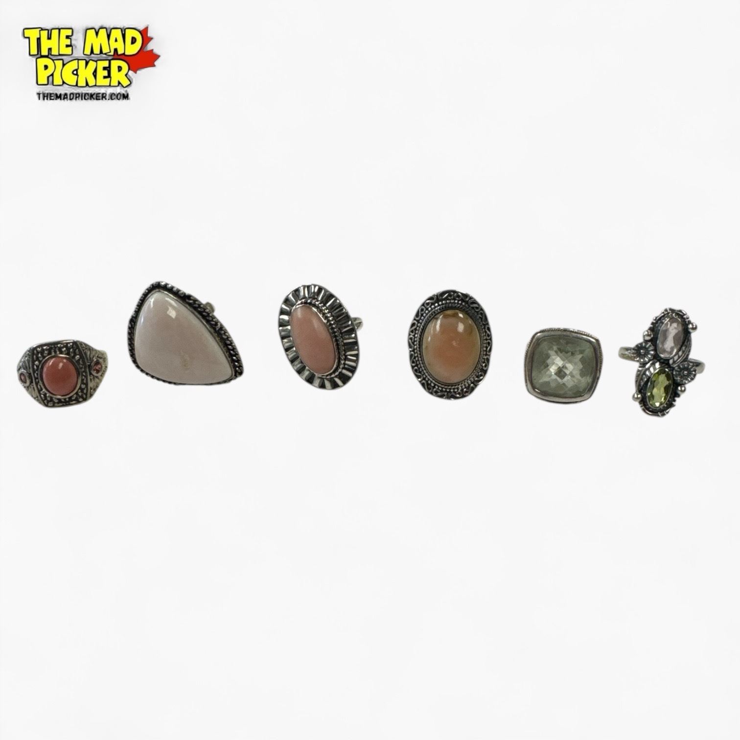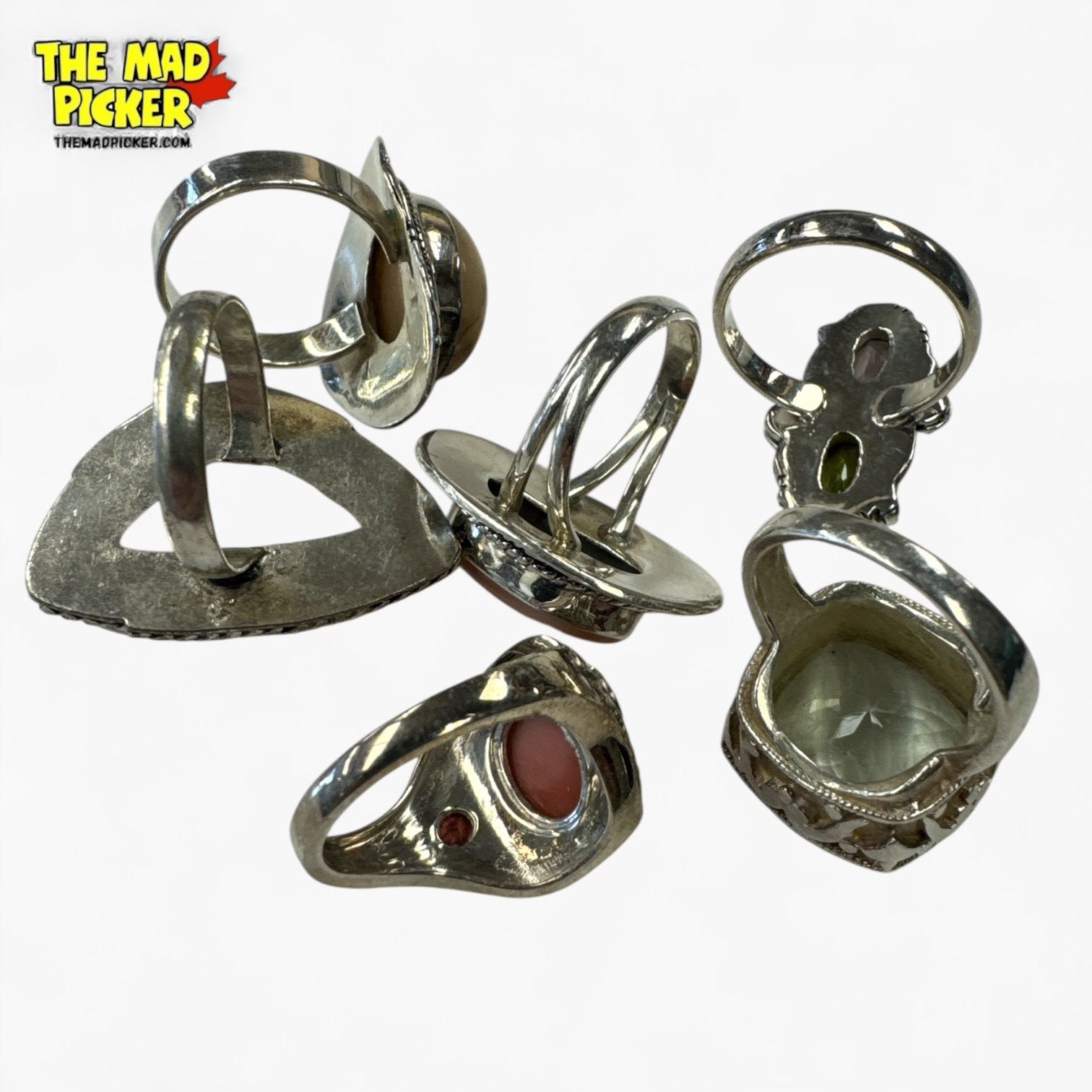 6 New Polished & Faceted Gemstone & Crystal Rings in Silver Settings (all stamped .925) * Total weight: 57 grams