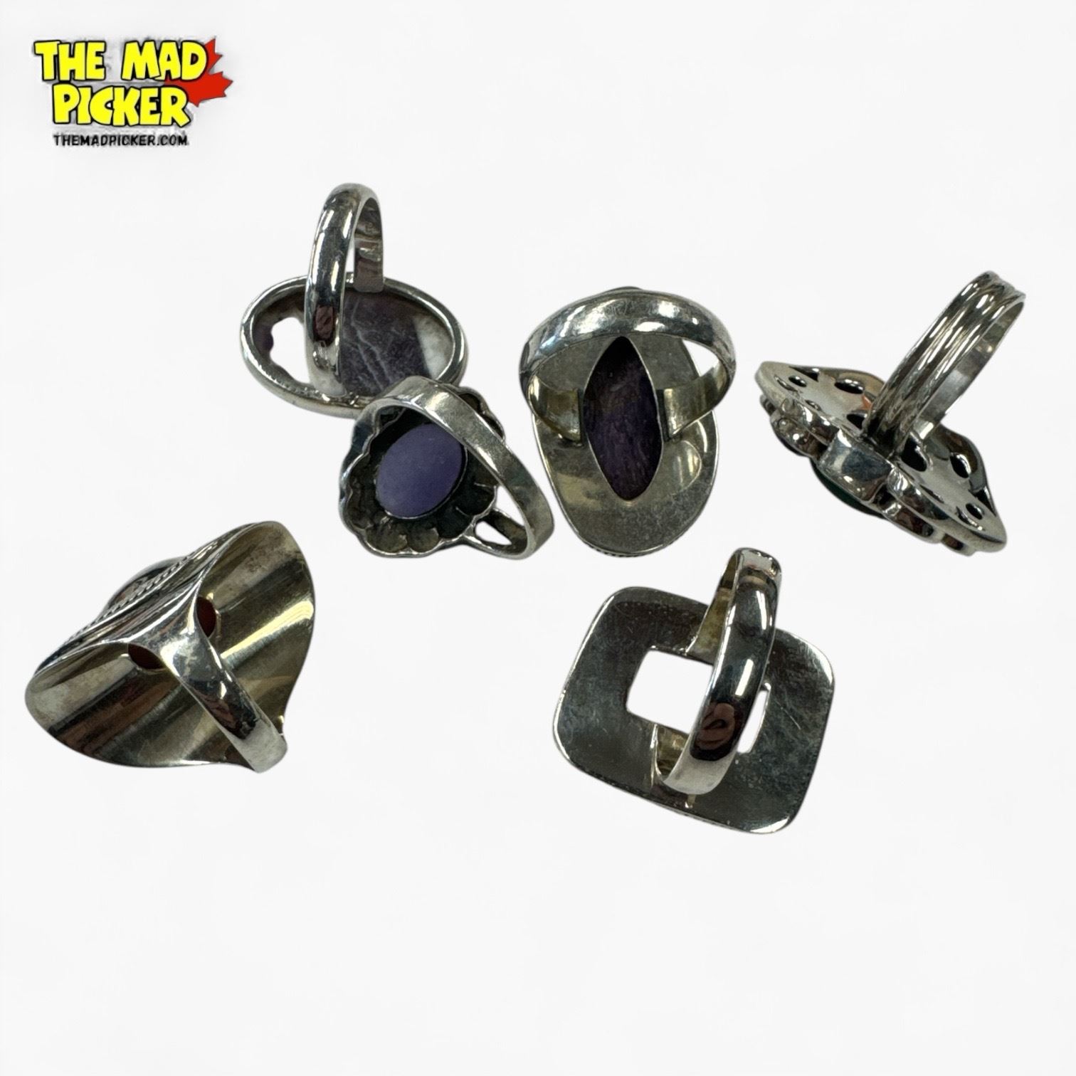 6 New Polished & Faceted Gemstone & Crystal Rings in Silver Settings (all stamped .925) * Total weight: 62.6 grams