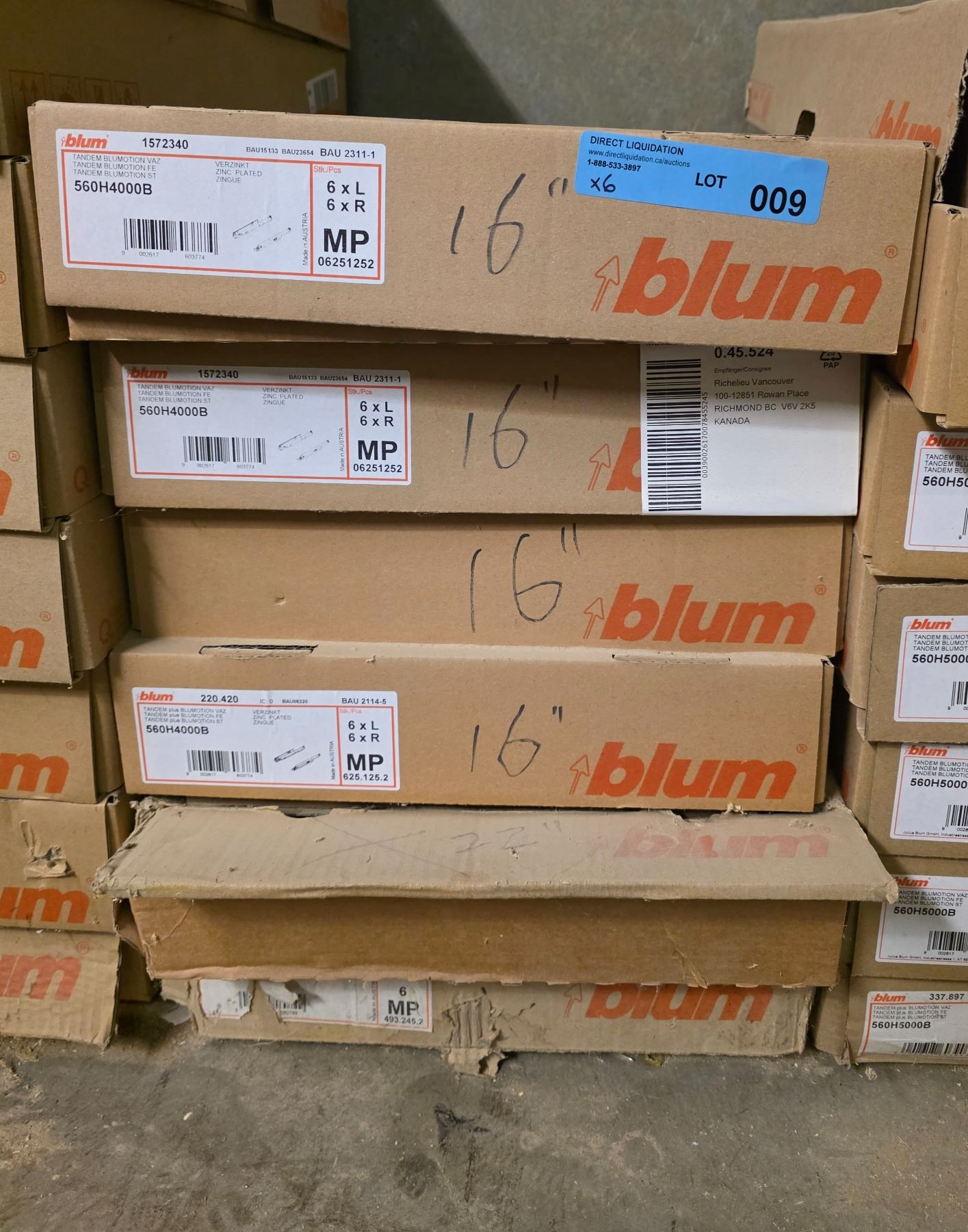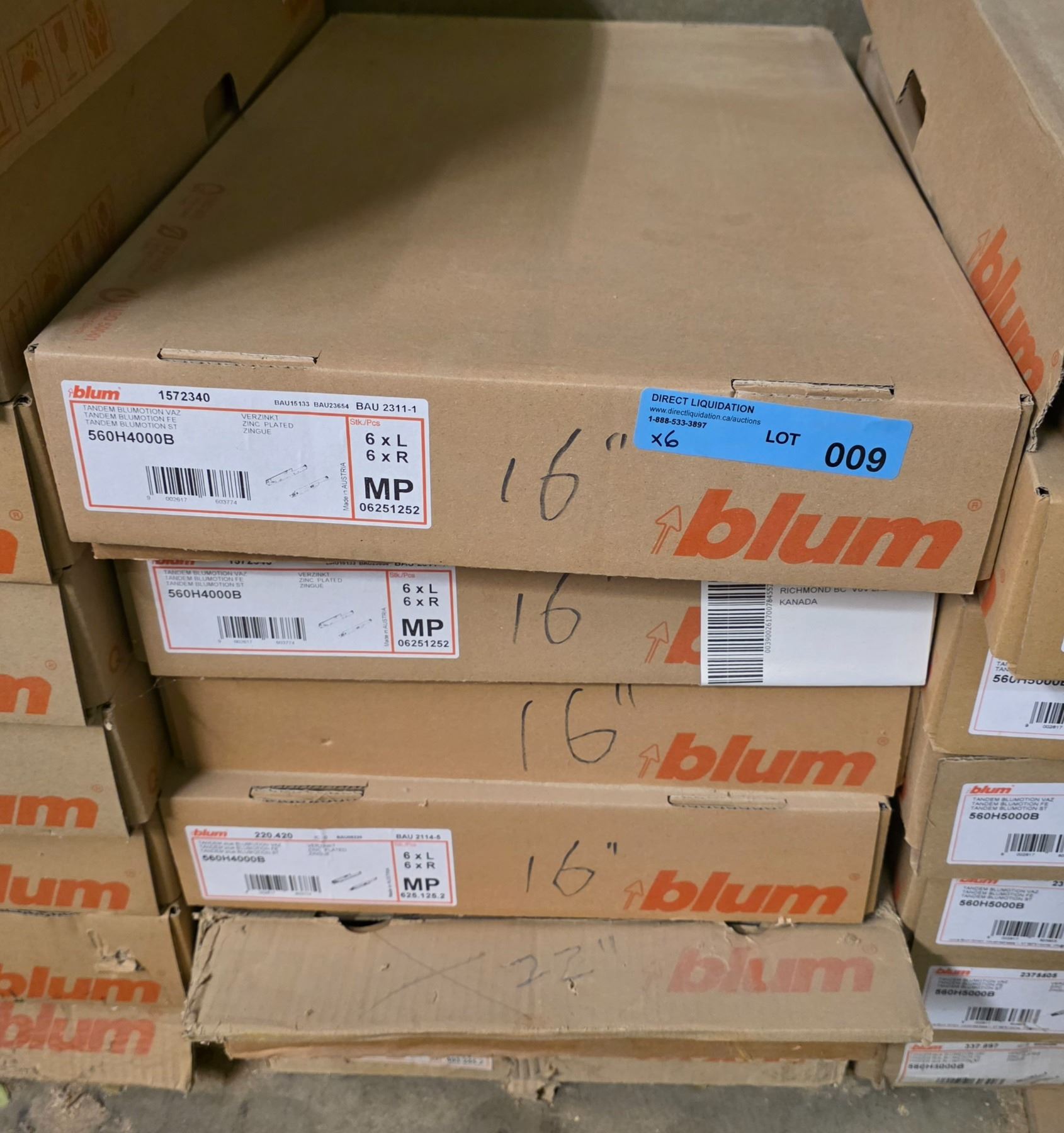 6 Pc - Blum "Blu-Motion" soft closed undermount drawer slides - 16" - 36 Pair - Wholesale Value: $1,080