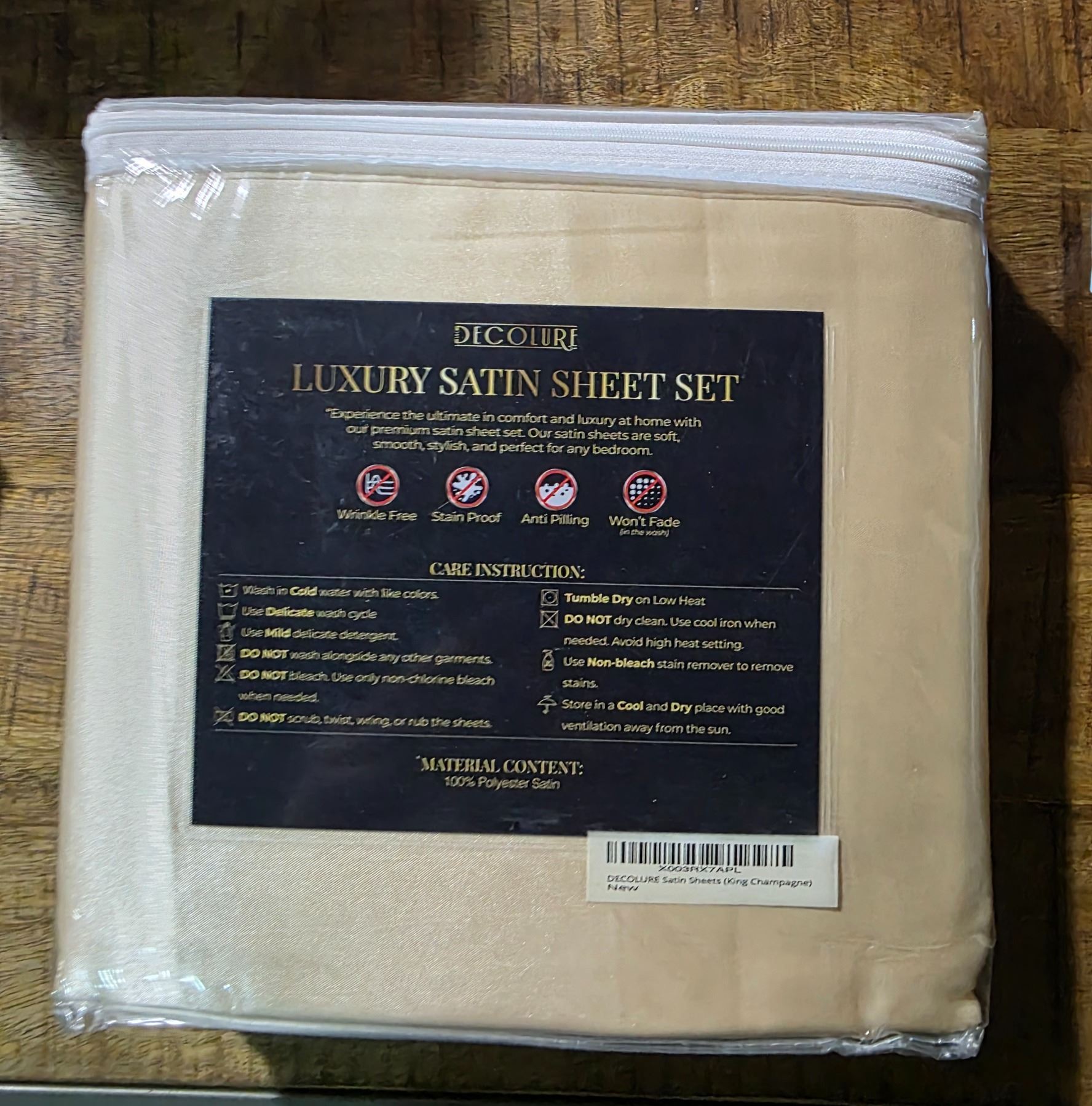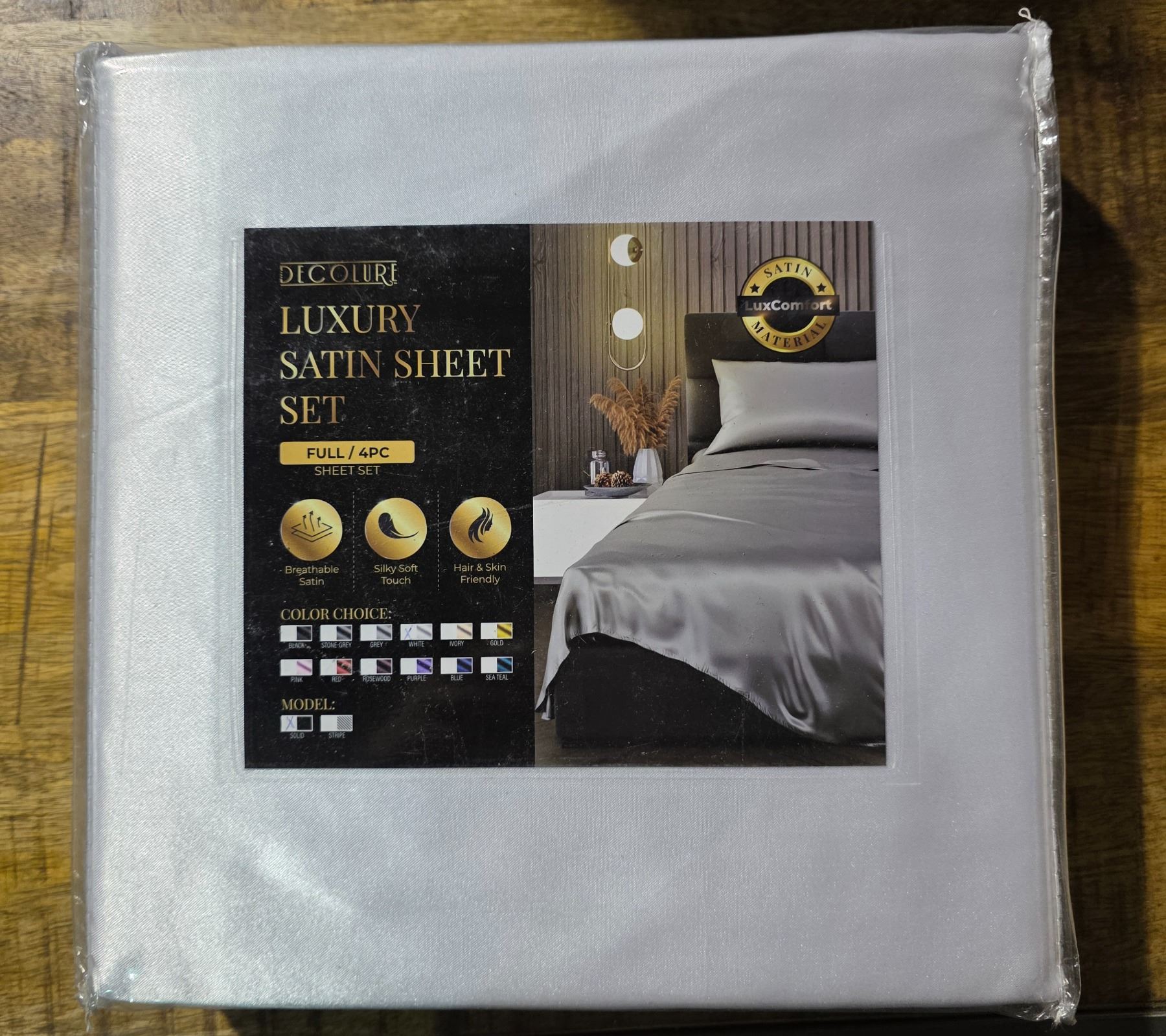 6 Pcs Luxury Satin Sheet Sets - 2 King Size Champagne & 4 White Full Size