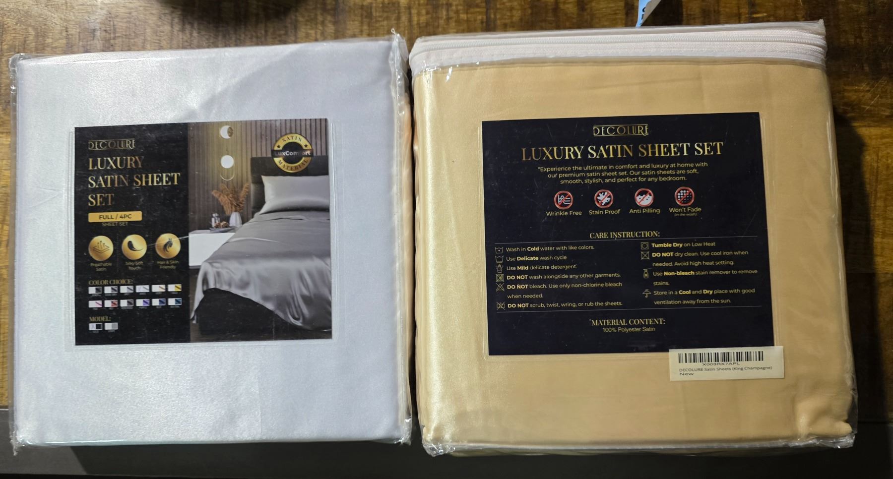 6 Pcs Mixed Sheet Sets Includes Luxury Satin 2 King, 3 White Full Size, 1 Mixed