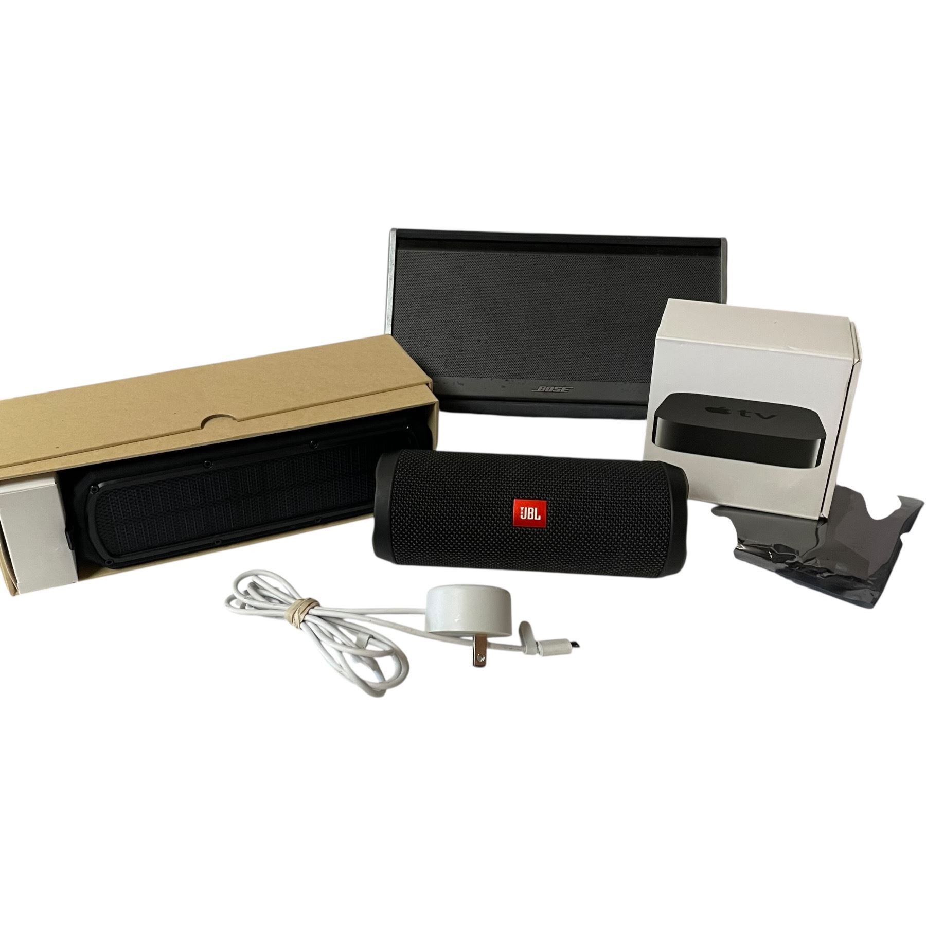 6 Piece Electronics Lot * Bose and JBL speaker, Apple TV hub, and computer parts