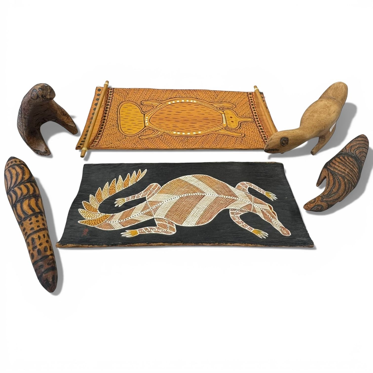 6 Piece Lot of Aboriginal - Believed to be Australian - Largest wood tray is 4" x 12"
