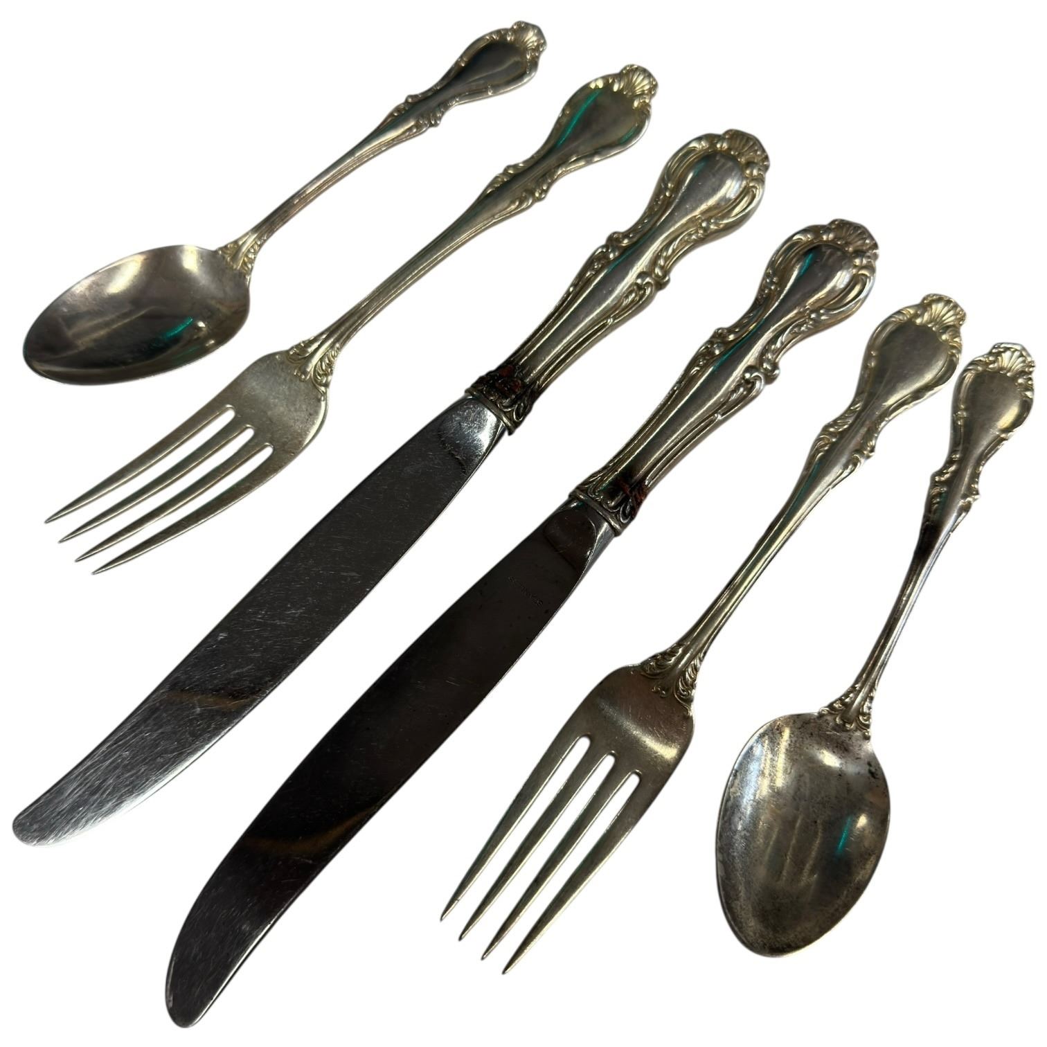 6 Sterling Silver Flatware "Cello by Northumbria (2 spoons + 2 forks = 140 grams. 2 knives = 153 grams)