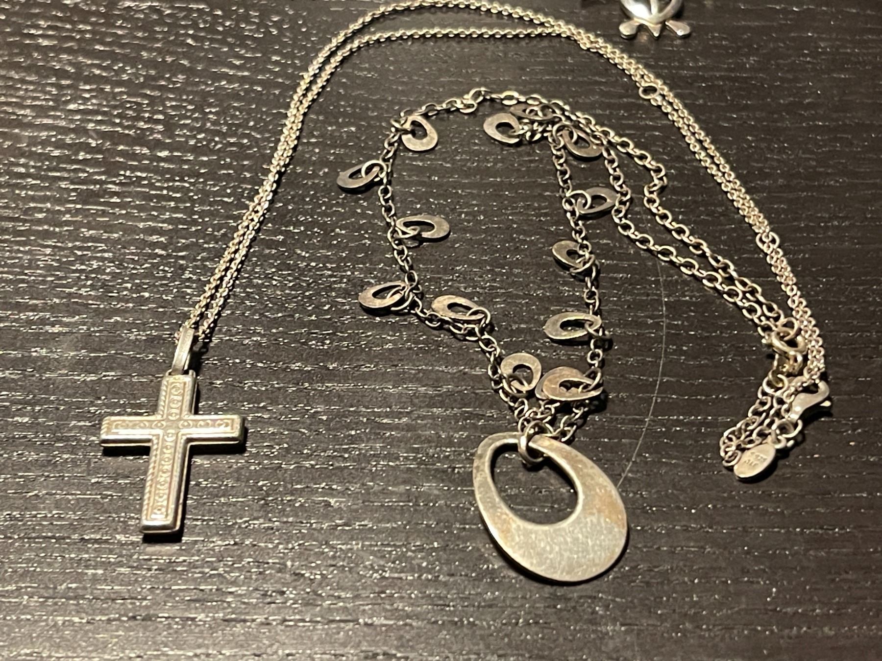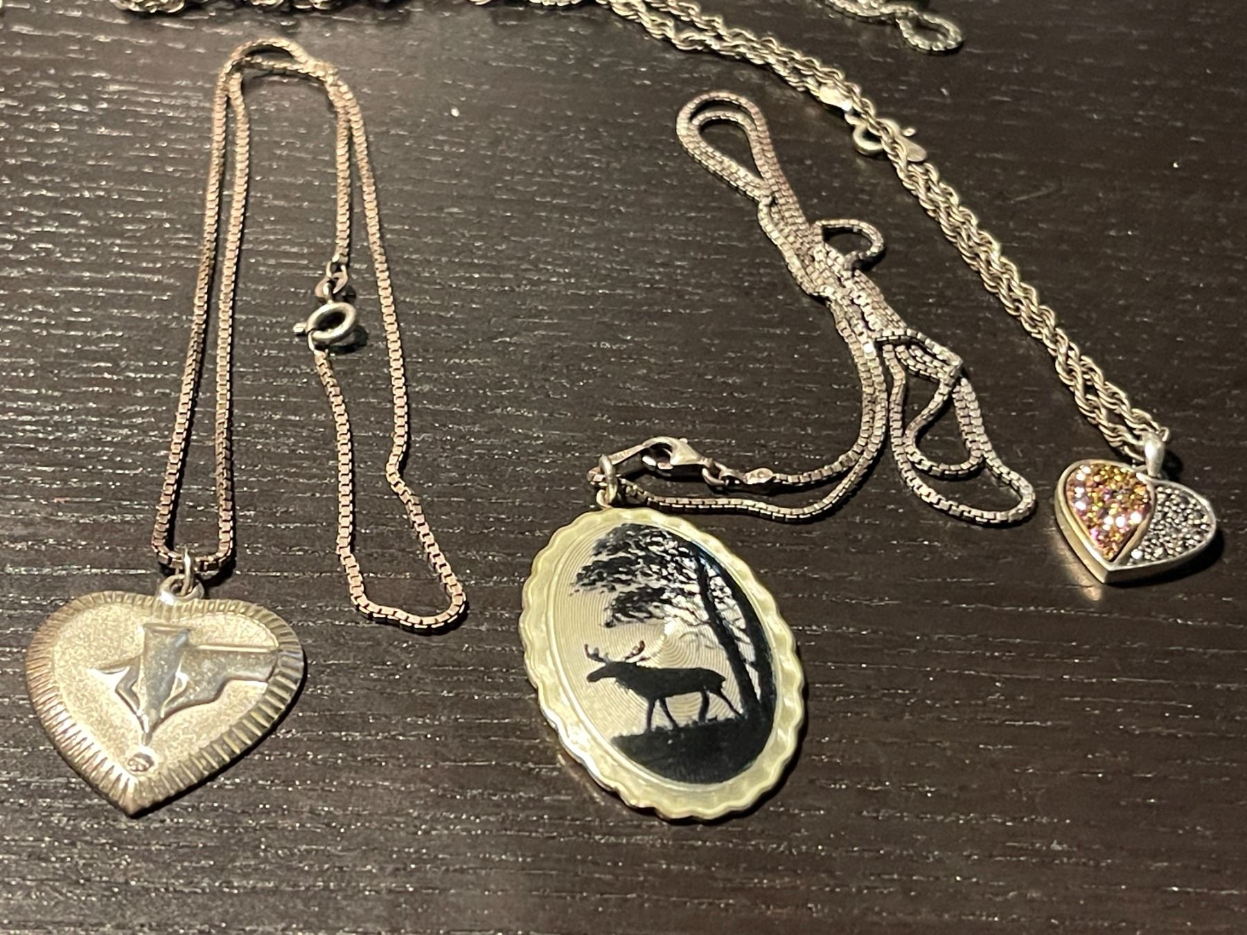 6 Sterling Silver Necklacesb-1 has enamel and 1 has amber crystals - Total weight: 51 grams
