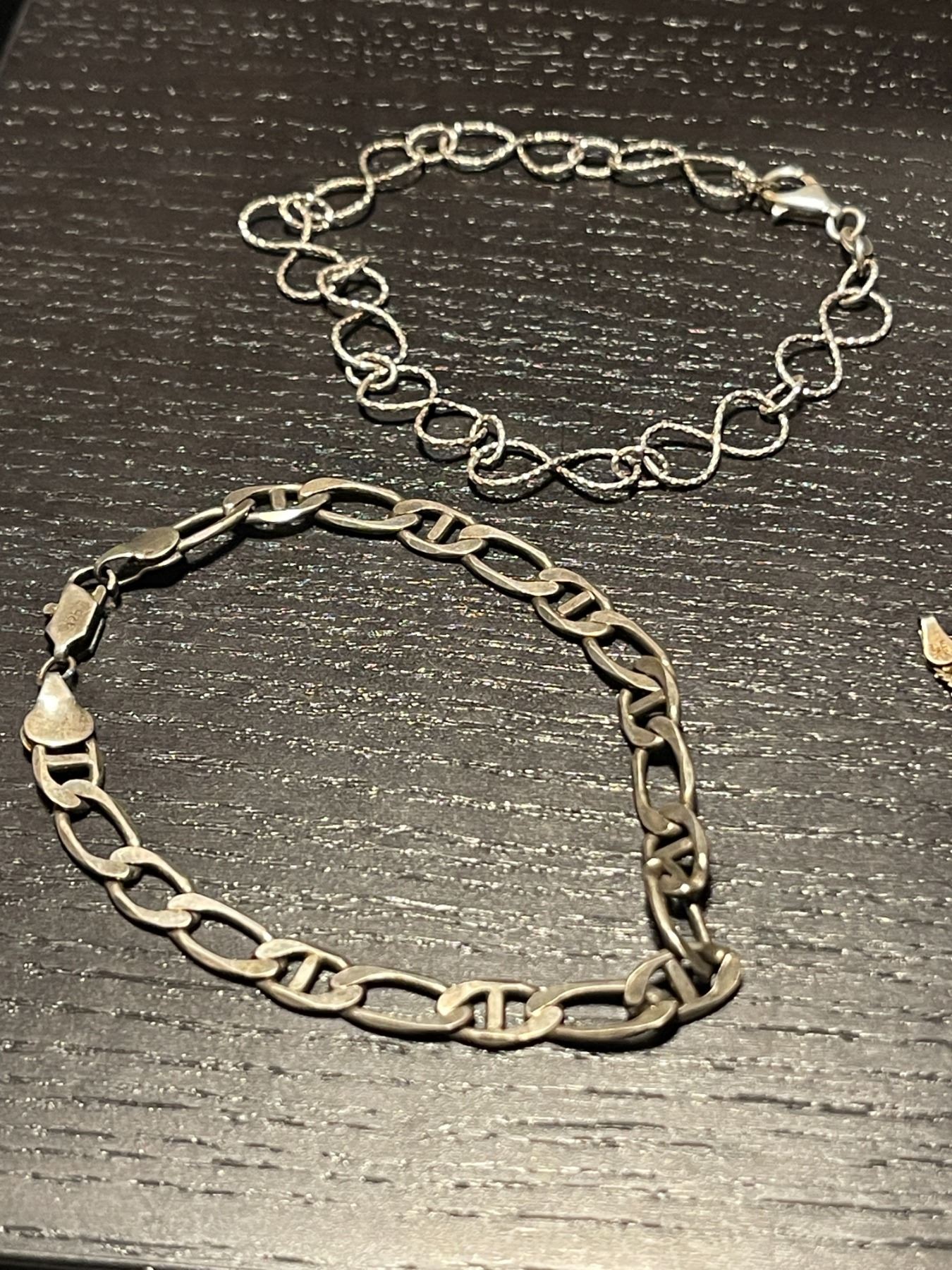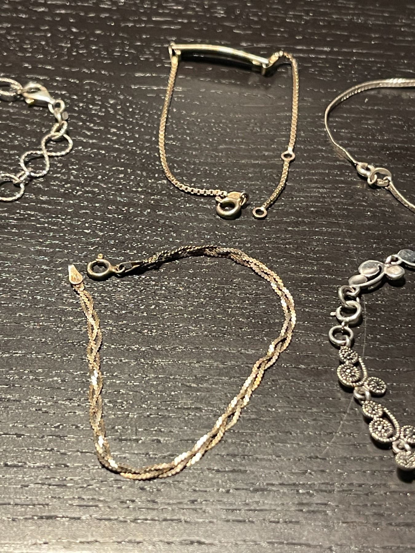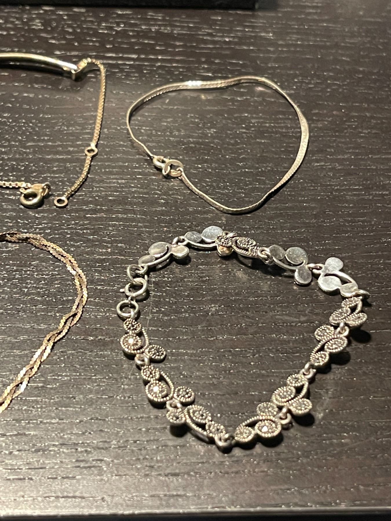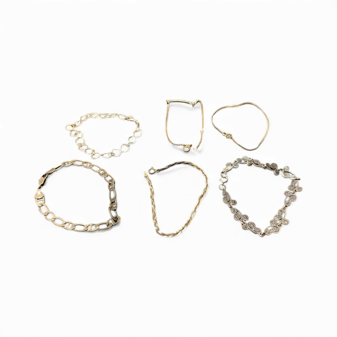 6 Vintage Sterling Silver Bracelets - 1 engraved and 1 has marquisate gems - Total weight: 25 grams