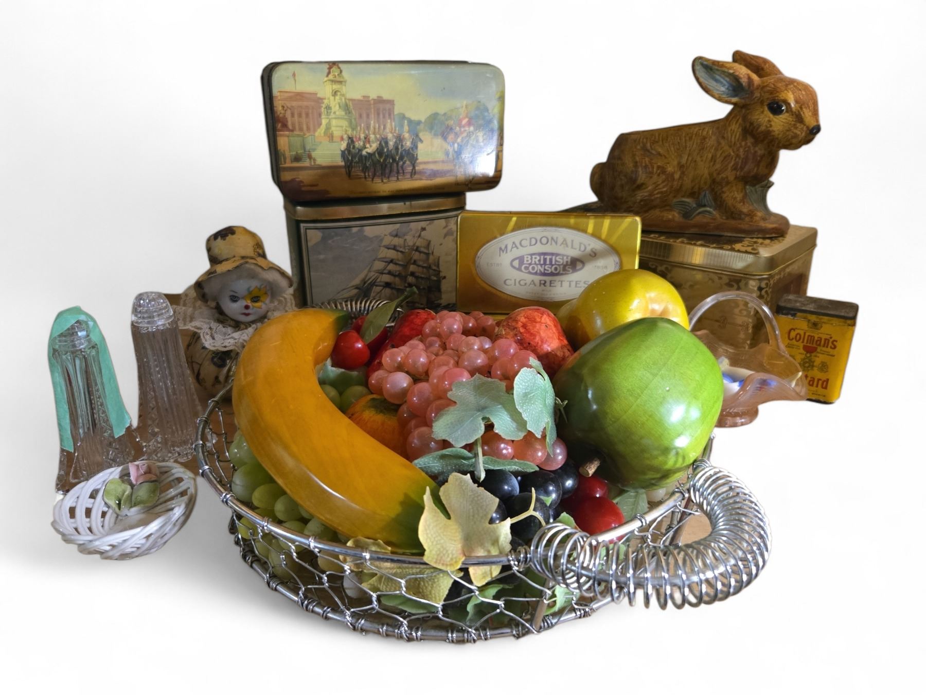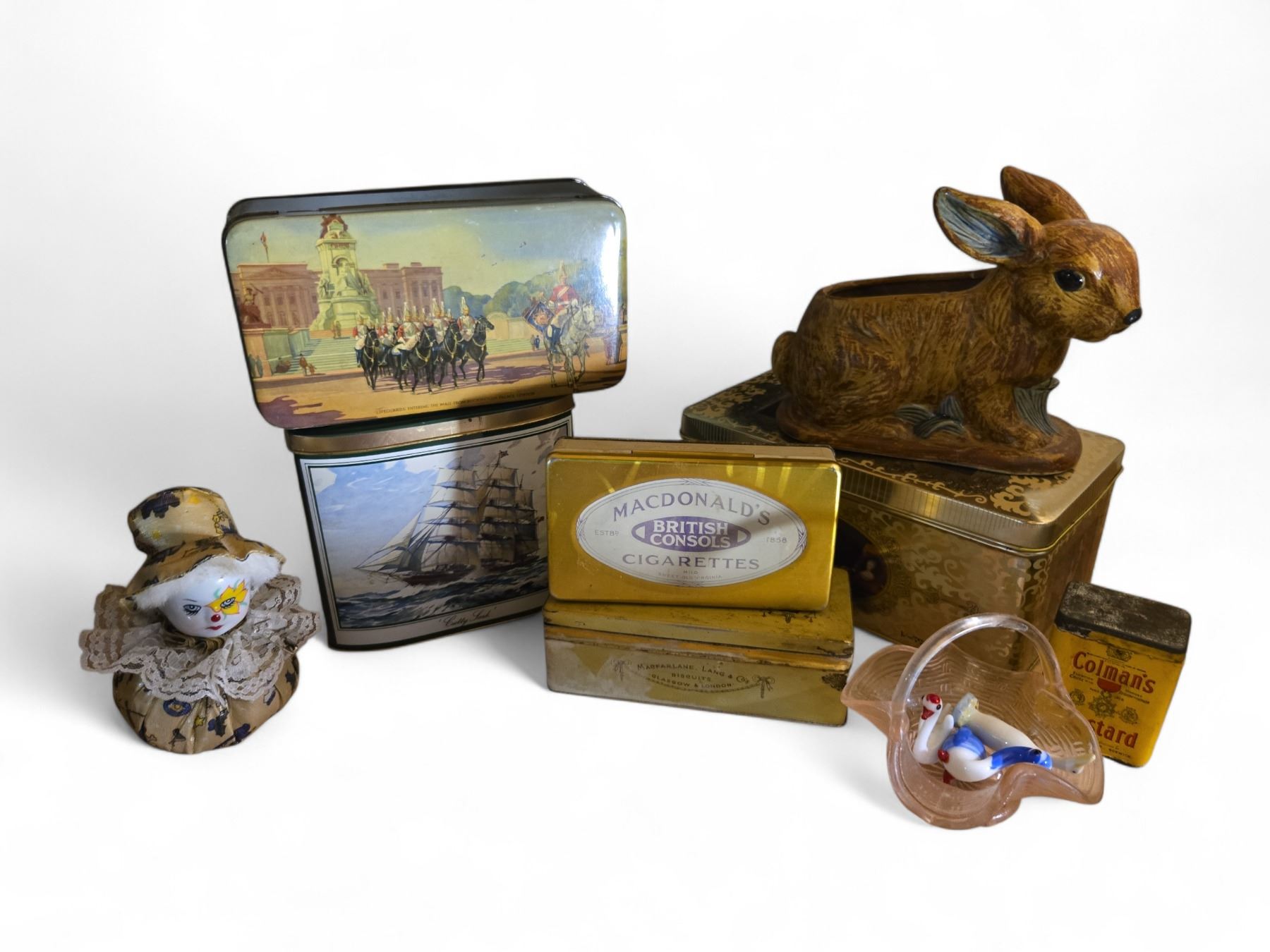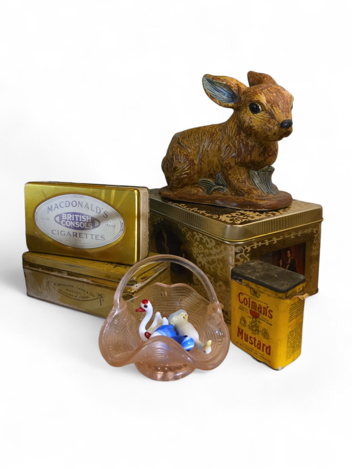 6 Vintage Tin Boxes Includes Macfarlane & Lang Biscuit, Mcdonald's Britsh Cigarettes, Basket with Faux Fruit, and More Collectibles