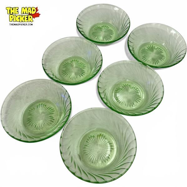 6 Vintage Uranium Glass Fruit Nappy Bowls