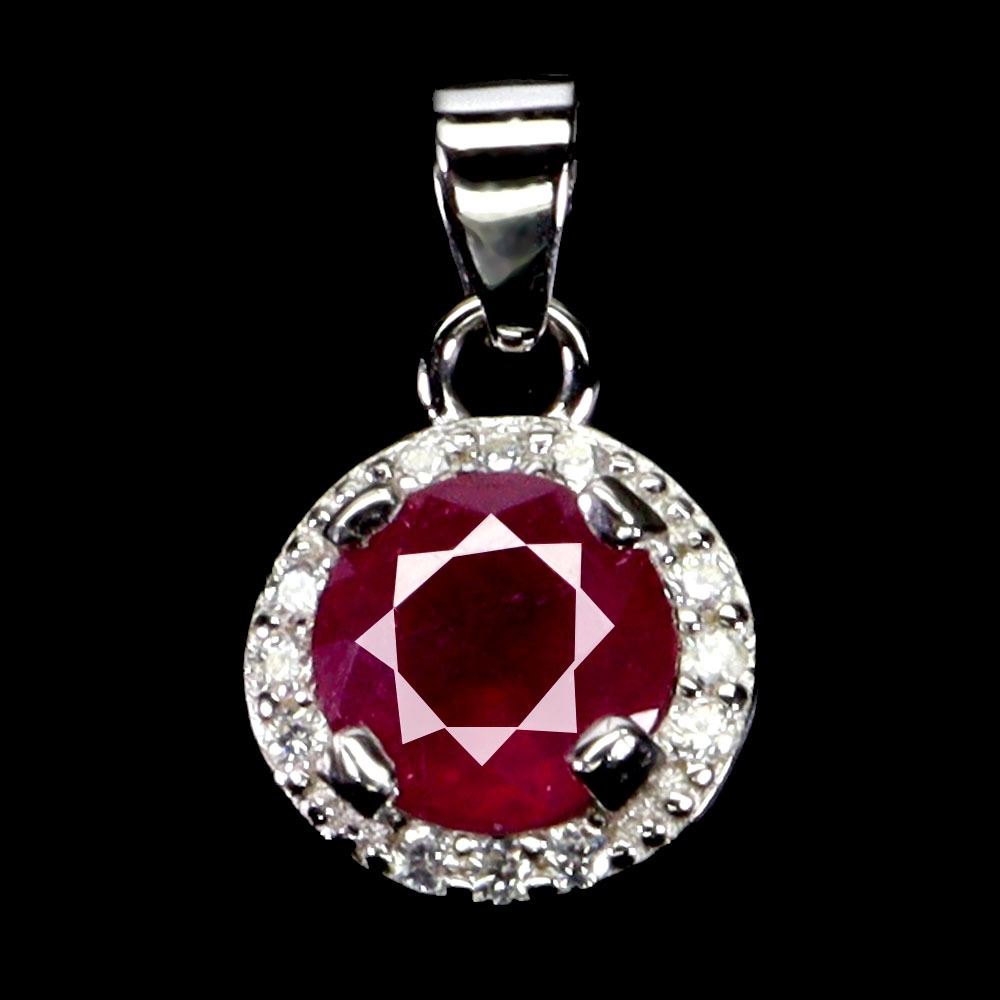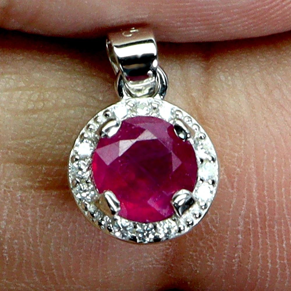 6 mm ROUND RUBY PENDANT IN 14K WHITE GOLD PLATED OVER 925 STERLING SILVER - APPRAISED REPLACEMENT VALUE CAD 340