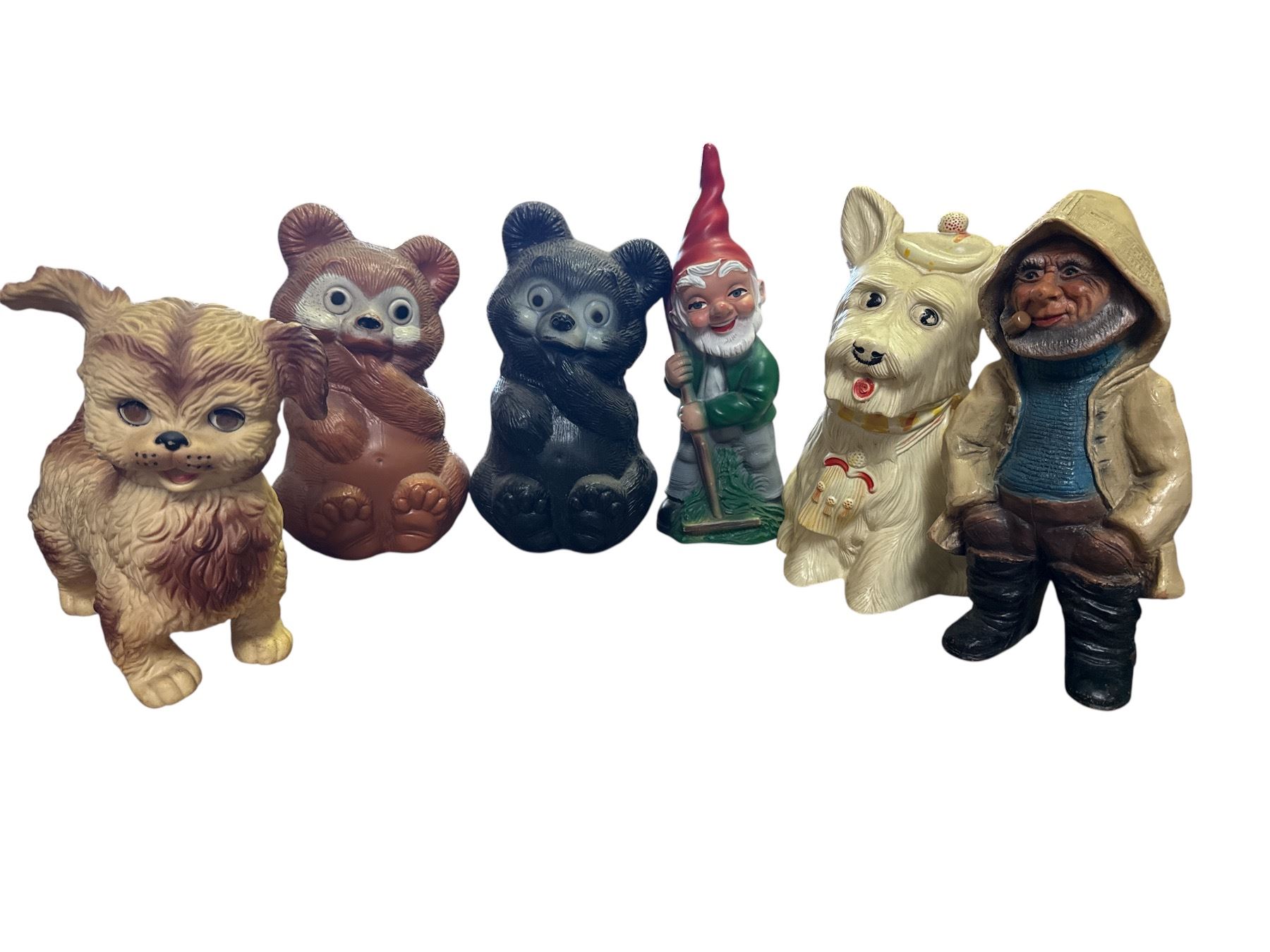 6-pcs 1960s-70s Blow Mold Piggy Bank and Rubber Figurines (Reliable, Heico & More)