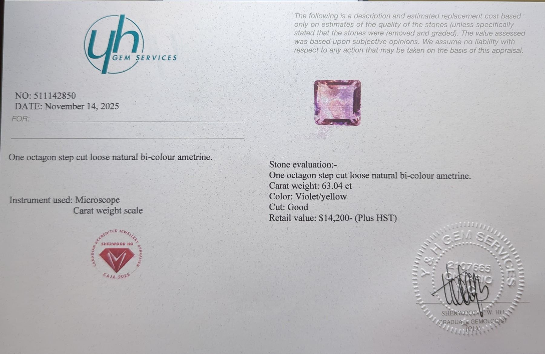 63.04 ct Certified Bi-Colour Ametrine gemstone ($14,200 Appraisal)