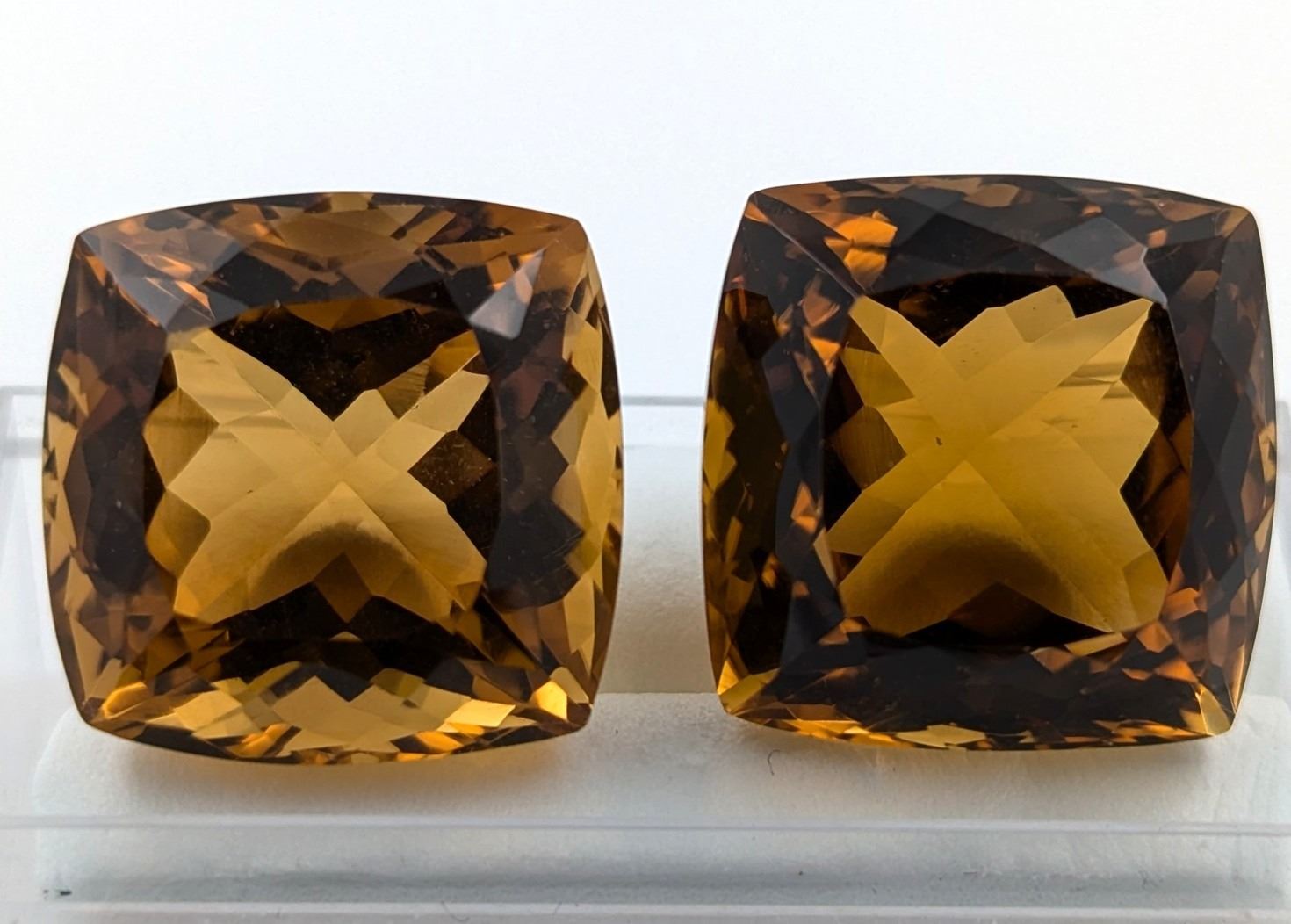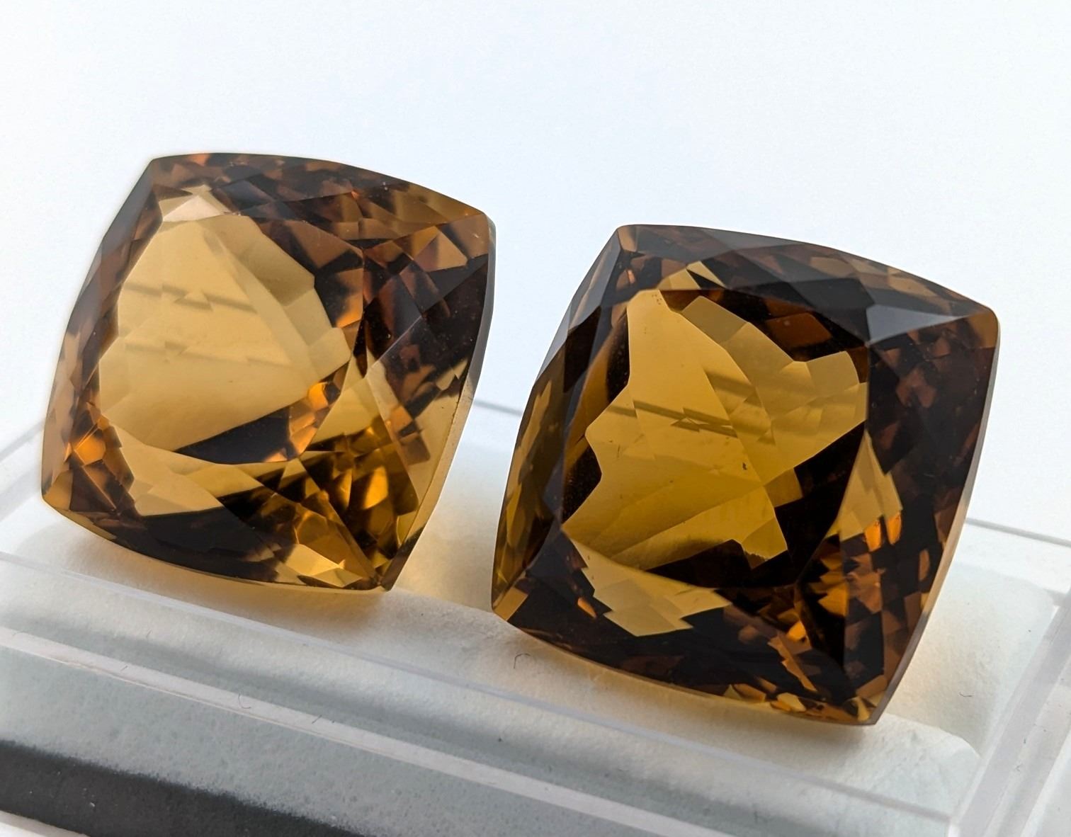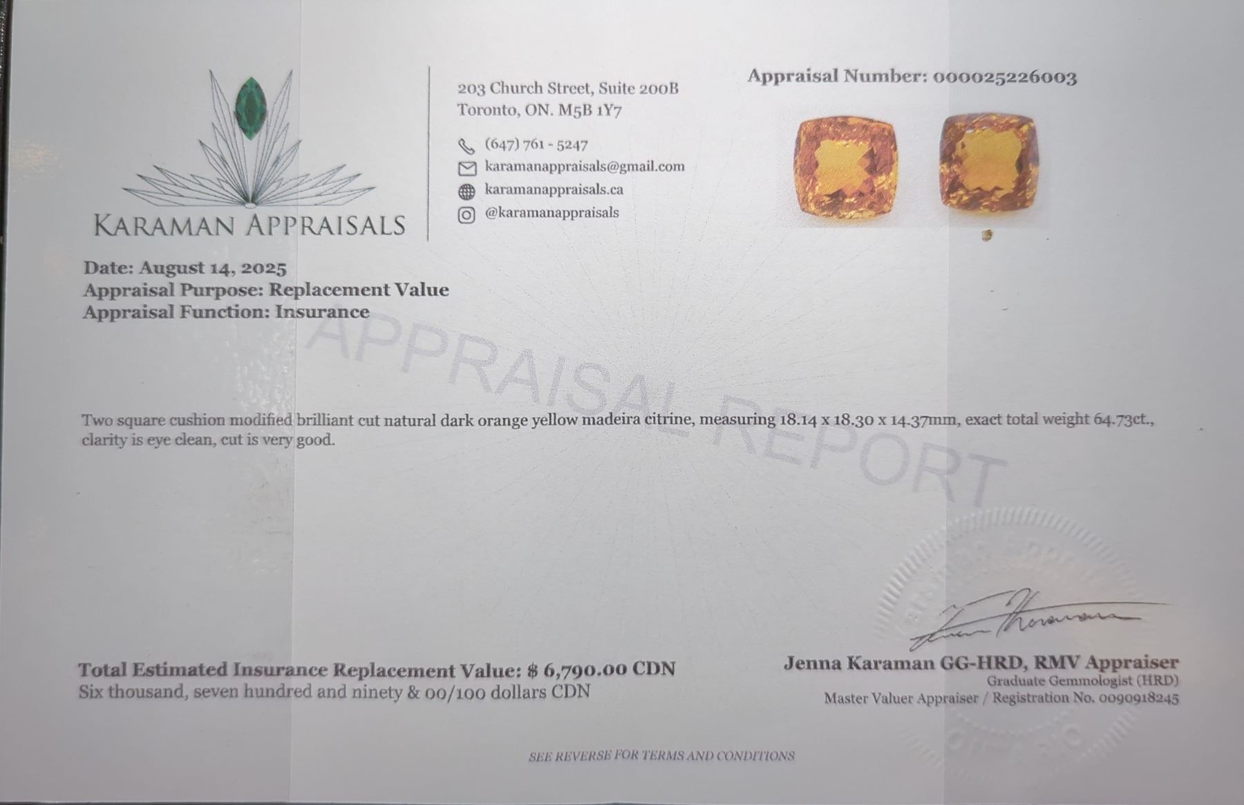 64.73 ct Authenticated Madeira Citrine gemstone Pair ($6,790 Appraisal)
